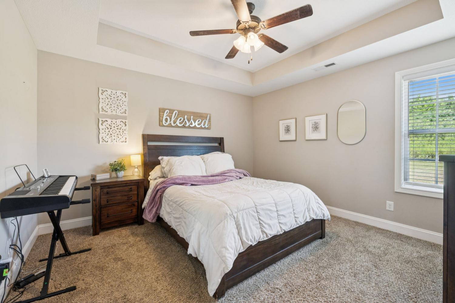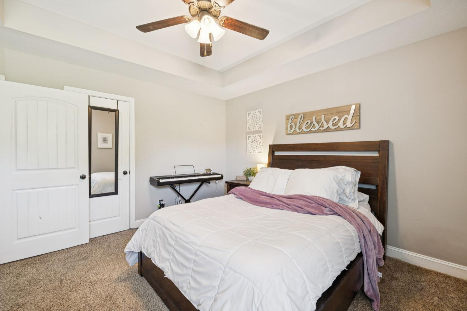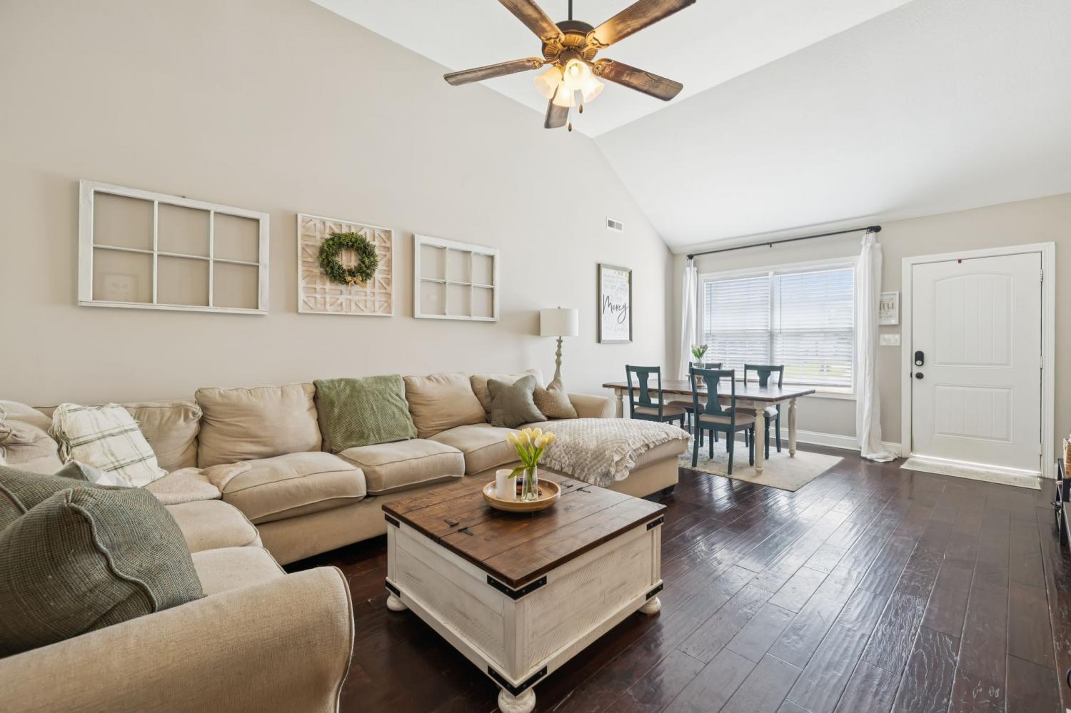 Welcome to 608 Hollow Crest, a well-maintained home in desirable Northwest Clarksville, just minutes from Fort Campbell. Located in a quiet neighborhood, this home is perfect for military families, first-time buyers, or anyone seeking comfort and convenience in a growing area. Built just six years ago, this 3-bedroom, 2-bathroom home sits on a level slab foundation, offering easy single-level living. The open floor plan flows seamlessly, creating a warm and inviting atmosphere throughout. The spacious L-shaped kitchen features all major appliances, generous counter space, and ample cabinetry—ideal for both daily meals and entertaining. The large living room provides flexible setup options, including space for a dining table or home office. The primary suite includes a full private bathroom and a relaxing layout, offering a quiet retreat at the end of the day. Two additional bedrooms are well-sized and share a second full bath. Enjoy peaceful mornings on the open front porch, perfect for rocking chairs and coffee. The covered back corner patio provides a shaded outdoor escape great for grilling or evening downtime. The level backyard offers room for a fence, garden, or even a pool—giving you the space to make it your own. Seller is open to negotiating a fencing allowance if so desired. Also 1-car garage provides secure parking and extra storage. The home includes central HVAC, modern fixtures, and move-in-ready condition. Conveniently located near shopping, schools, parks, and restaurants, this home offers both tranquility and accessibility. Whether you’re settling down or relocating, this property checks all the boxes. Schedule your private tour today and see everything this beautiful home has to offer!