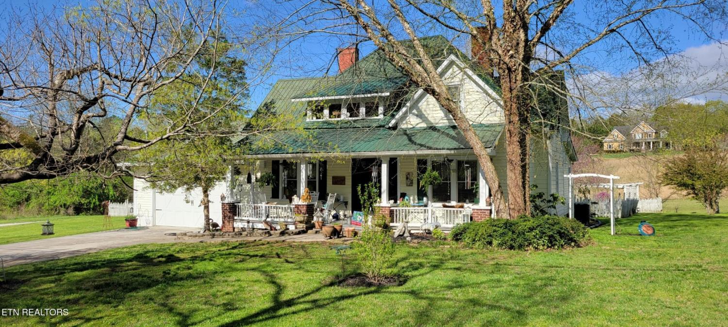 Rare opportunity to own a piece of history. 19th Century farmhouse with 1 acre of land in a beautiful country setting. Private pond, gazebo with firepit and stone benches. Several updates have been completed including exterior paint, interior paint, updated kitchen, HVAC, some plumbing, Gutters, some flooring, appliances, tin ceiling in dining room, updated foyer with beadboard and shiplap, etc. 2 car garage, private setting, and oversized private back deck for entertaining family or guest. The covered front porch features a classic heavy wooden door with etched glass framing. Great location within 10 minutes of Halls and Powell communities. This one will not last long.