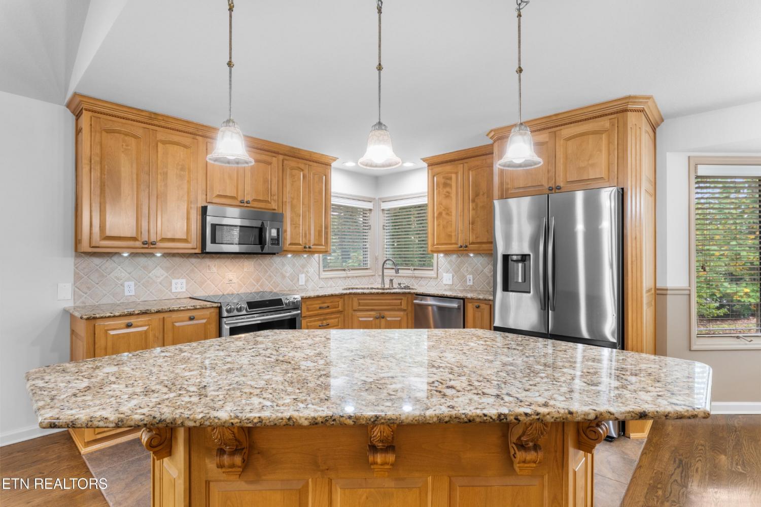 Welcome to your beautifully maintained 4-bedroom, 3-bathroom basement rancher nestled in the heart of the prestigious Tellico Village Community in Loudon, TN! This gorgeous home offers a perfect blend of comfort, functionality, and updates, ideal for both everyday living & entertaining. Step inside to discover a spacious main level with an inviting living area and updated kitchen with modern finishes, including a brand-new refrigerator and Bosch dishwasher, sleek granite countertops and abundant cabinetry & counterspace. Hard surface flooring flows throughout the whole main level, creating a clean and polished aesthetic. The bright and inviting enclosed sunroom is a true highlight. Complete with a cozy fireplace this makes a perfect spot to unwind year-round. Also, on the main floor you'll find the primary suite with private bath and large walk-in closet, two additional bedrooms and full bathroom. Travel downstairs to the fully finished basement offering a generous family room with gas fireplace, additional bedroom and full bathroom perfect for guests and the expansive workshop/storage area ideal for hobbies, projects and those extra storage needs. Walk outdoors and you will feel like you have stepped into your own private oasis. The large patio deck is an ideal space for entertaining or simply enjoying the picturesque outdoor surroundings. The professionally landscaped and hardscaped areas have been meticulously cared for and the irrigation system offers easy maintenance and ensures lush, healthy grounds year-round. All of this located in the highly desirable Tellico Village Community where residents enjoy access to golf, lake amenities, walking trails, wellness facilities and a vibrant active lifestyle. Don't miss the opportunity to tour this amazing home and see all it has to offer for yourself!