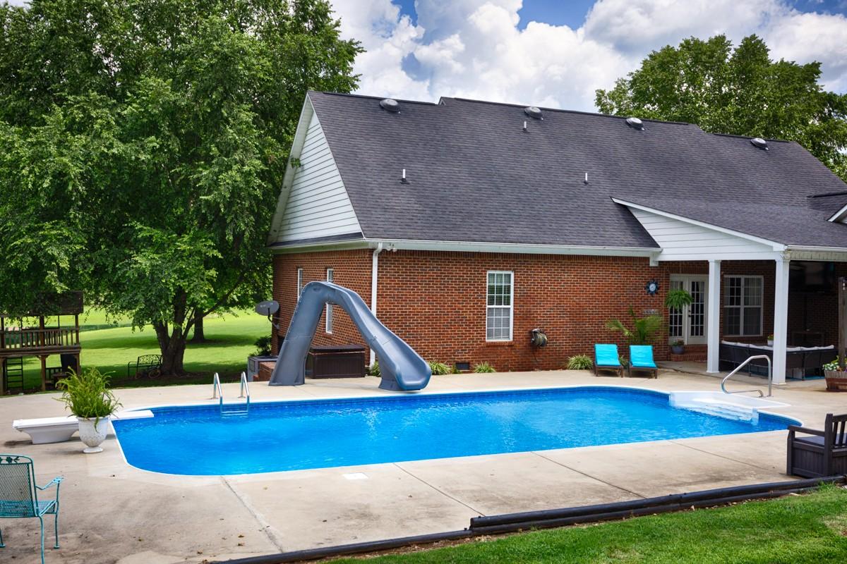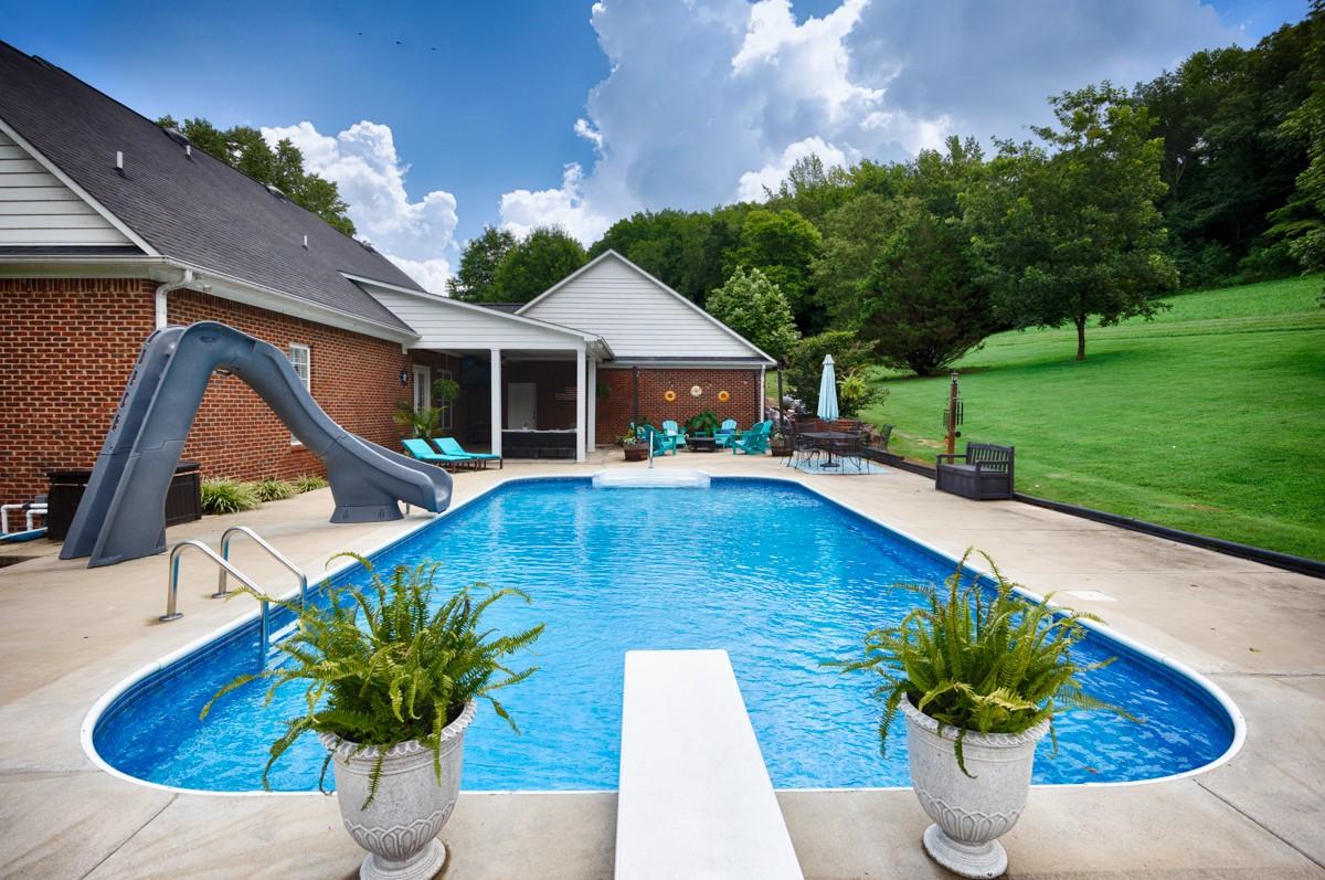 This beautiful property in a secluded setting with a year round creek, a stocked pond, and mature trees is a retreat for families and wildlife alike. The 4BR/3BA 3091sf brick two-story home sits on 28 acres in Giles county and has an inground 18'x36' pool accessed by a covered porch and patio. Foyer, dining room, living room and kitchen have wood flooring, 9' ceilings, recessed lighting and crown molding to provide an open and seamless feel. The primary bedroom has trey ceilings and a glamour bath with a separate whirlpool tub and shower. Other bedrooms boast the comfort of carpet and ceiling fans. 2.5-car attached garage, a 30x30 shop with power, and a 16x30 lean-to provide parking & storage.