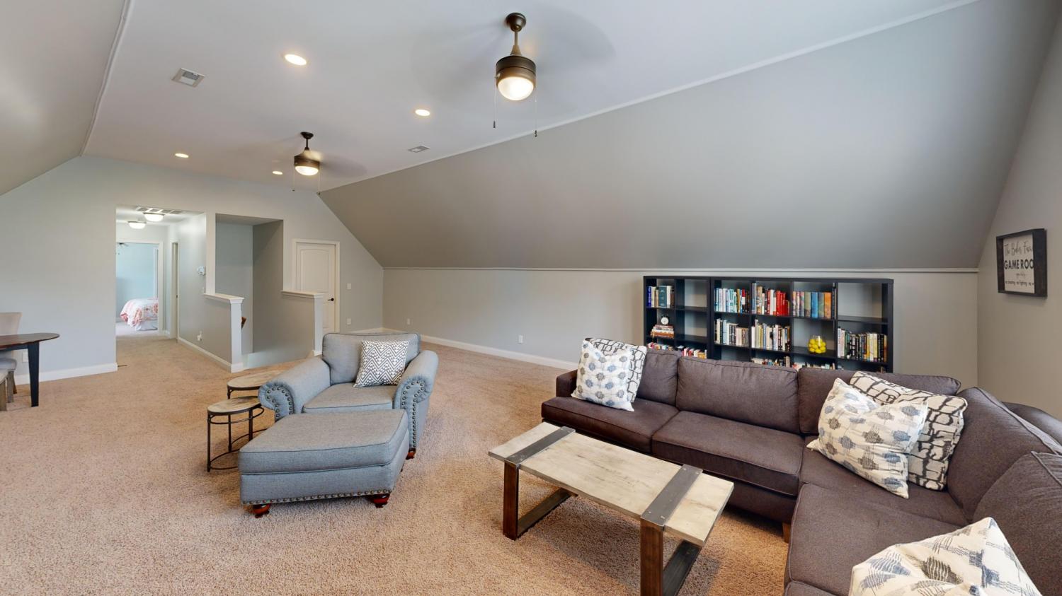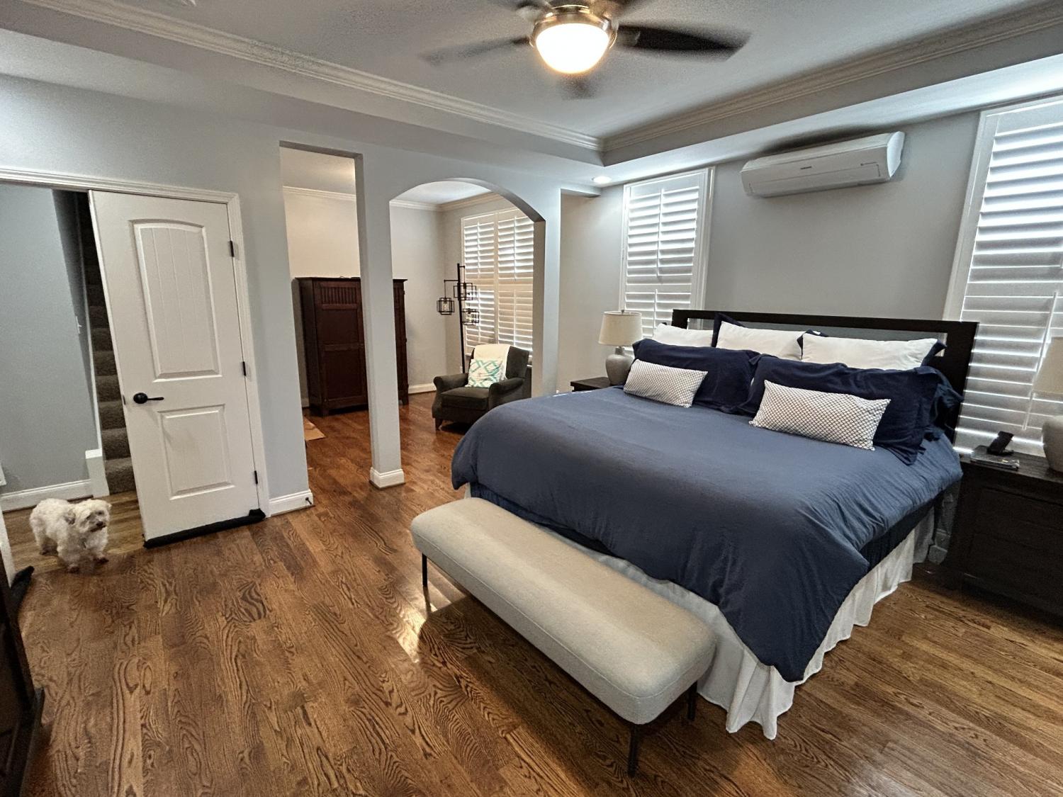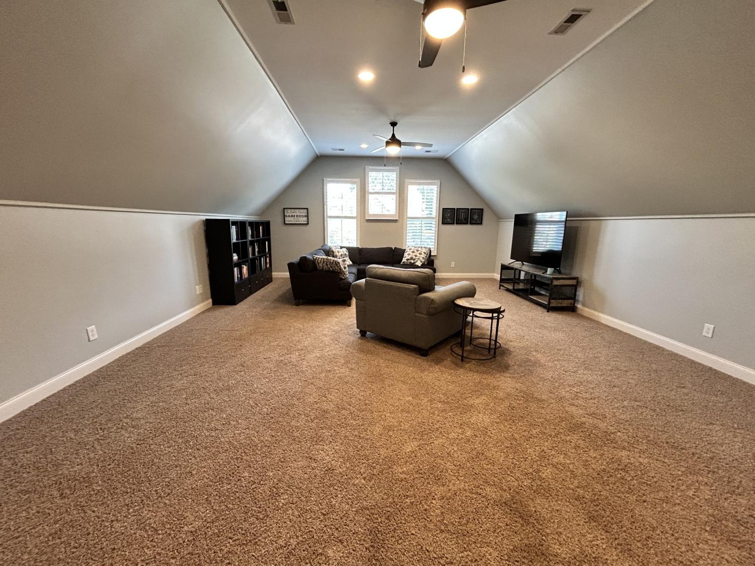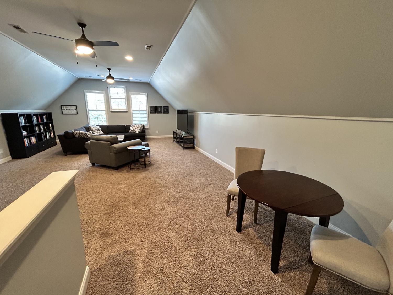 Lovely well maintained home with hardwood floors throughout the main level including the master suite. Master suite features sitting area, double walk in closets, double vanities and separate shower and jetted bath. High ceilings throughout home, large rec area above the garage with private guest bed and bath, granite and stainless kitchen with gas range and double ovens. Screened in back patio overlooking green area, fenced in back yard.