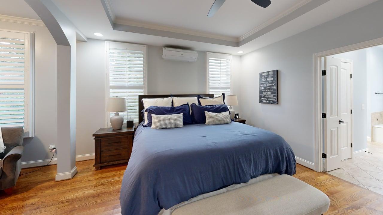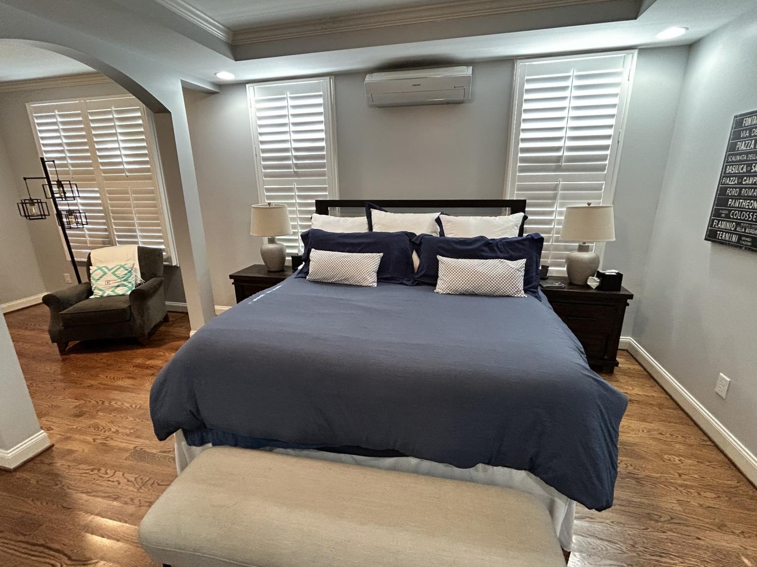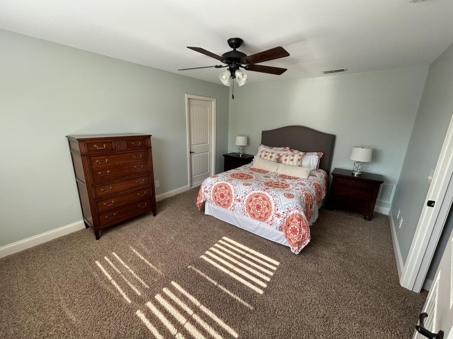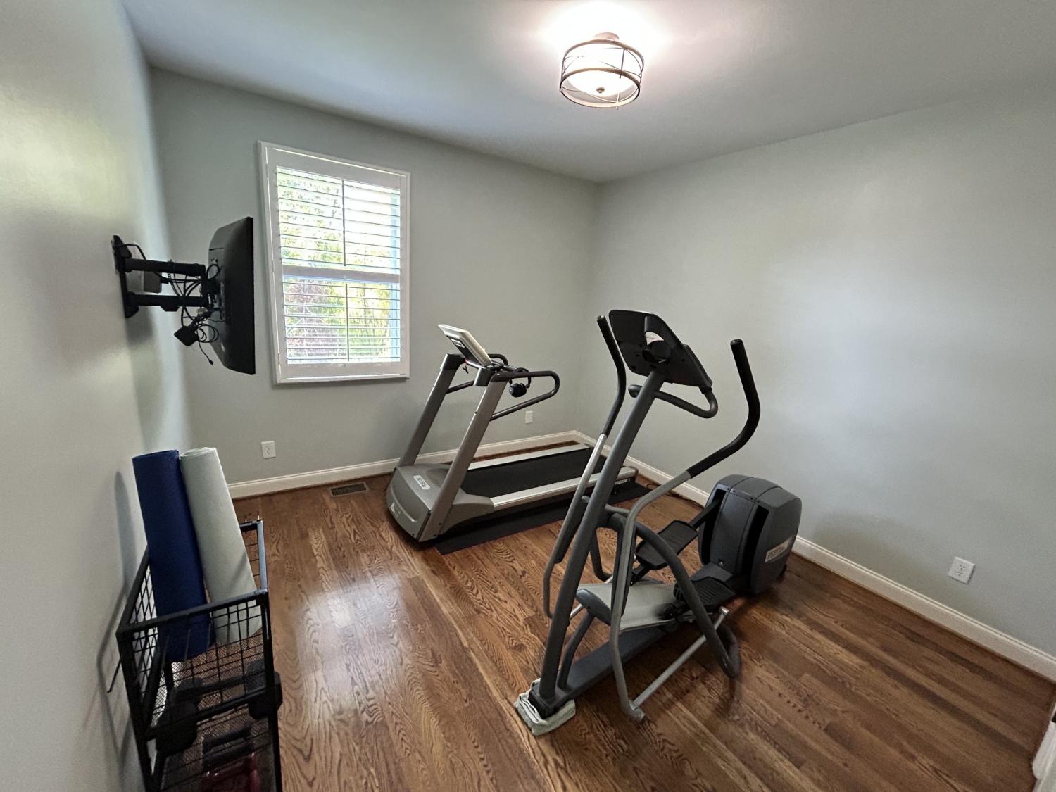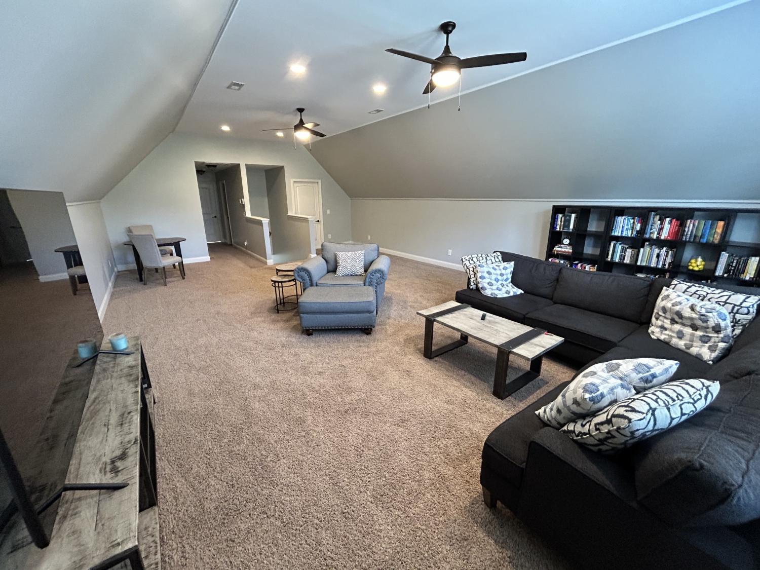 Lovely well maintained home with hardwood floors throughout the main level including the master suite. Master suite features sitting area, double walk in closets, double vanities and separate shower and jetted bath. High ceilings throughout home, large rec area above the garage with private guest bed and bath, granite and stainless kitchen with gas range and double ovens. Screened in back patio overlooking green area, fenced in back yard.