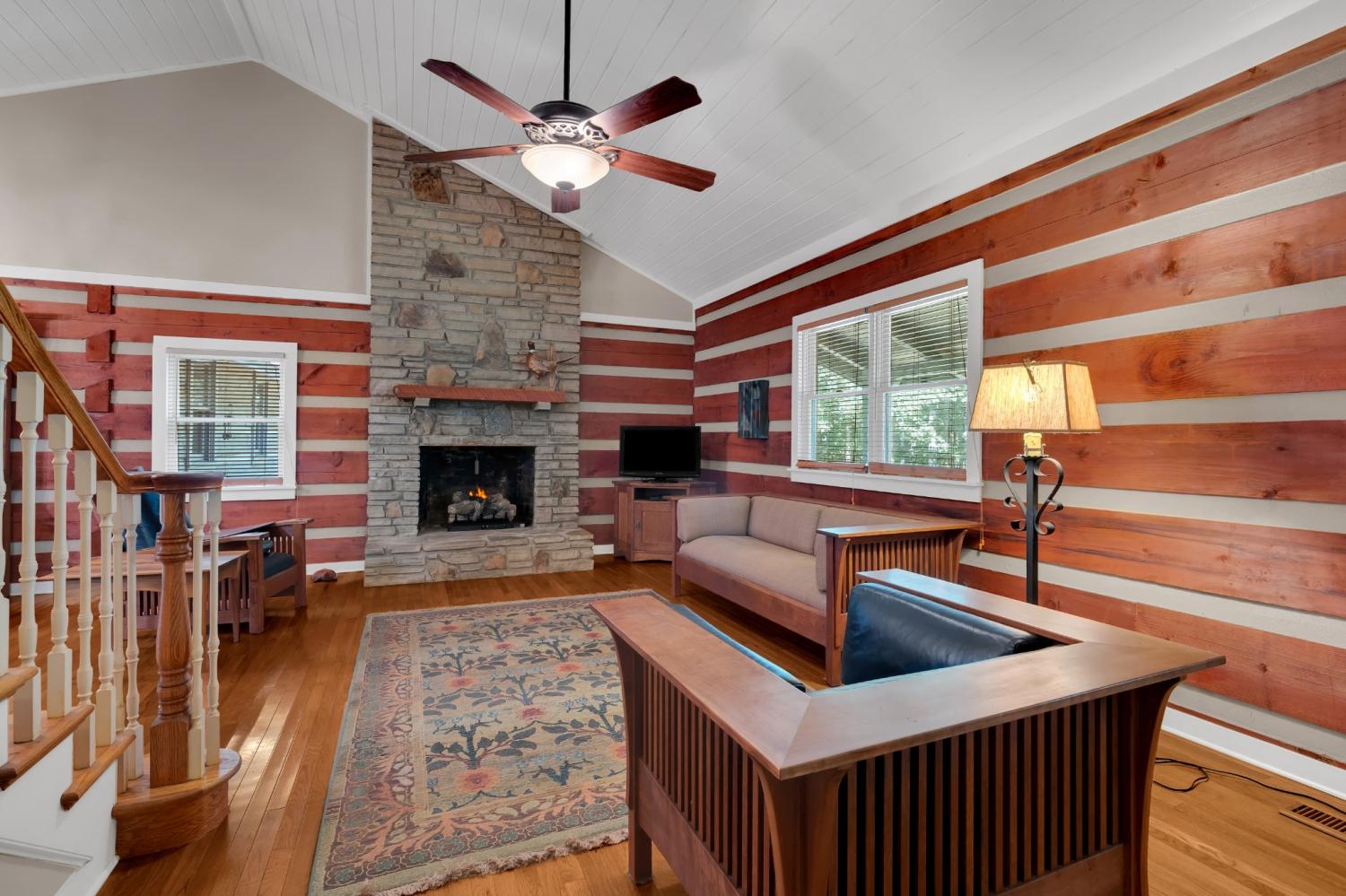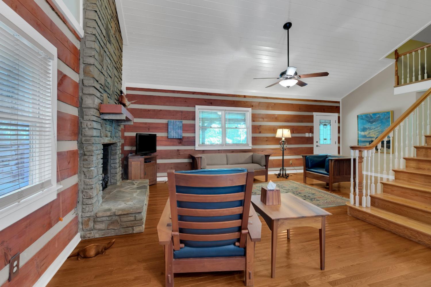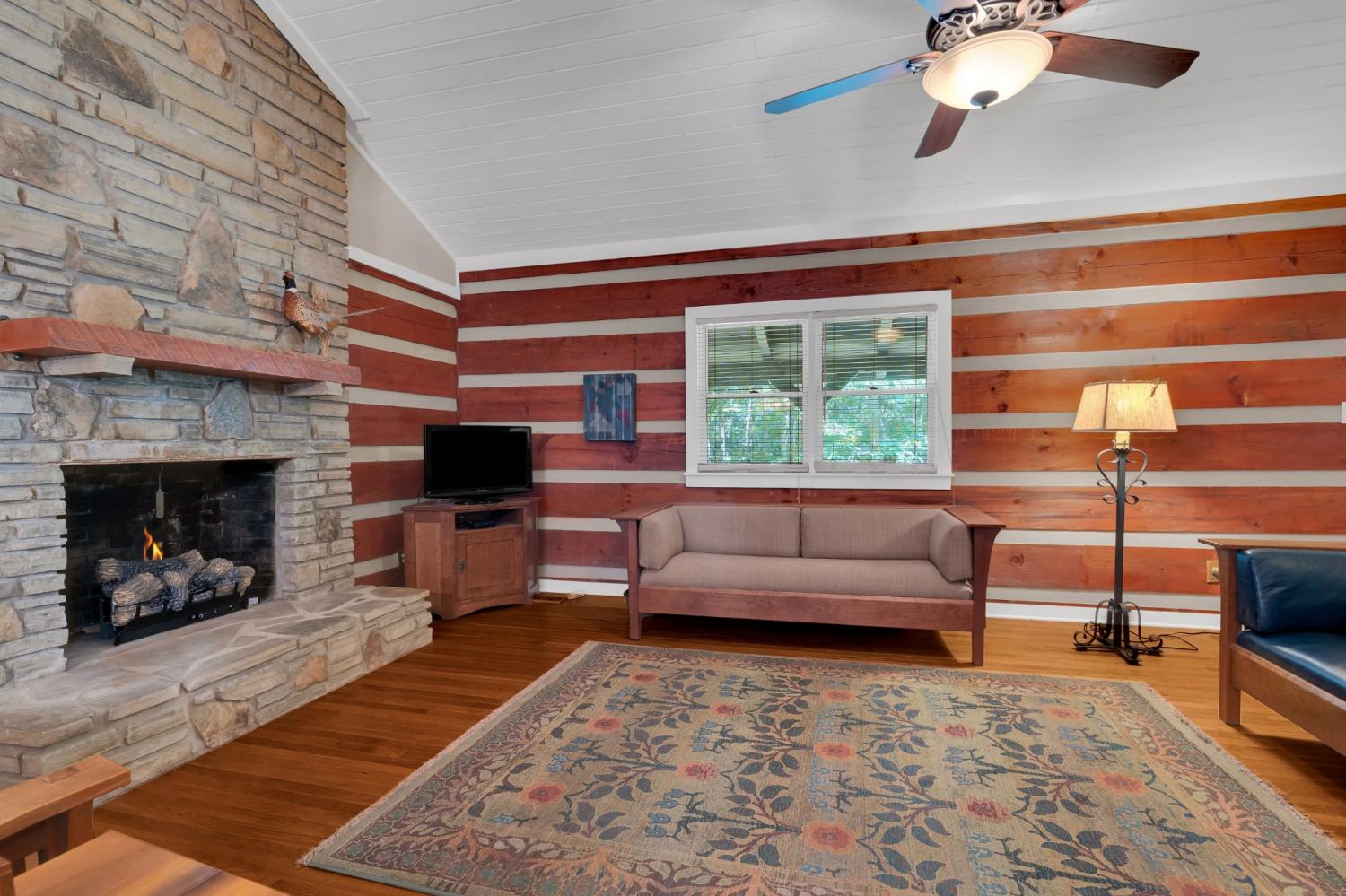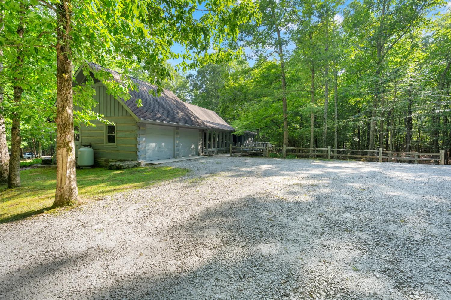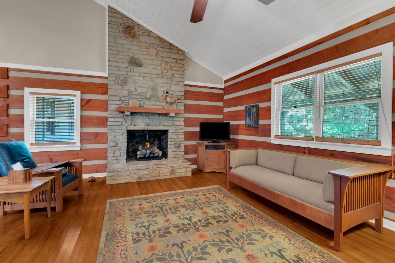 3-Bedroom, 3-Bath Log Cabin on 5 Acres in Desirable Clifftops. This charming 3-bedroom, 3-bath log cabin sits on a 5 acre beautifully maintained wooded lot in the coveted Clifftops neighborhood. Featuring gorgeous hardwood floors, abundant storage, and a dedicated office with built ins, this home blends rustic character with modern comfort. The spacious master suite offers a relaxing retreat, while the large upstairs bedroom includes its own private bath, perfect for guests or family. A third bedroom provides additional flexibility for sleeping or office space. Enjoy the serene natural surroundings from the covered front porch or the covered back patio, where the sounds of songbirds create a peaceful atmosphere. The property's landscaping is meticulously maintained, complementing the wooded setting. Additional highlights include a 2-car garage and an extra refrigerator. Located just minutes from the Clifftops lake, this home is ideal as a full-time residence or a tranquil second home escape.