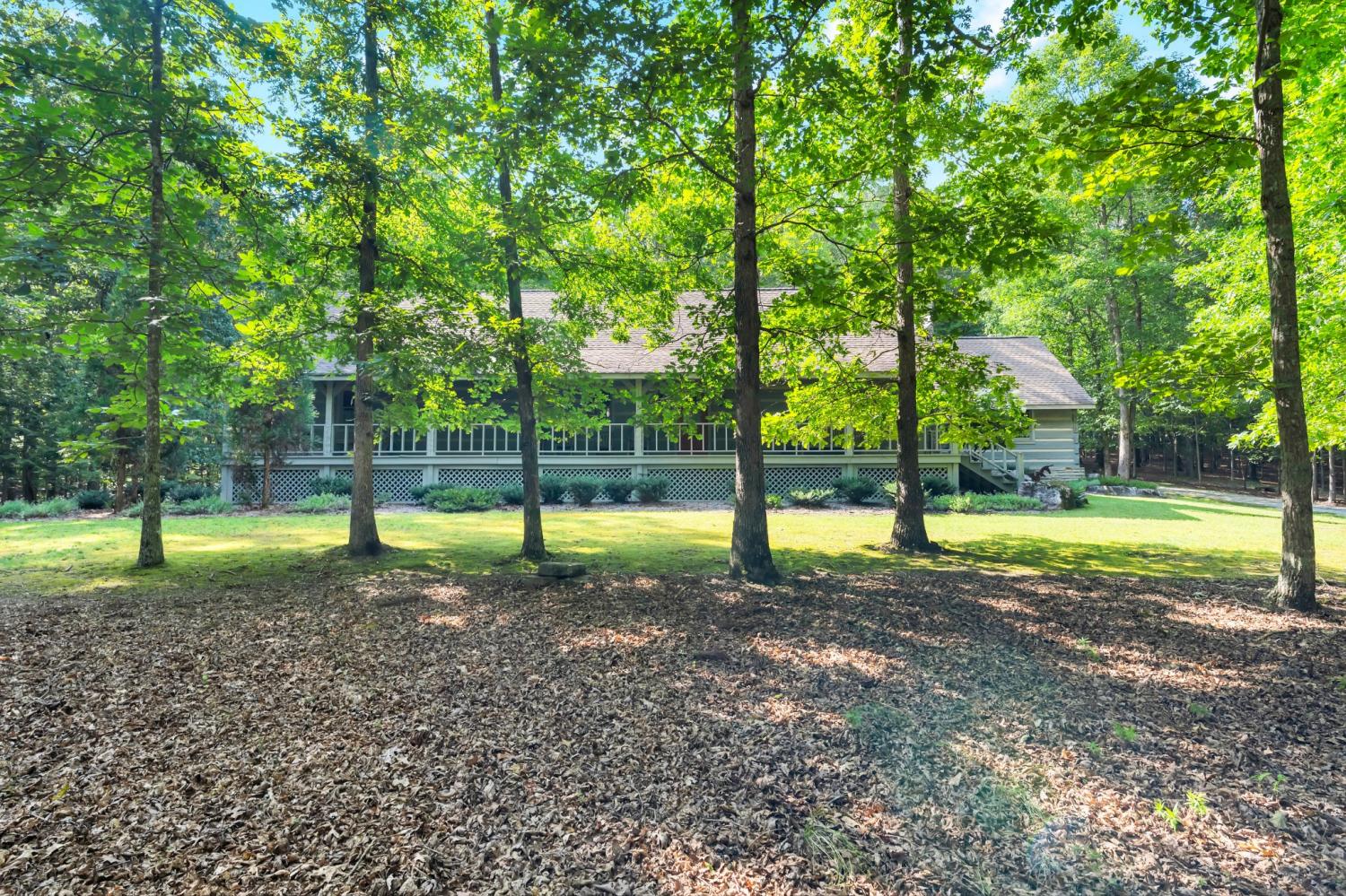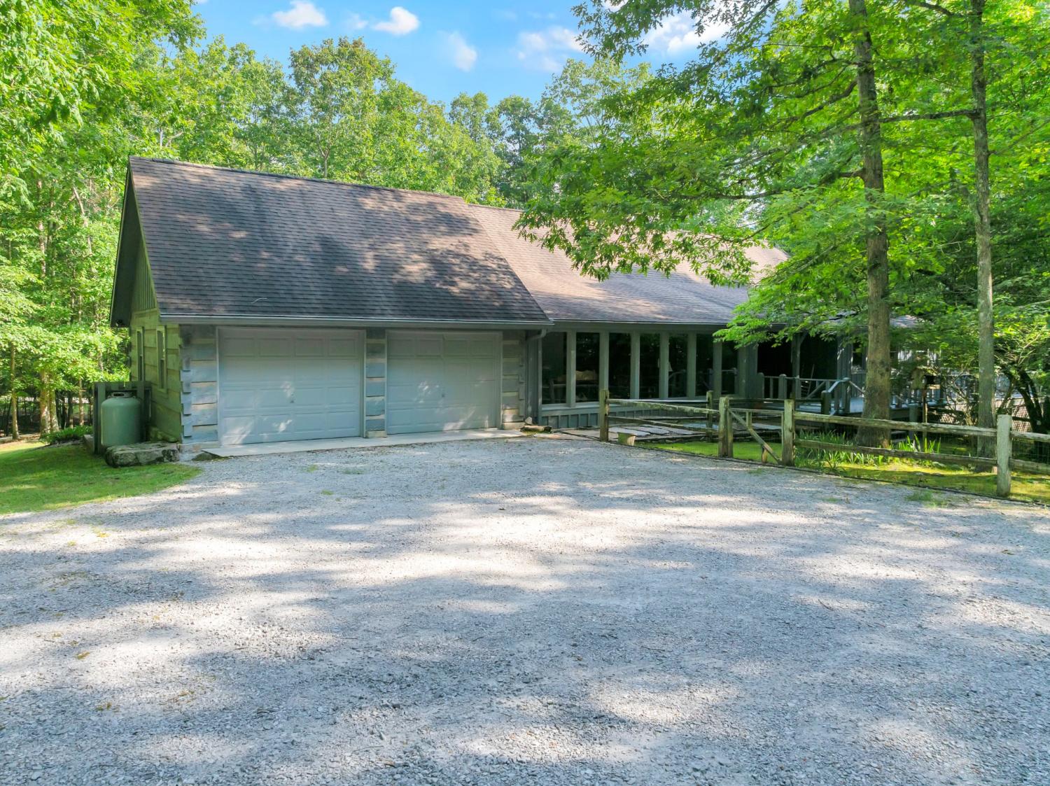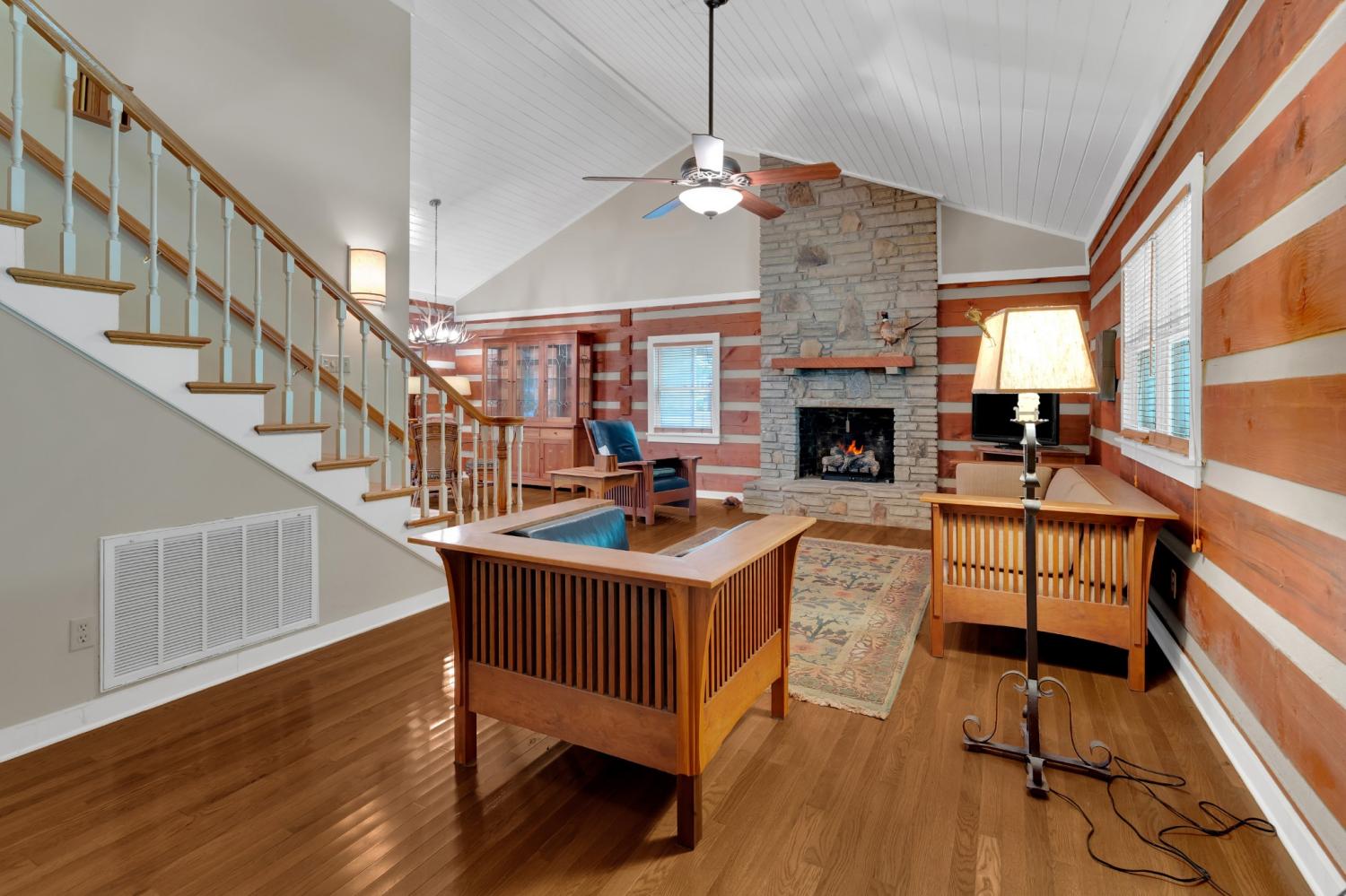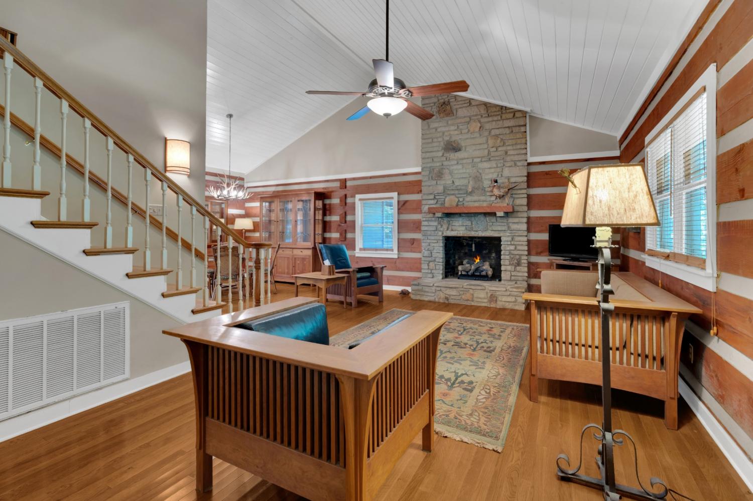 3-Bedroom, 3-Bath Log Cabin on 5 Acres in Desirable Clifftops. This charming 3-bedroom, 3-bath log cabin sits on a 5 acre beautifully maintained wooded lot in the coveted Clifftops neighborhood. Featuring gorgeous hardwood floors, abundant storage, and a dedicated office with built ins, this home blends rustic character with modern comfort. The spacious master suite offers a relaxing retreat, while the large upstairs bedroom includes its own private bath, perfect for guests or family. A third bedroom provides additional flexibility for sleeping or office space. Enjoy the serene natural surroundings from the covered front porch or the covered back patio, where the sounds of songbirds create a peaceful atmosphere. The property's landscaping is meticulously maintained, complementing the wooded setting. Additional highlights include a 2-car garage and an extra refrigerator. Located just minutes from the Clifftops lake, this home is ideal as a full-time residence or a tranquil second home escape.