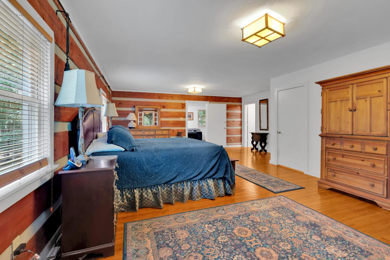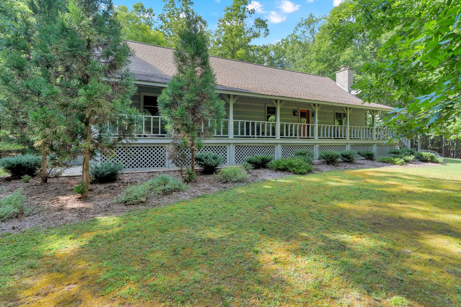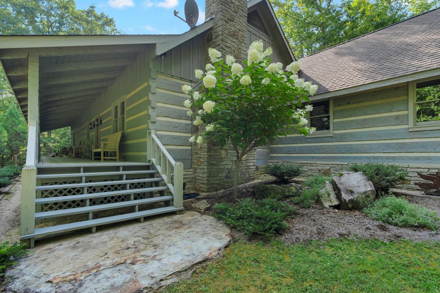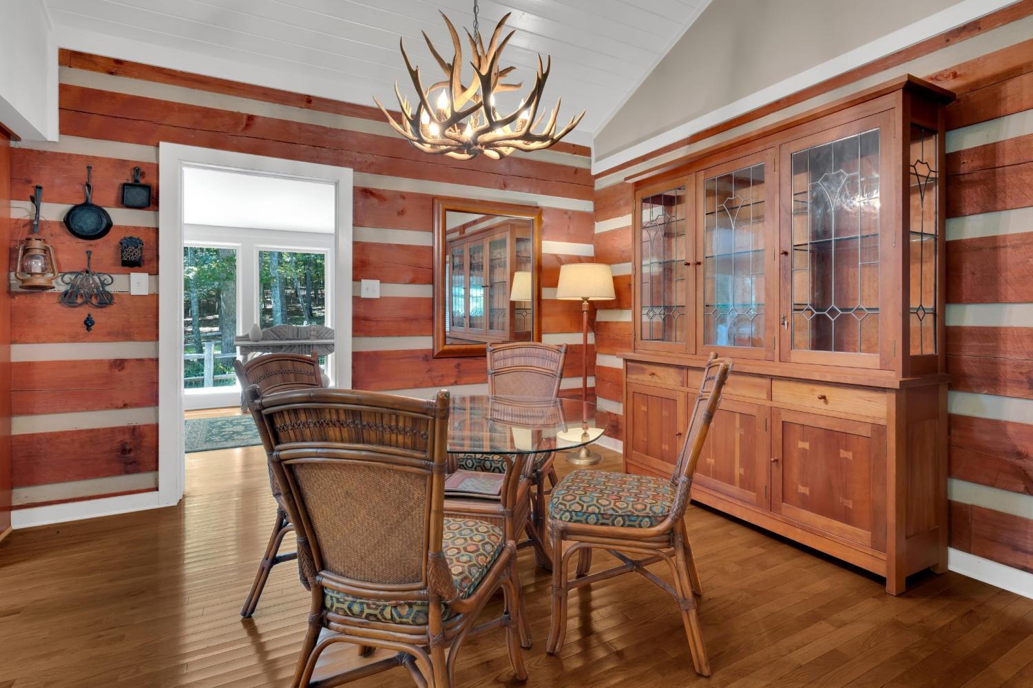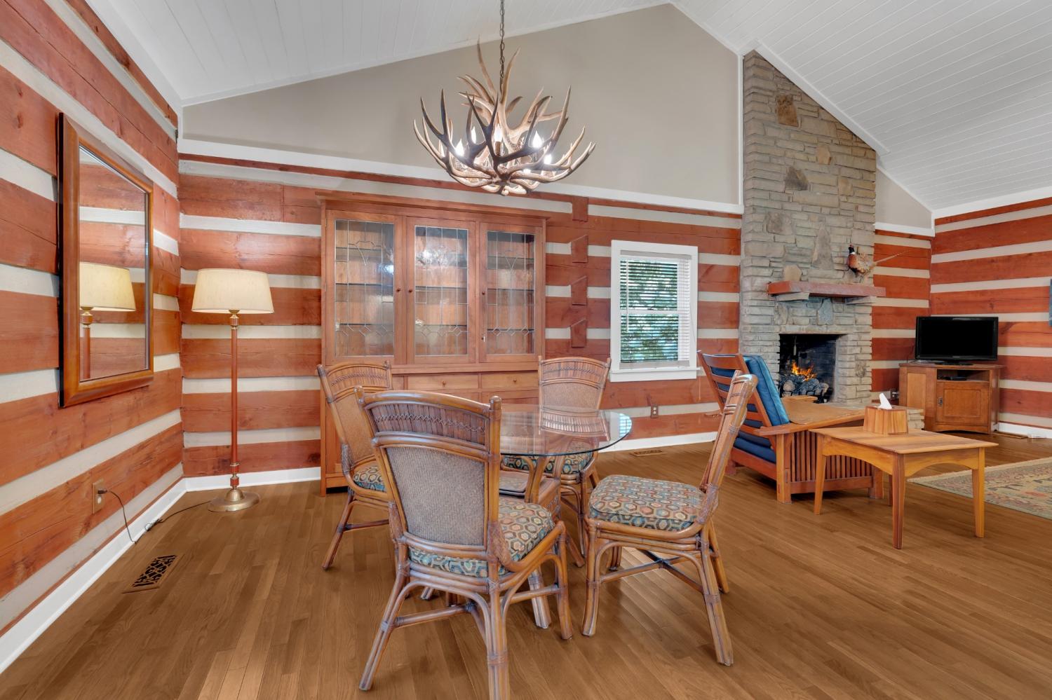 3-Bedroom, 3-Bath Log Cabin on 5 Acres in Desirable Clifftops. This charming 3-bedroom, 3-bath log cabin sits on a 5 acre beautifully maintained wooded lot in the coveted Clifftops neighborhood. Featuring gorgeous hardwood floors, abundant storage, and a dedicated office with built ins, this home blends rustic character with modern comfort. The spacious master suite offers a relaxing retreat, while the large upstairs bedroom includes its own private bath, perfect for guests or family. A third bedroom provides additional flexibility for sleeping or office space. Enjoy the serene natural surroundings from the covered front porch or the covered back patio, where the sounds of songbirds create a peaceful atmosphere. The property's landscaping is meticulously maintained, complementing the wooded setting. Additional highlights include a 2-car garage and an extra refrigerator. Located just minutes from the Clifftops lake, this home is ideal as a full-time residence or a tranquil second home escape.