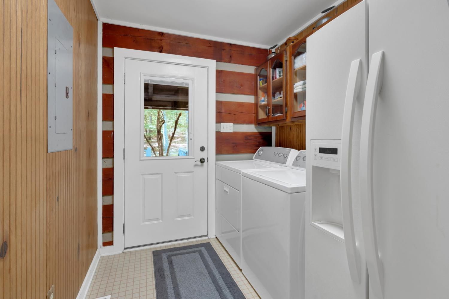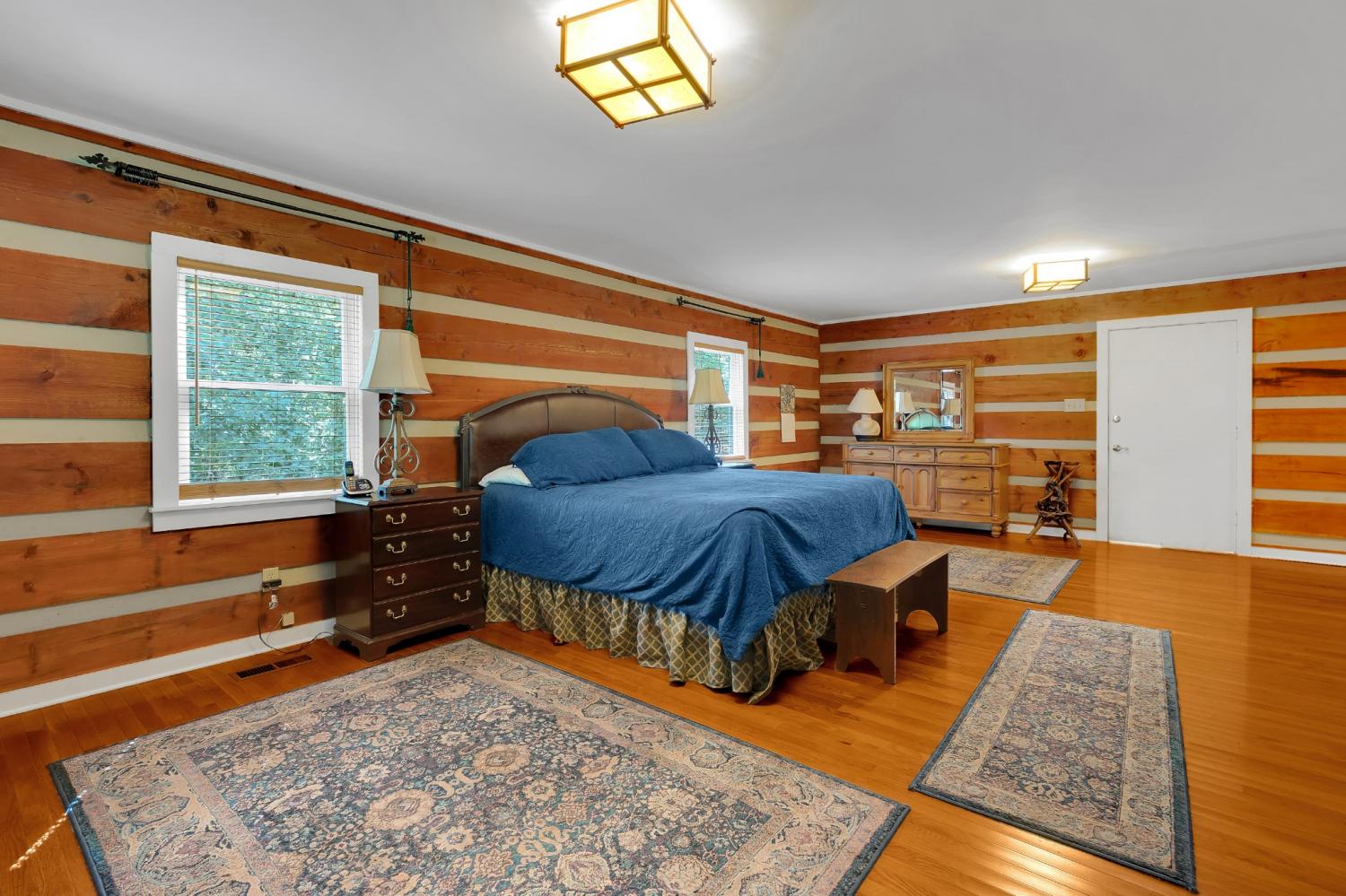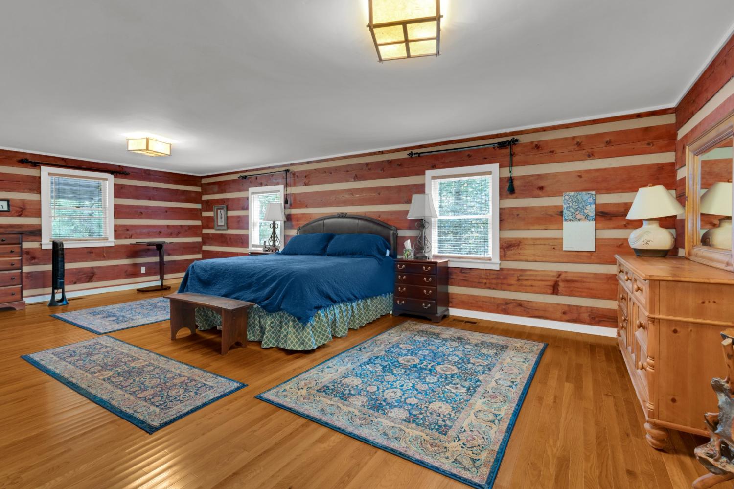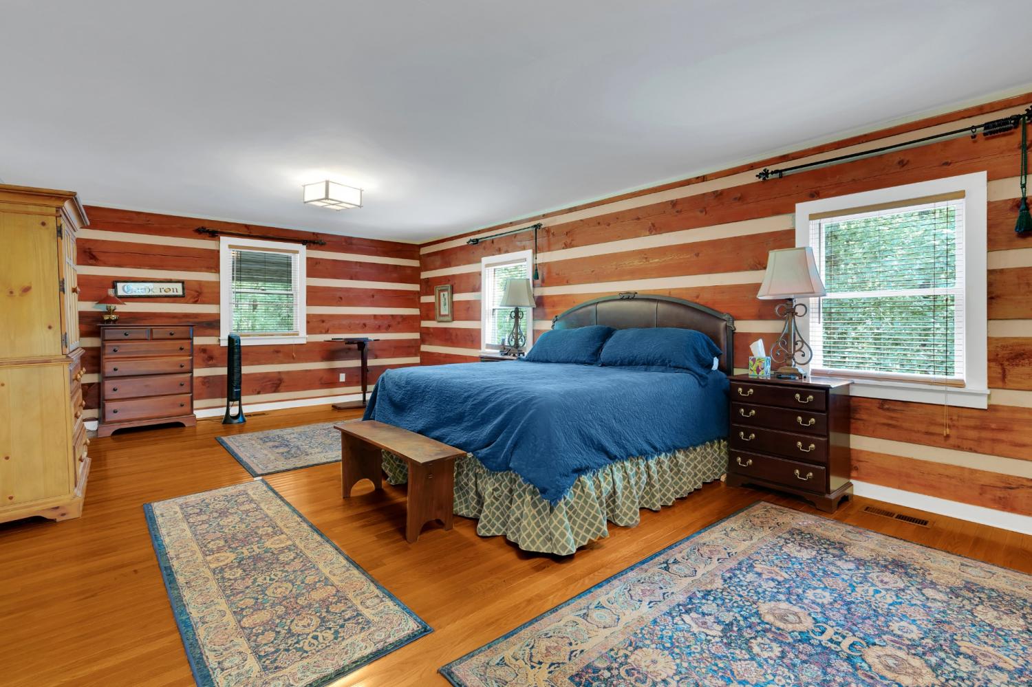 3-Bedroom, 3-Bath Log Cabin on 5 Acres in Desirable Clifftops. This charming 3-bedroom, 3-bath log cabin sits on a 5 acre beautifully maintained wooded lot in the coveted Clifftops neighborhood. Featuring gorgeous hardwood floors, abundant storage, and a dedicated office with built ins, this home blends rustic character with modern comfort. The spacious master suite offers a relaxing retreat, while the large upstairs bedroom includes its own private bath, perfect for guests or family. A third bedroom provides additional flexibility for sleeping or office space. Enjoy the serene natural surroundings from the covered front porch or the covered back patio, where the sounds of songbirds create a peaceful atmosphere. The property's landscaping is meticulously maintained, complementing the wooded setting. Additional highlights include a 2-car garage and an extra refrigerator. Located just minutes from the Clifftops lake, this home is ideal as a full-time residence or a tranquil second home escape.