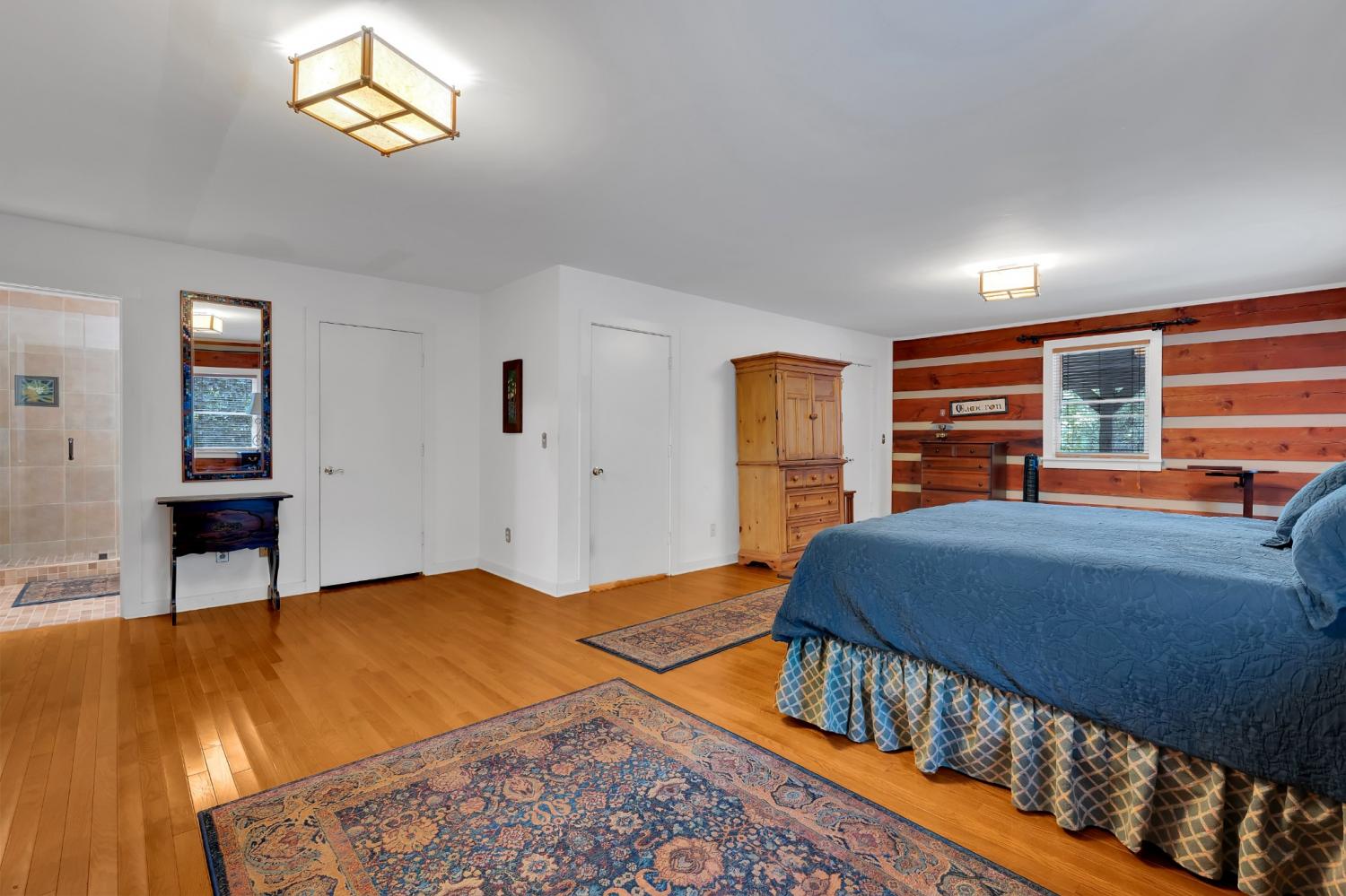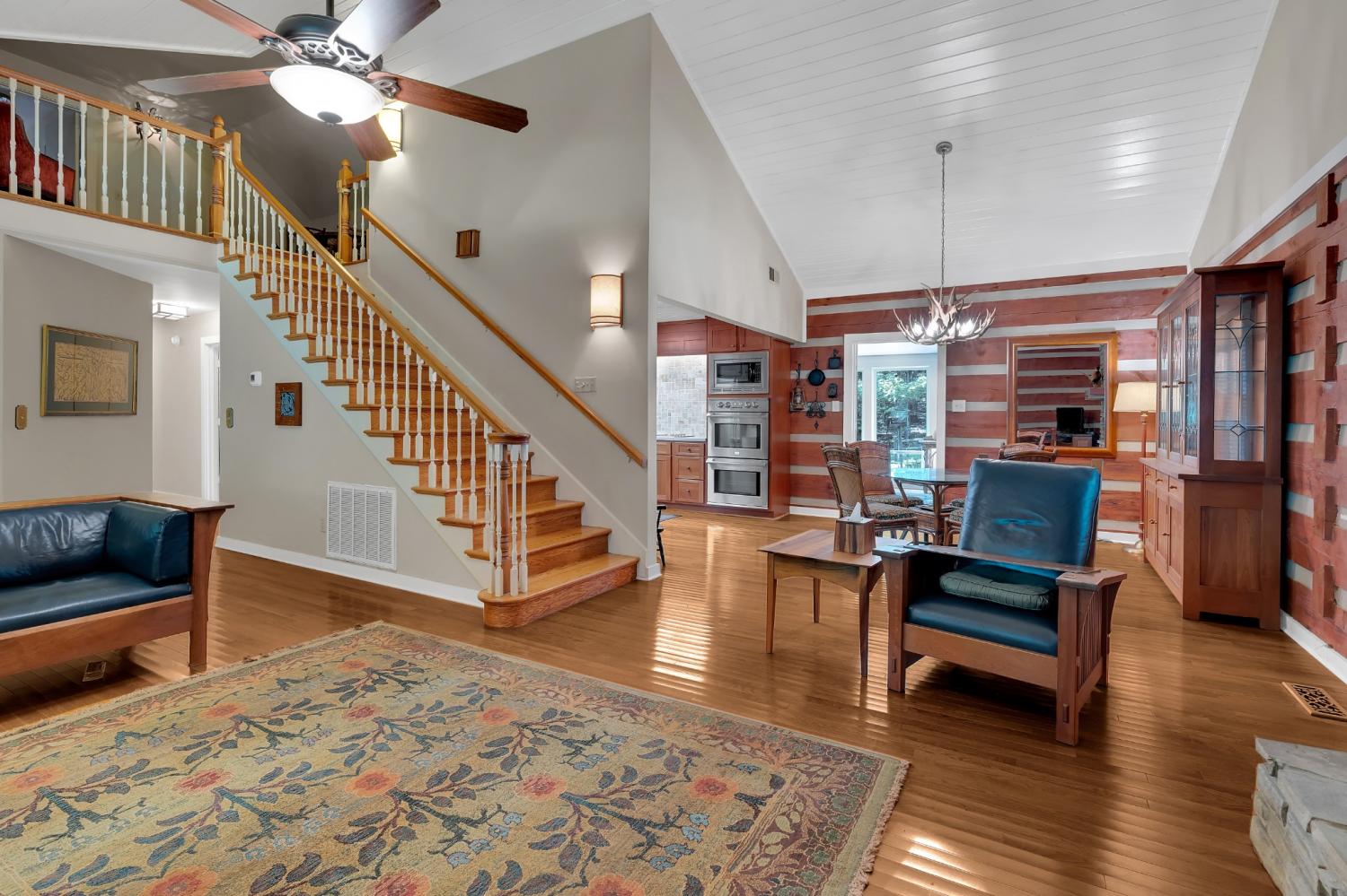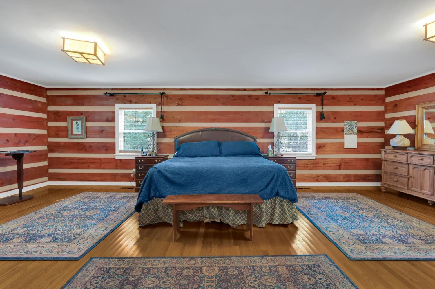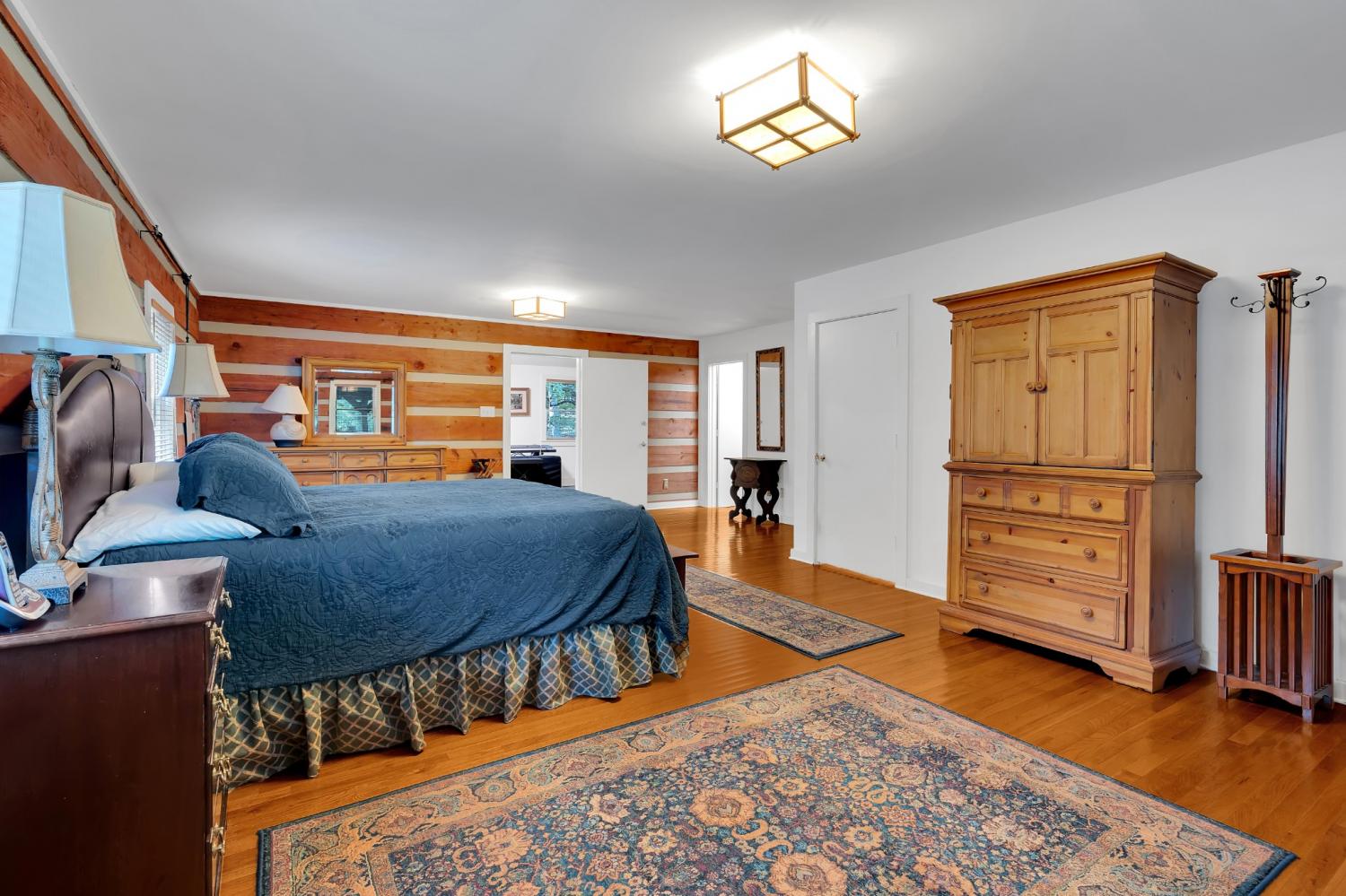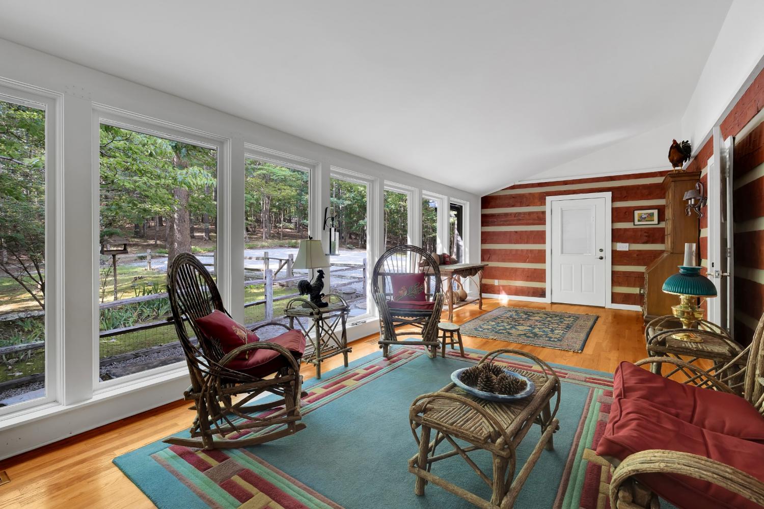 3-Bedroom, 3-Bath Log Cabin on 5 Acres in Desirable Clifftops. This charming 3-bedroom, 3-bath log cabin sits on a 5 acre beautifully maintained wooded lot in the coveted Clifftops neighborhood. Featuring gorgeous hardwood floors, abundant storage, and a dedicated office with built ins, this home blends rustic character with modern comfort. The spacious master suite offers a relaxing retreat, while the large upstairs bedroom includes its own private bath, perfect for guests or family. A third bedroom provides additional flexibility for sleeping or office space. Enjoy the serene natural surroundings from the covered front porch or the covered back patio, where the sounds of songbirds create a peaceful atmosphere. The property's landscaping is meticulously maintained, complementing the wooded setting. Additional highlights include a 2-car garage and an extra refrigerator. Located just minutes from the Clifftops lake, this home is ideal as a full-time residence or a tranquil second home escape.