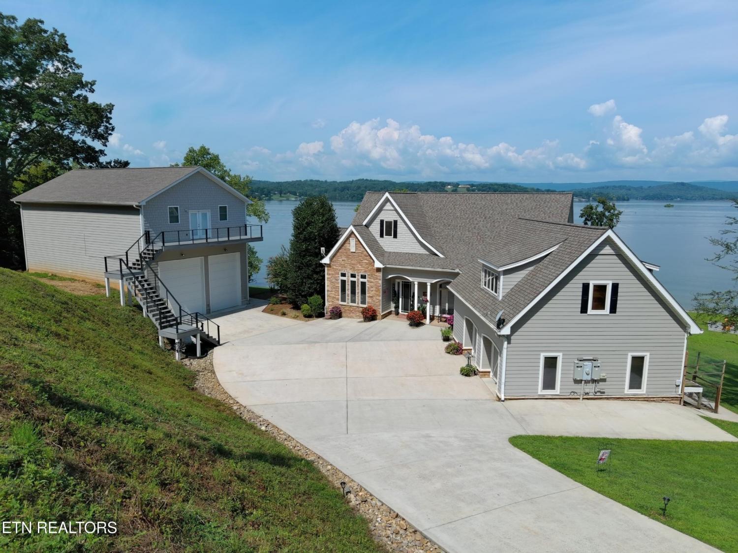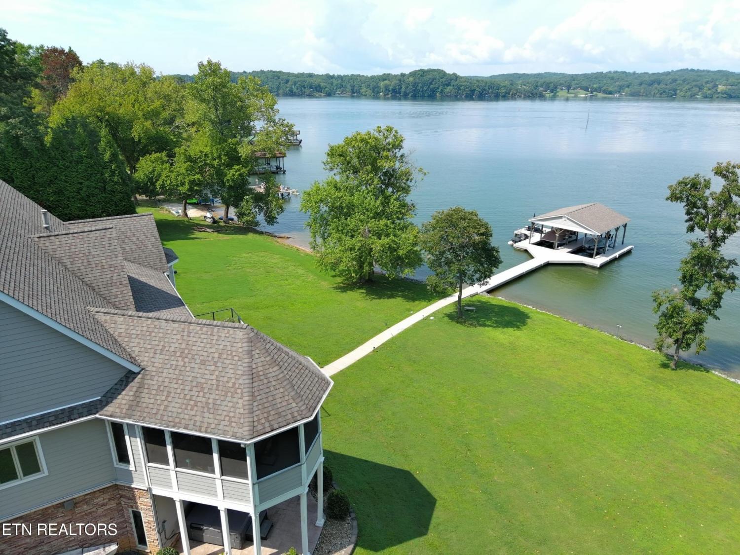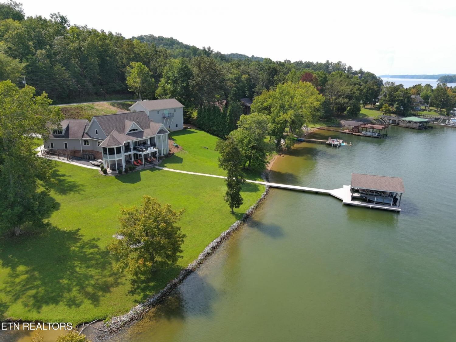 ''A lifestyle that most only dream about'' This custom-built masterpiece combines upscale design, panoramic main channel lake and mountain views, and prime deep-water access. Tucked away for privacy, you will enjoy breathtaking sunsets, quiet mornings & convenience to Marinas and more Waterways. Property offers over 300+ ft of level Shoreline and an easy walk to your Two-slip dock that includes 2 boat lifts, floating Jet Ski dock, and spacious Sitting Area, with dock furniture included. New Owners will be amazed by the Newly built Detached Garage with Guest House adding an additional -1500 sq ft, ideal for multi-generational living, guest or STR income, garage features 14ft garage doors that will accommodate up to 2 RV's with 1 )hookup and clean-out , will accommodate 4 cars & a 2 car attached garage. Main Residence Features a well thought out floor plan with quality inside & out: Solid wood doors, New Luxury Flooring Crown Molding, Granite Countertops, Beautiful stack stone FP, Master On Main, Formal Dining, Private Office, Great Room, 3 Kitchens, Family Room, Hobby spaces, an oversized workshop and an abundance of storage. Spa amenities: Hot Tub, Infrared Sauna and Work-Out space. Home includes All Appliances & 2) 80 '' TV'S, A Newer 50-year Architectural Roof, Sprinkler System, a Generac generator, a Sun-Setter Retractable Awning on the expansive deck and so much more! This home is designed for entertaining and relaxing in style, with a layout that offers Amazing Views from almost every room and multiple separate living quarters — perfect for large gatherings, hosting guests, or maximizing short-term rental opportunities. Live here full-time, invest in a high-demand STR, or retreat seasonally — the choice is yours. Rare doesn't even begin to describe this lakefront opportunity. CALL NOW FOR YOUR PRIVATE SHOWING AND PREPARE TO FALL IN LOVE!!!! **( All Furnishings negotiable)**