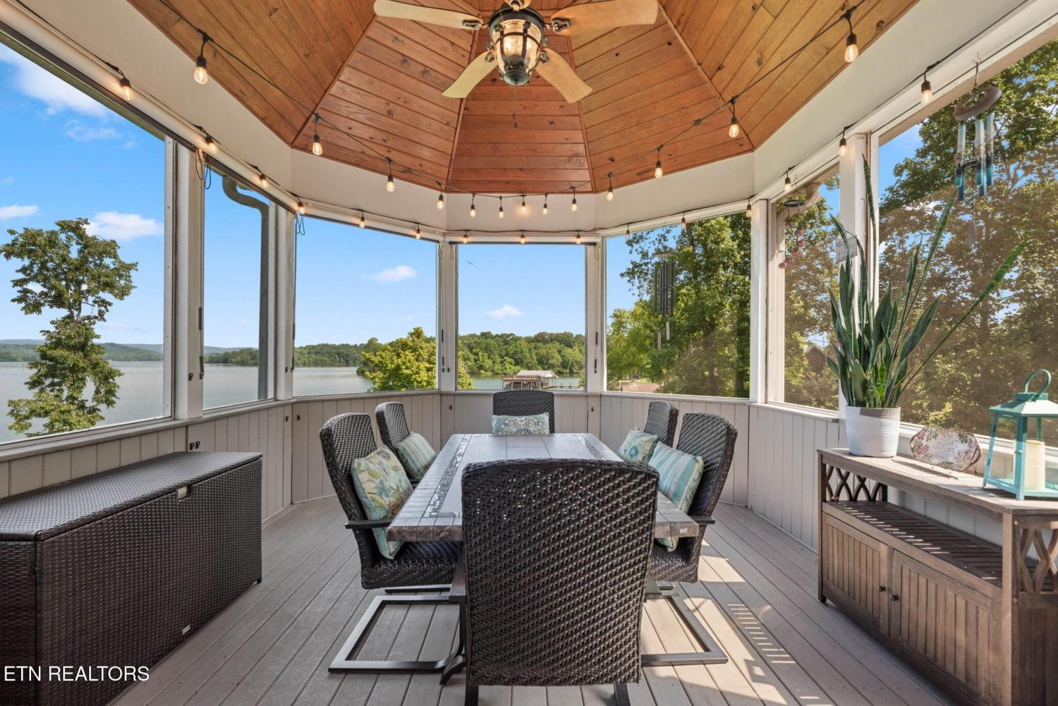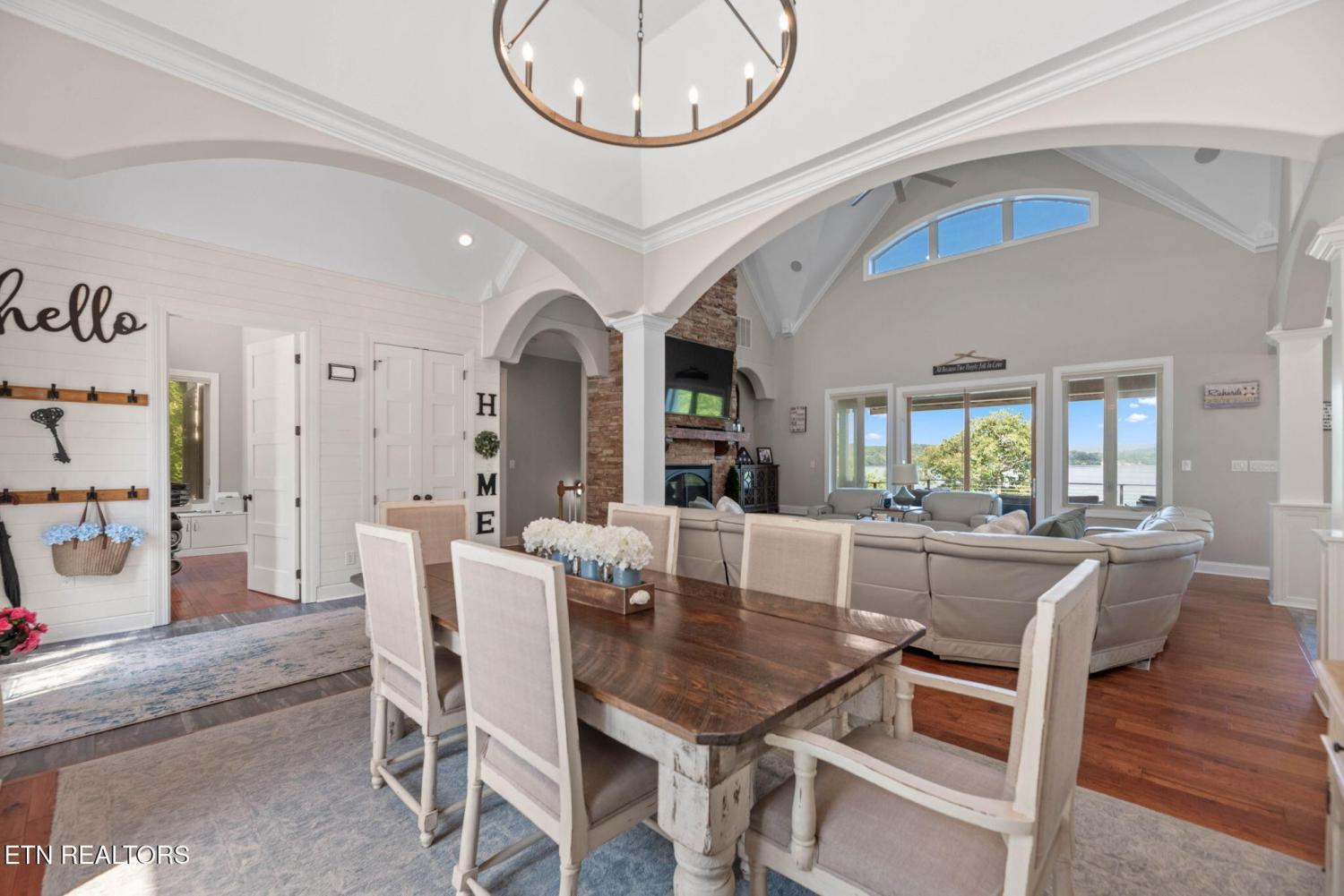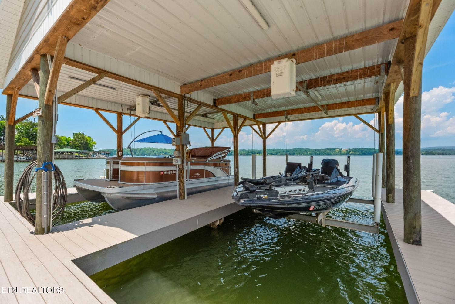 ''A lifestyle that most only dream about'' This custom-built masterpiece combines upscale design, panoramic main channel lake and mountain views, and prime deep-water access. Tucked away for privacy, you will enjoy breathtaking sunsets, quiet mornings & convenience to Marinas and more Waterways. Property offers over 300+ ft of level Shoreline and an easy walk to your Two-slip dock that includes 2 boat lifts, floating Jet Ski dock, and spacious Sitting Area, with dock furniture included. New Owners will be amazed by the Newly built Detached Garage with Guest House adding an additional -1500 sq ft, ideal for multi-generational living, guest or STR income, garage features 14ft garage doors that will accommodate up to 2 RV's with 1 )hookup and clean-out , will accommodate 4 cars & a 2 car attached garage. Main Residence Features a well thought out floor plan with quality inside & out: Solid wood doors, New Luxury Flooring Crown Molding, Granite Countertops, Beautiful stack stone FP, Master On Main, Formal Dining, Private Office, Great Room, 3 Kitchens, Family Room, Hobby spaces, an oversized workshop and an abundance of storage. Spa amenities: Hot Tub, Infrared Sauna and Work-Out space. Home includes All Appliances & 2) 80 '' TV'S, A Newer 50-year Architectural Roof, Sprinkler System, a Generac generator, a Sun-Setter Retractable Awning on the expansive deck and so much more! This home is designed for entertaining and relaxing in style, with a layout that offers Amazing Views from almost every room and multiple separate living quarters — perfect for large gatherings, hosting guests, or maximizing short-term rental opportunities. Live here full-time, invest in a high-demand STR, or retreat seasonally — the choice is yours. Rare doesn't even begin to describe this lakefront opportunity. CALL NOW FOR YOUR PRIVATE SHOWING AND PREPARE TO FALL IN LOVE!!!! **( All Furnishings negotiable)**