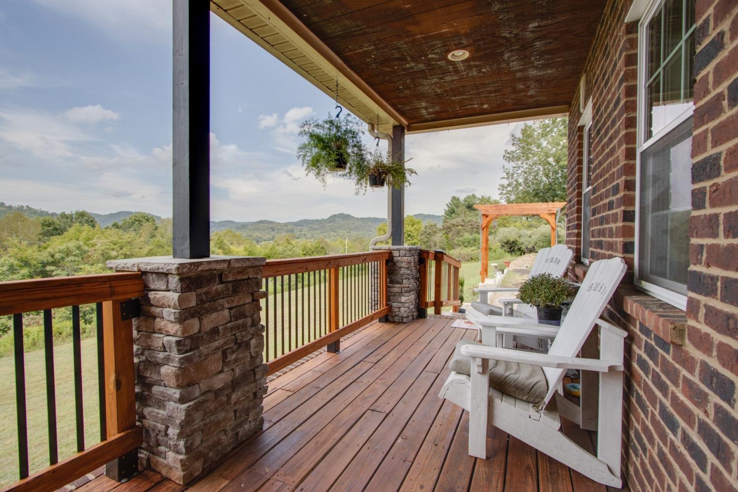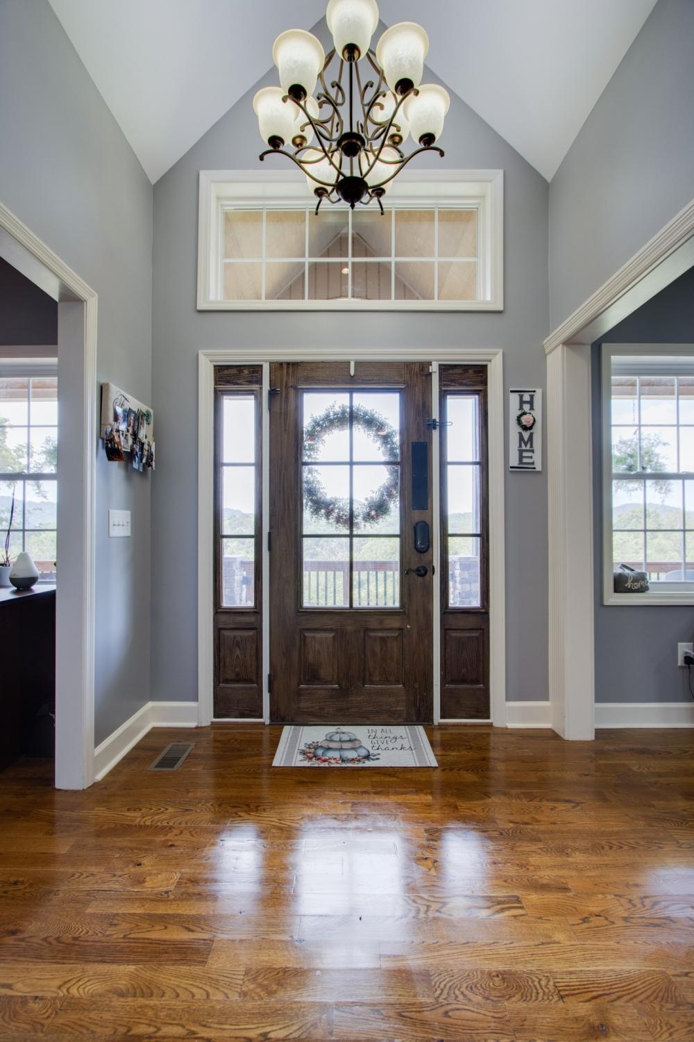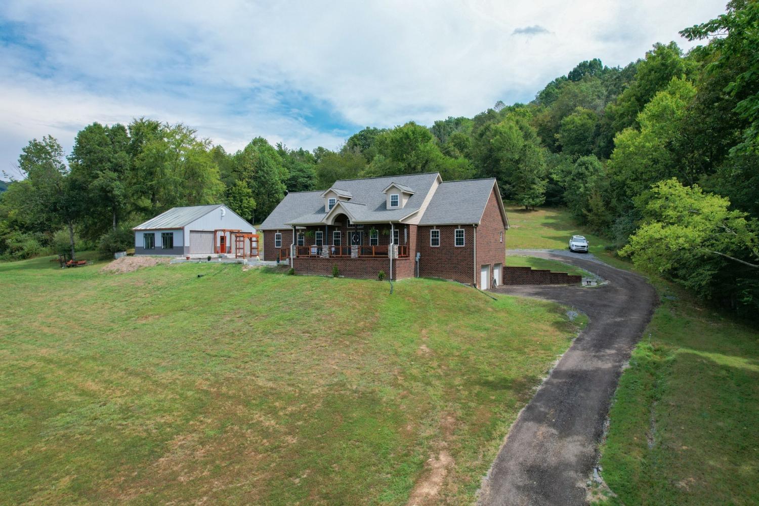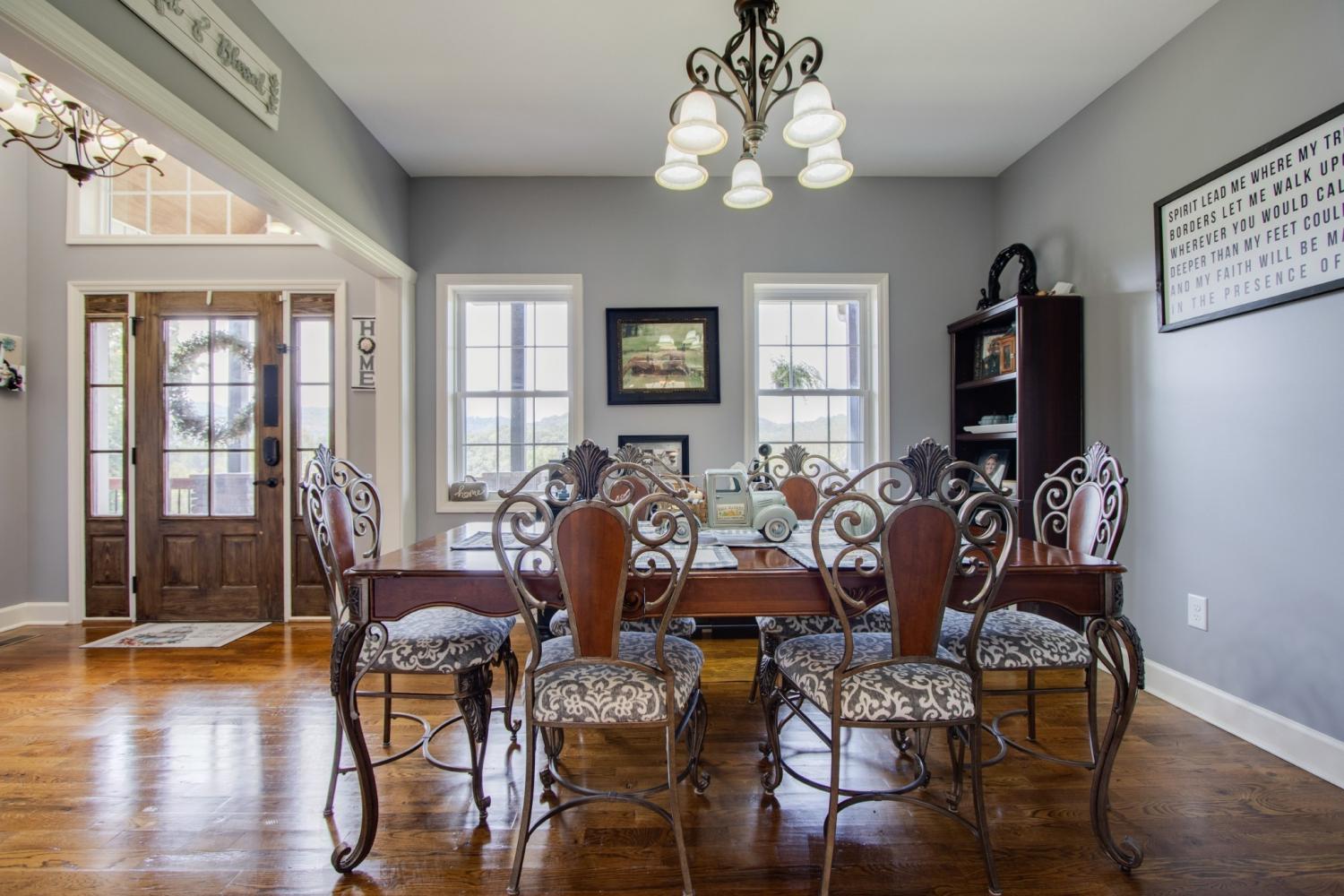 Gorgeous LAKE view!!!! Walk to Cordell Hull Lake. Enjoy beautiful sunrises and sunsets from your front porch. This custom home features a spacious floor-plan, Living room w/ fireplace, kitchen w/ granite countertops, hardwoods, stainless appliances. Two car attached garage to full basement, over-sized garage to main floor. Dining, bonus rm, Laundry, office & 5 acres. 30x40 shop. Large yard for kids/pets. Tile shower, tub, double vanities in master. His/Her walk in closets.