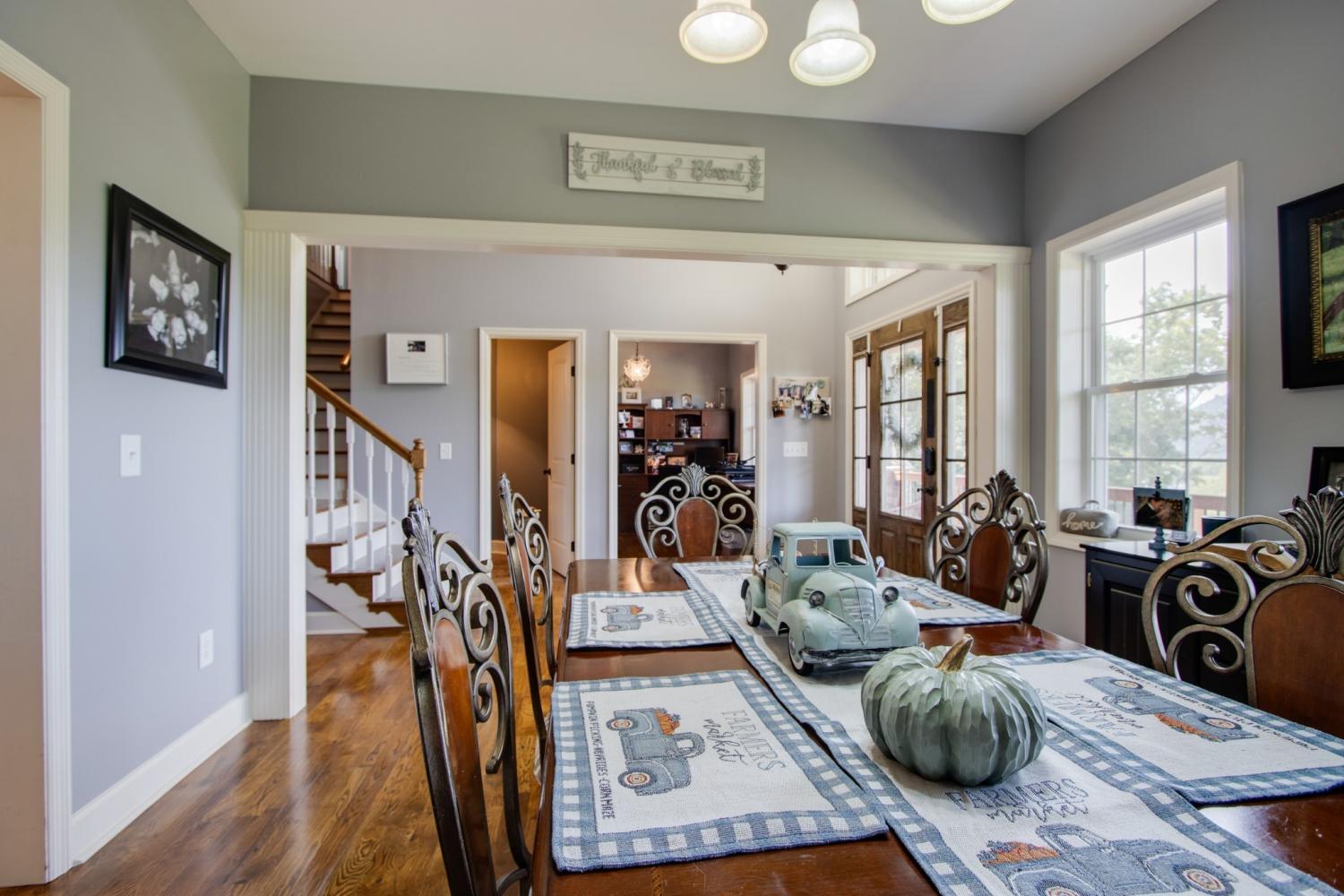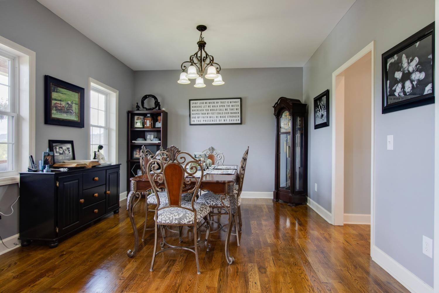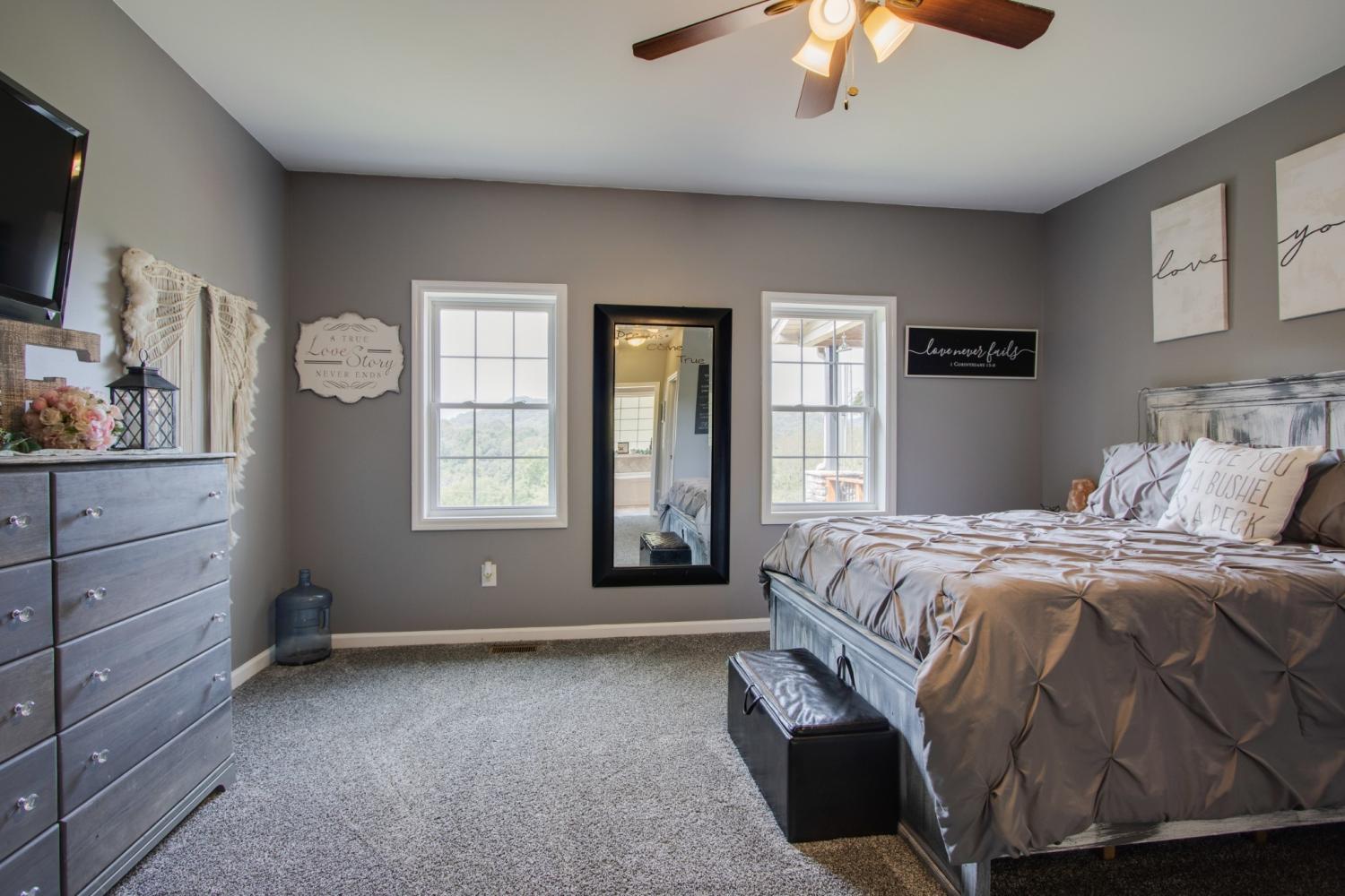 Gorgeous LAKE view!!!! Walk to Cordell Hull Lake. Enjoy beautiful sunrises and sunsets from your front porch. This custom home features a spacious floor-plan, Living room w/ fireplace, kitchen w/ granite countertops, hardwoods, stainless appliances. Two car attached garage to full basement, over-sized garage to main floor. Dining, bonus rm, Laundry, office & 5 acres. 30x40 shop. Large yard for kids/pets. Tile shower, tub, double vanities in master. His/Her walk in closets.