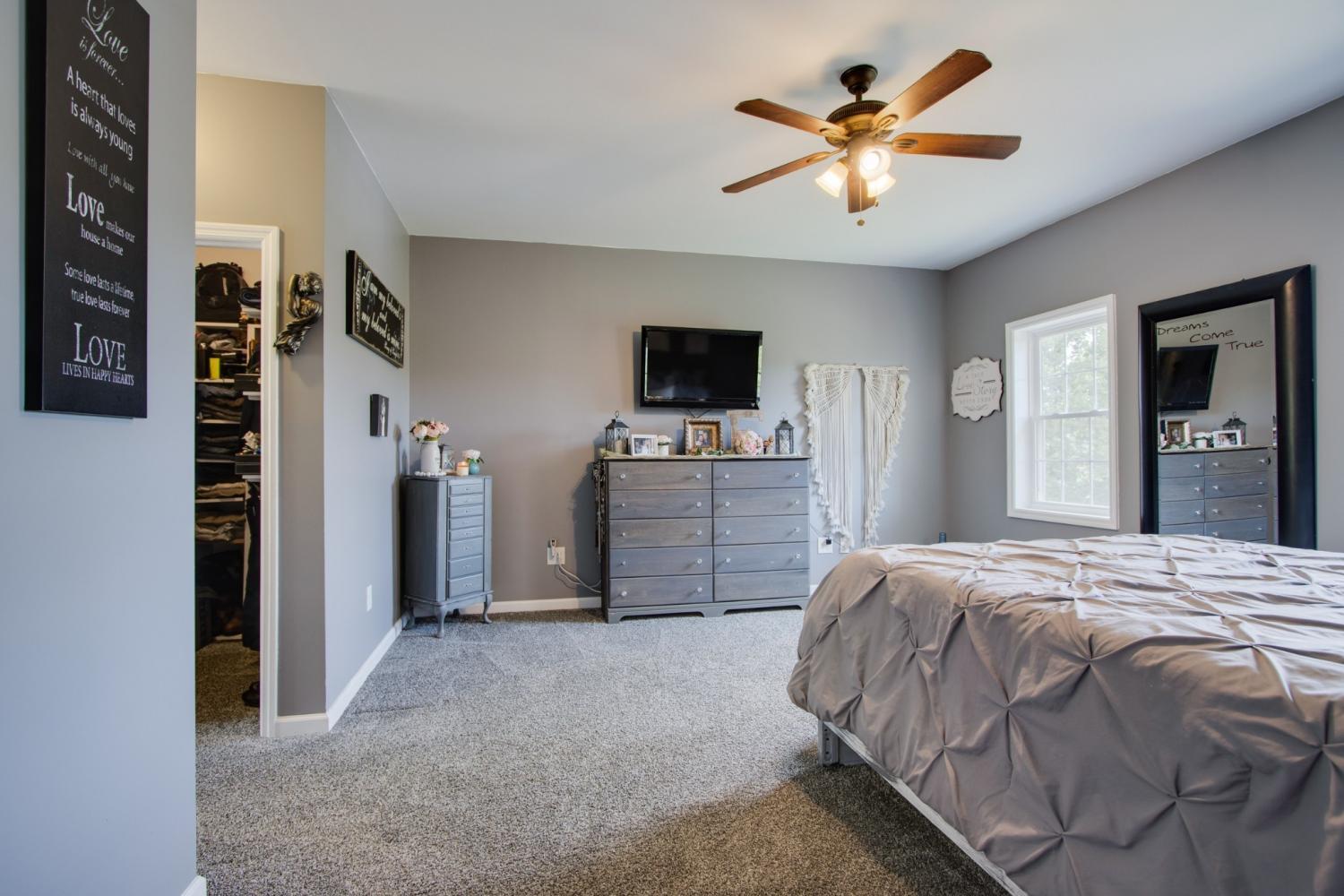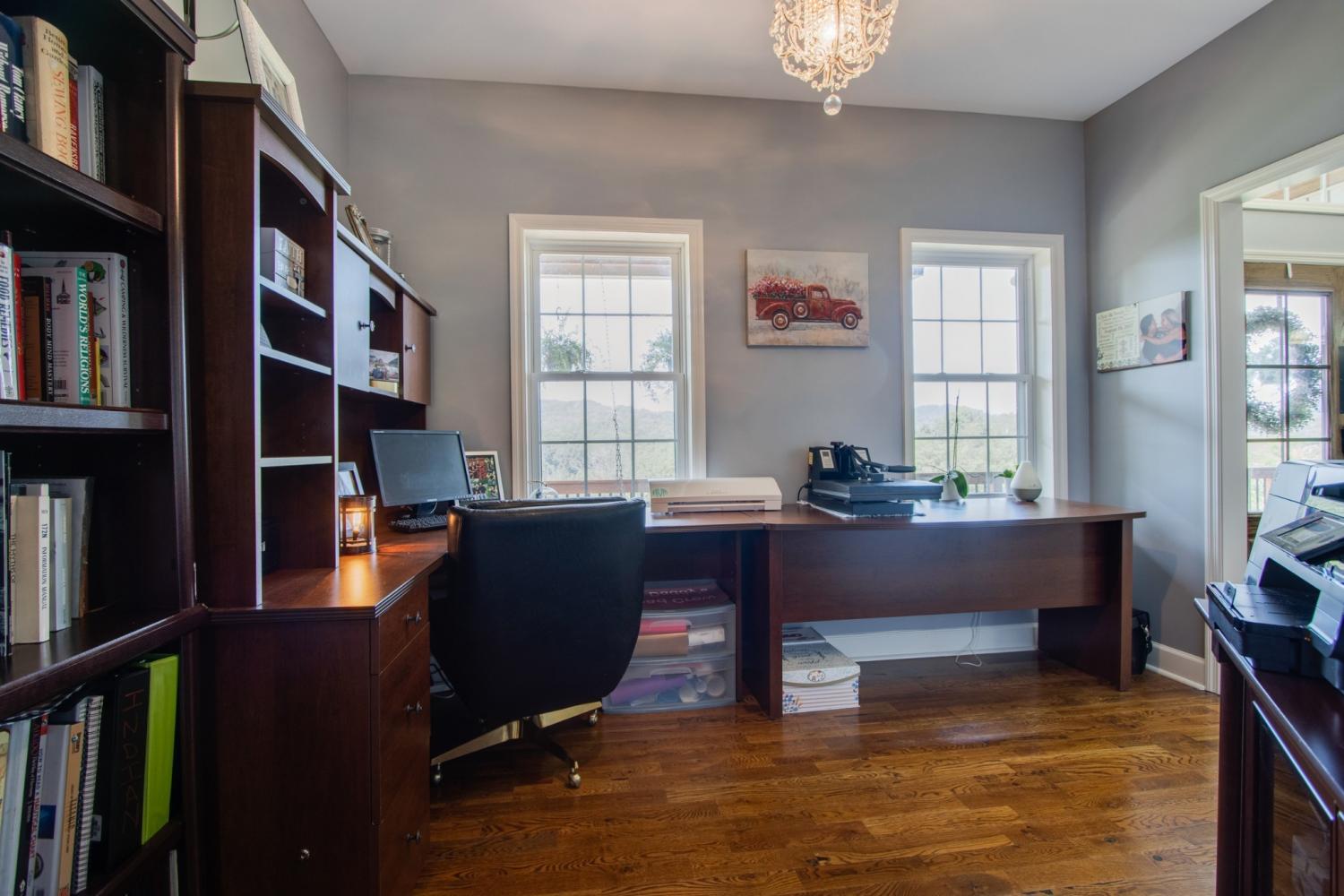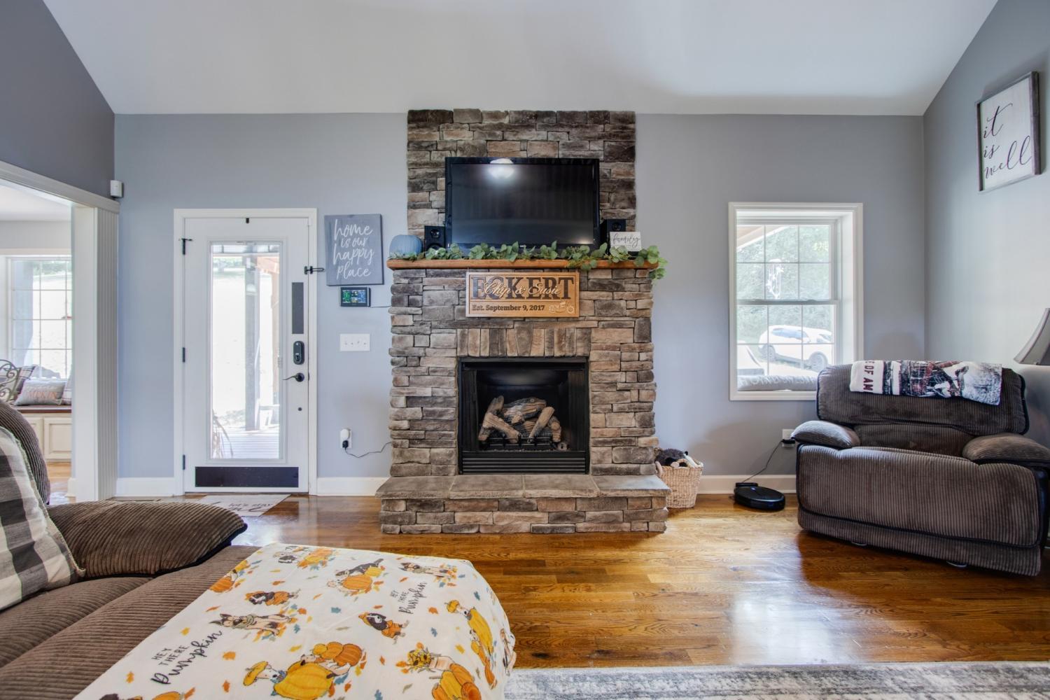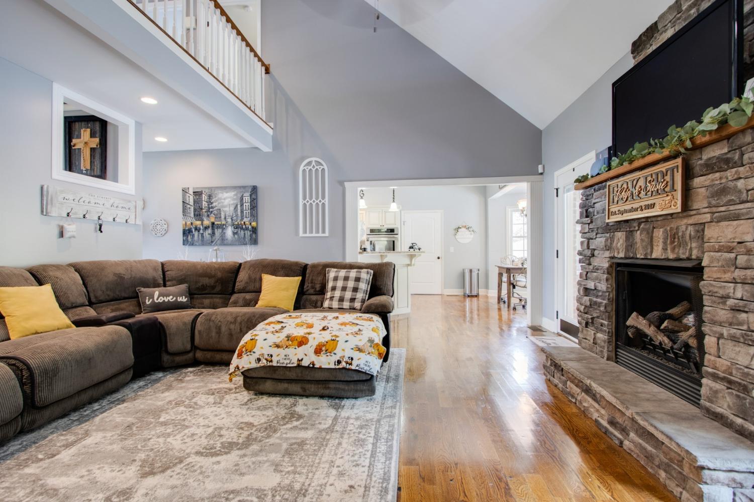 Gorgeous LAKE view!!!! Walk to Cordell Hull Lake. Enjoy beautiful sunrises and sunsets from your front porch. This custom home features a spacious floor-plan, Living room w/ fireplace, kitchen w/ granite countertops, hardwoods, stainless appliances. Two car attached garage to full basement, over-sized garage to main floor. Dining, bonus rm, Laundry, office & 5 acres. 30x40 shop. Large yard for kids/pets. Tile shower, tub, double vanities in master. His/Her walk in closets.