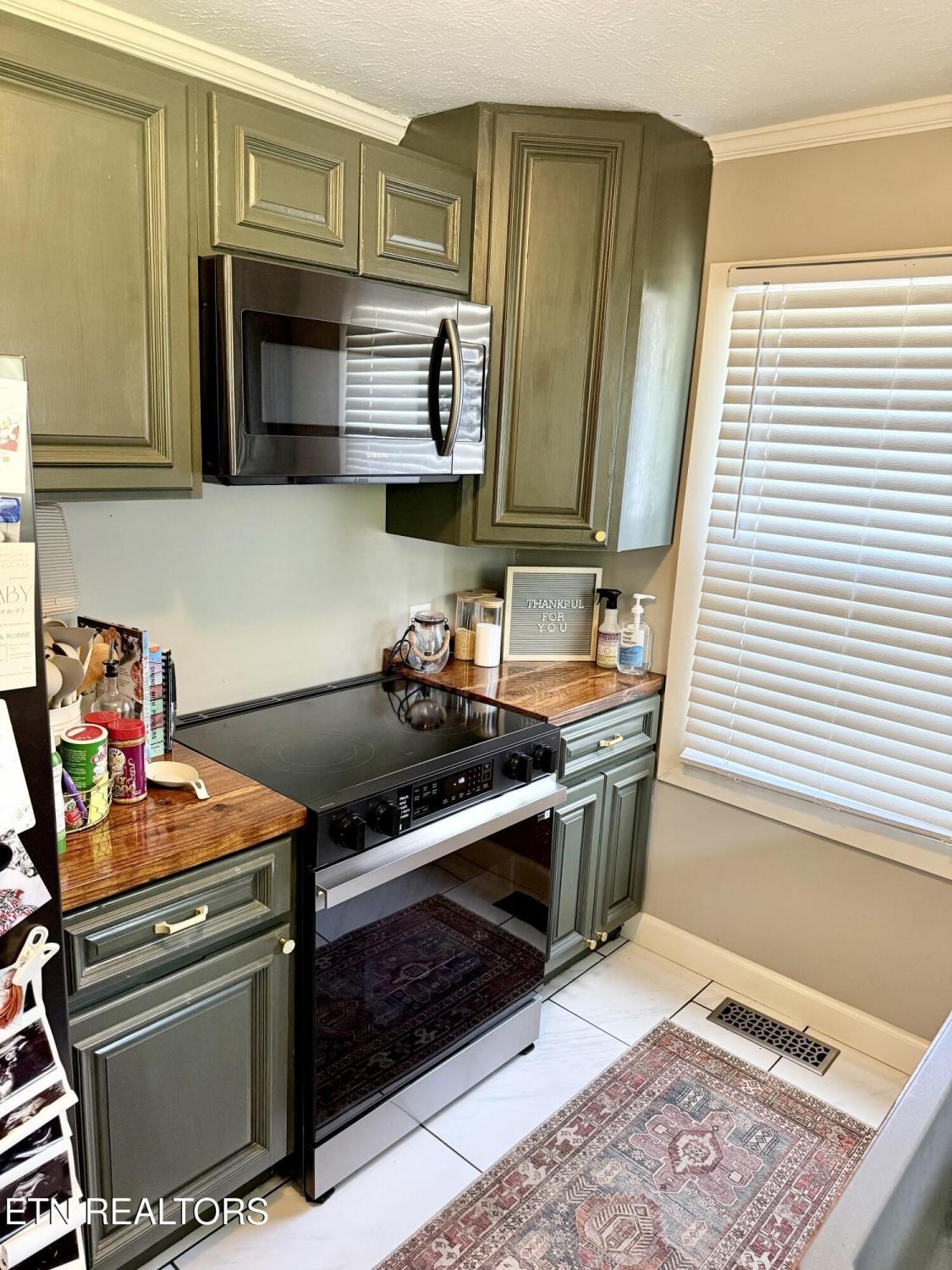 ..Cozy, Updated 3 Bedroom Home! Welcome home to this charming 3 bed, 1 bath gem that's been lovingly refreshed and is ready for new memories to be made. Perfect for first-time buyers, small families, or anyone looking to downsize without giving up comfort! Cozy Features Include: • Fresh paint inside & out - bright and welcoming! • Brand new stove + all appliances included • Eat-in kitchen with warm butcher block countertops • Crown molding throughout adds a touch of elegance • Central heat & air for year-round comfort • 1-car garage for parking or extra storage • Detached storage shed with A/C - a perfect workspace or hobby area • Fenced-in, level yard - ideal for kids and furbabies to play safely • Located just minutes from the interstate for easy commutes! You'll feel right at home the moment you walk in — this one is full of warmth, personality, and thoughtful touches throughout. This information is deemed reliable, but not guaranteed. Buyer should confirm all information to their satisfaction.