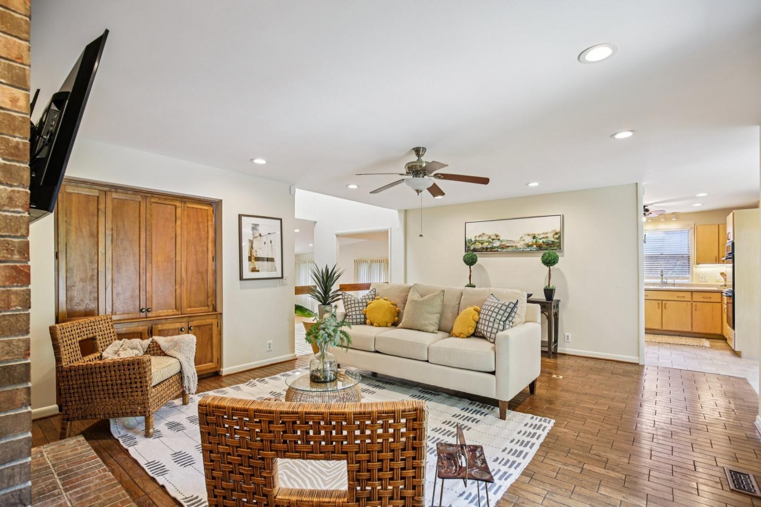 Be in Green Hills Under One Million! Experience the allure of mid-century modern living at 73 Concord Park West, nestled within the prestigious gated community of Sugartree in West Nashville. This elegant single-level residence offers 2,315 square feet of thoughtfully designed space, featuring three spacious bedrooms and two-and-a-half baths. Discover the charm of separate living and dining rooms, perfect for entertaining guests or hosting family gatherings. The primary suite is a true retreat, complete with a walk-in closet and a bathroom featuring a separate shower and tub. The den's cozy fireplace and built-in bookcases add warmth and character, while the open layout extends to a private walk-out patio. Hardwood floors enhance the home's refined aesthetic. Enjoy unparalleled amenities including a community pool, tennis/pickleball courts, landscape care covered by the HOA. The attached two-car garage and ample guest parking add convenience to this home.Crawl space has been encapsulated.