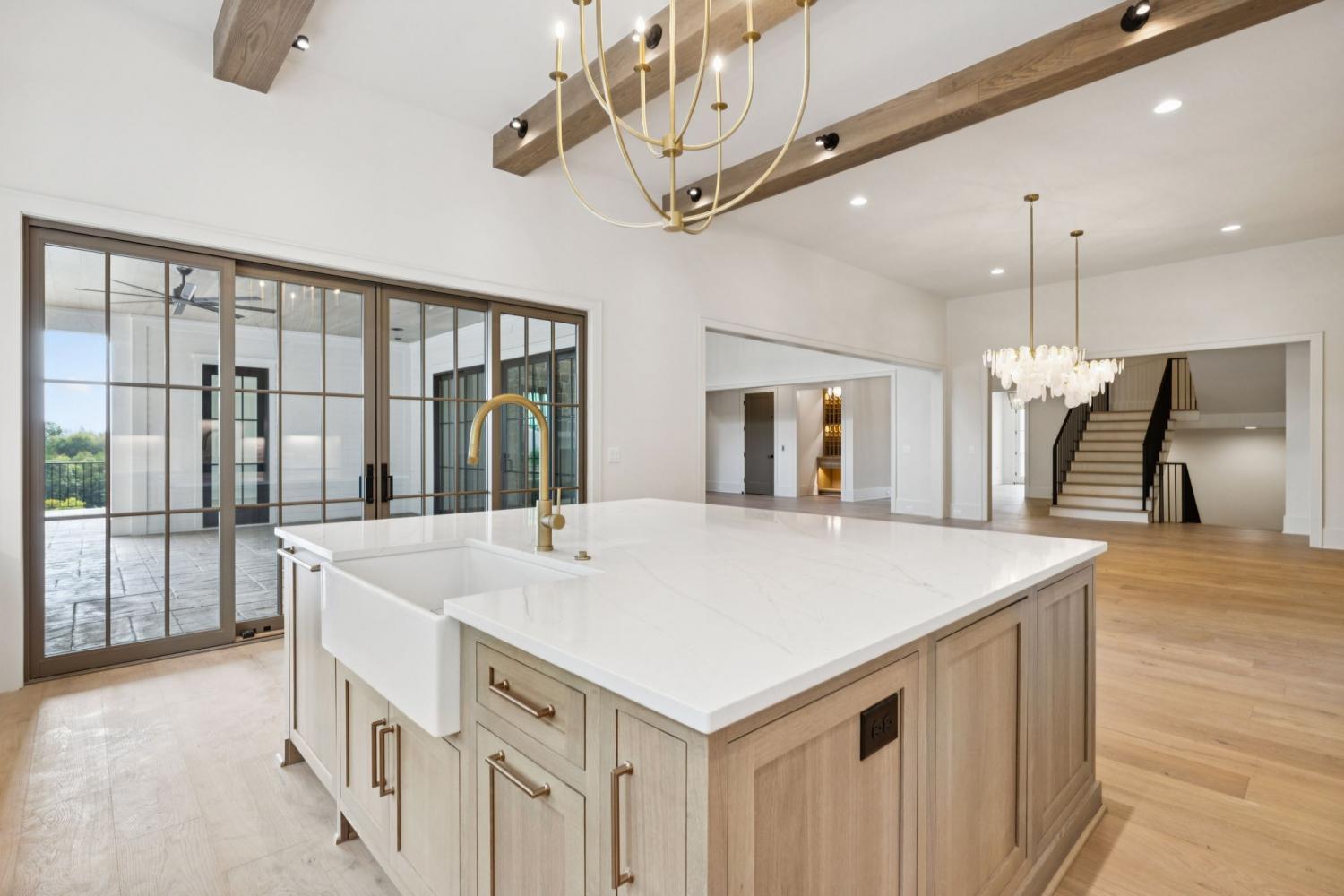 The Spa House at The Grove! One-of-a-Kind Stone Farmhouse perched high on a grand estate lot, with exceptional views from every window! Wrap yourself in luxury and the ultimate private homesite in The Grove! Make the most of your time with family in a Huge Great Room with two-story volume, transom windows and tons of light! Chef's Kitchen with double 30" Thermador fridge columns, plus a 30" Thermador freezer column in the working pantry! Take the passageway from the Scullery to the Outdoor Kitchen/Bar with custom hood, beverage fridge, and Griddle too! Bar service to the Top Tier custom pool and putting green in the back yard. Massive Primary Suite has an incredible 15'x16' Her closet, complete with Dressing Table and Island with mini washer/dryer. This home was custom curated by Trace for the Fitness/Wellness Connosseur! Bring your wellness goals to life and enjoy your very own Home Gym complete with filtered/chilled water station, Infrared sauna and cold plunge system w/wet area - right in the Gym! Don't miss the 4 Car oversized garage too! So many custom features and finishes you need to see to believe!