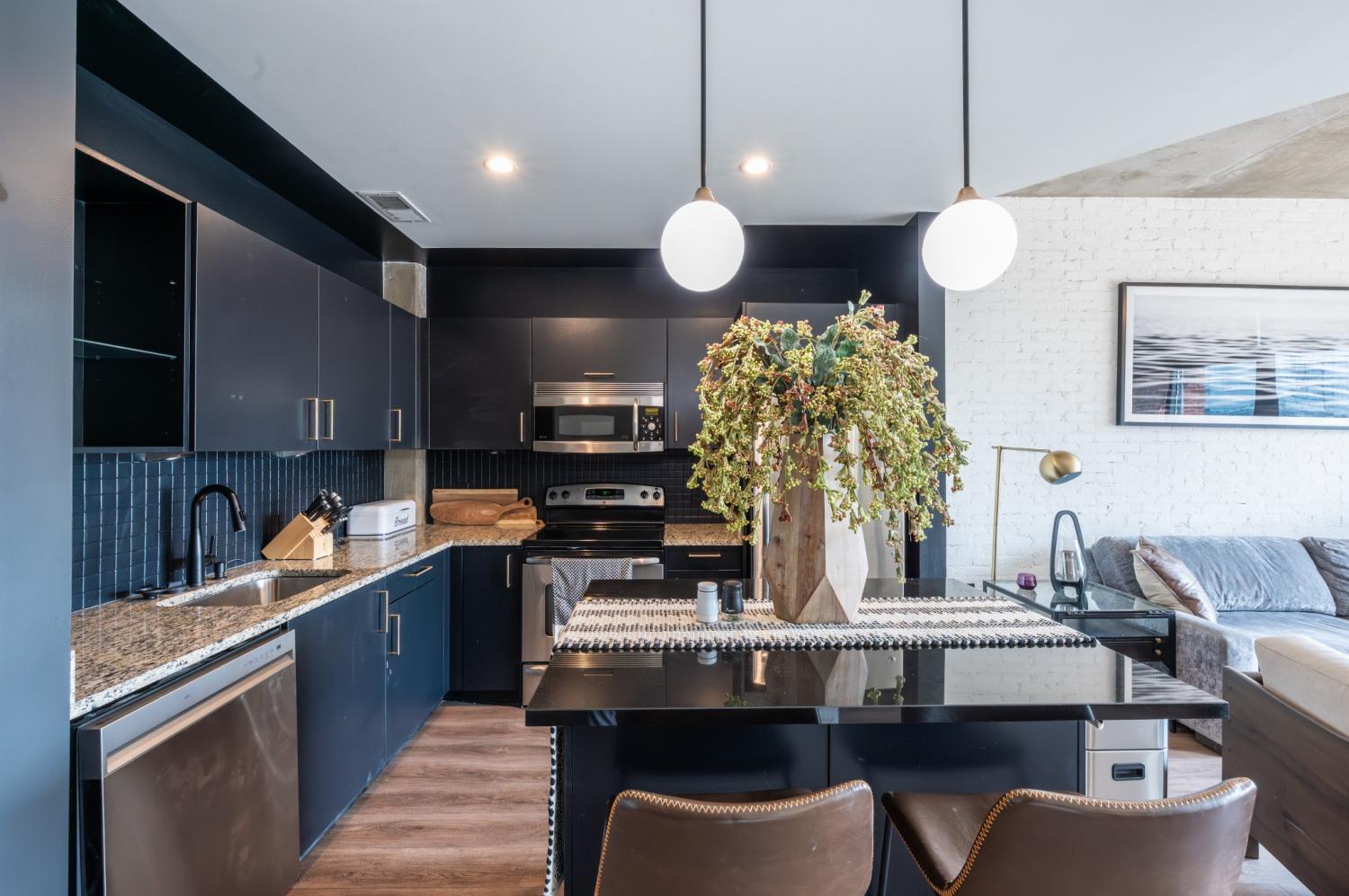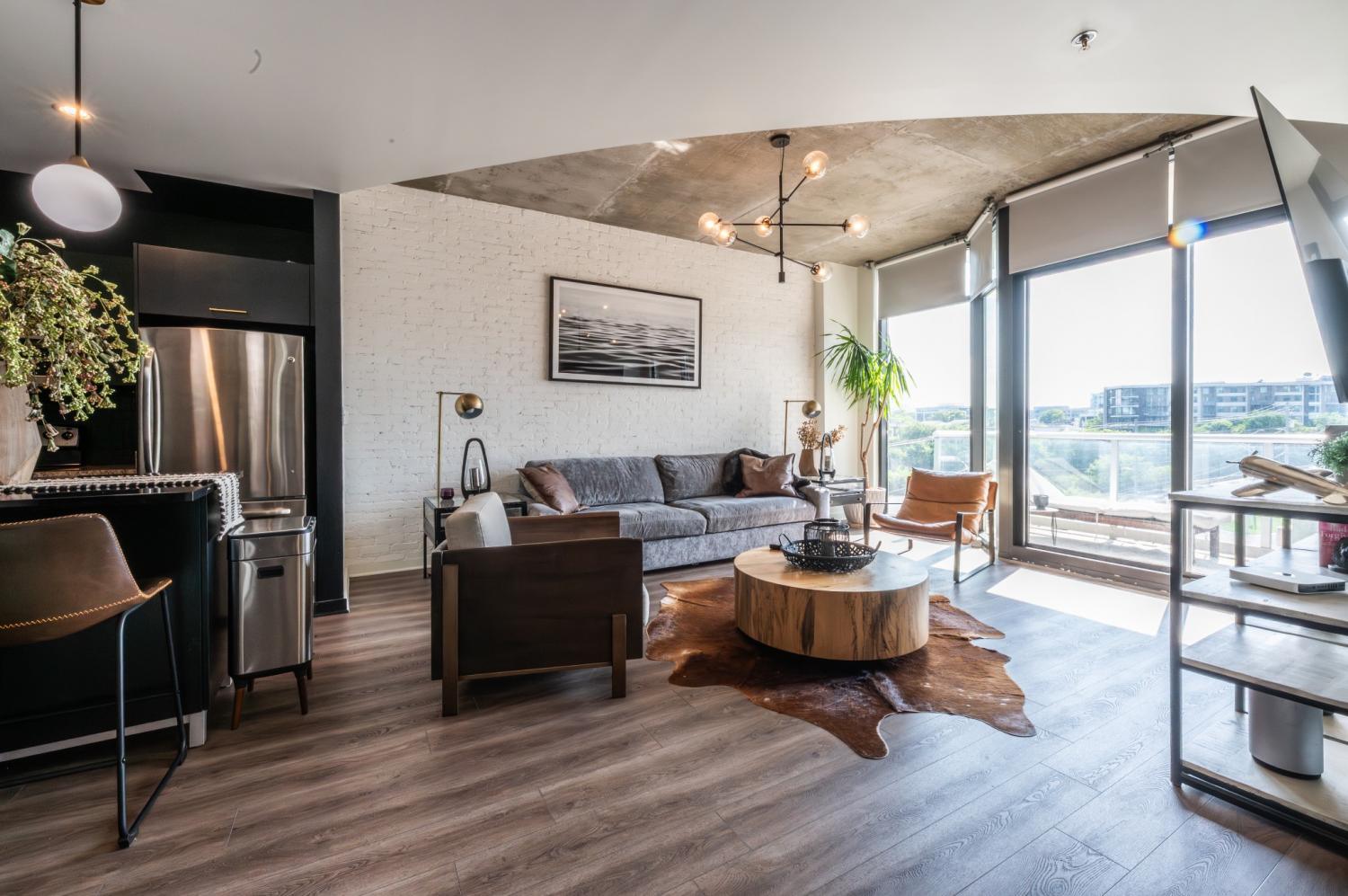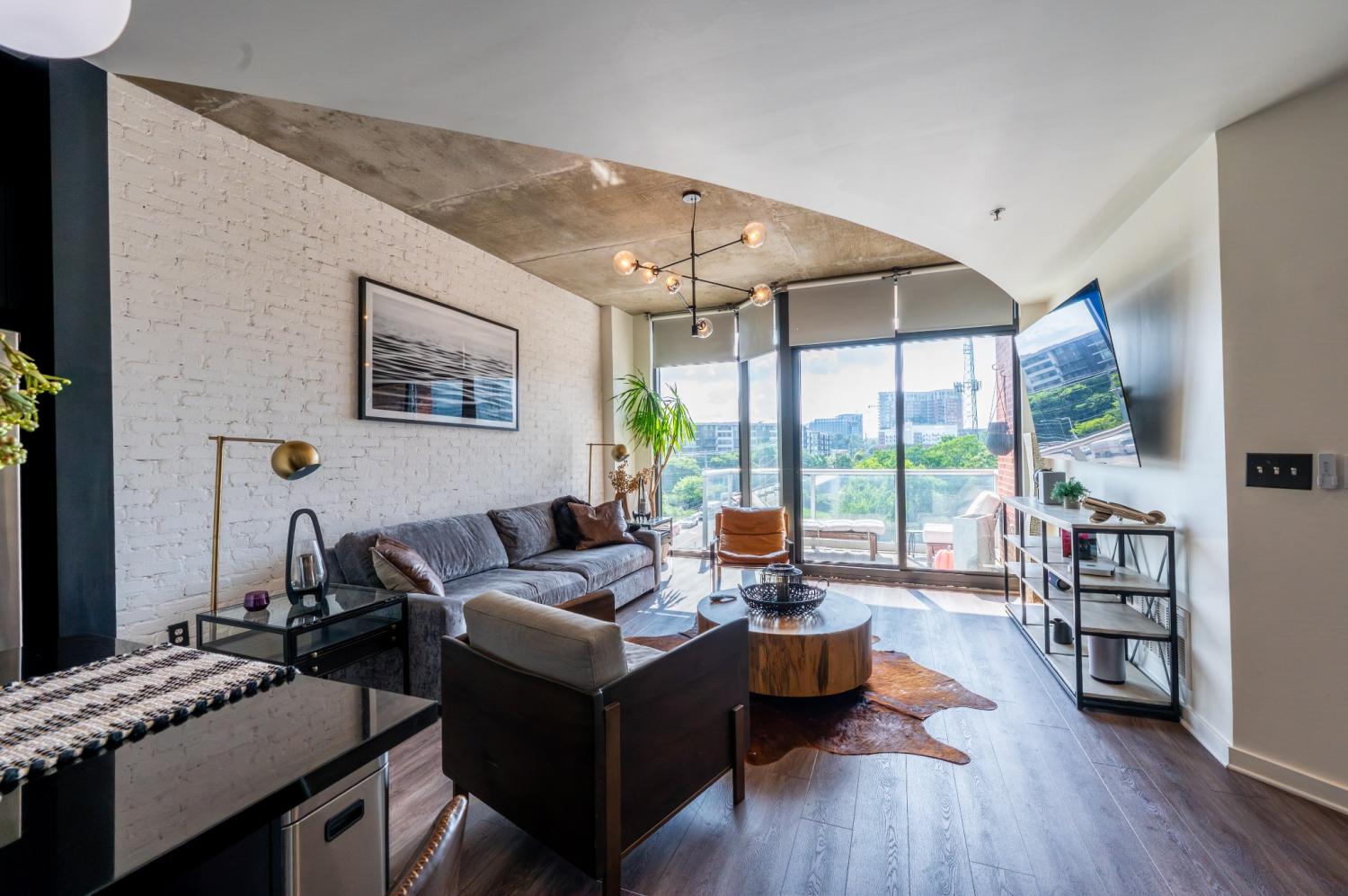Experience elevated urban living in this impeccably upgraded residence, ideally located in the heart of Nashville’s iconic Gulch neighborhood. Perfect as a luxurious personal retreat or a high-performing investment, this unit boasts premium finishes and standout features throughout. Highlights include same-floor parking, rich hardwood flooring, a striking custom white plaster smear brick accent wall, fluted bedroom feature wall, and whole-home water filtration system with water softener. Enjoy the convenience of automatic shades, upgraded lighting and hardware, a sleek Tofu faucet, custom wine bar built-in with wine fridge, and a thoughtfully designed closet build-out. The kitchen and island have been tastefully modernized, and a new washer/dryer set is included. Take in sweeping Gulch views and enjoy unmatched walkability to Nashville’s finest dining, shopping, and nightlife—this is high-end city living at its best.