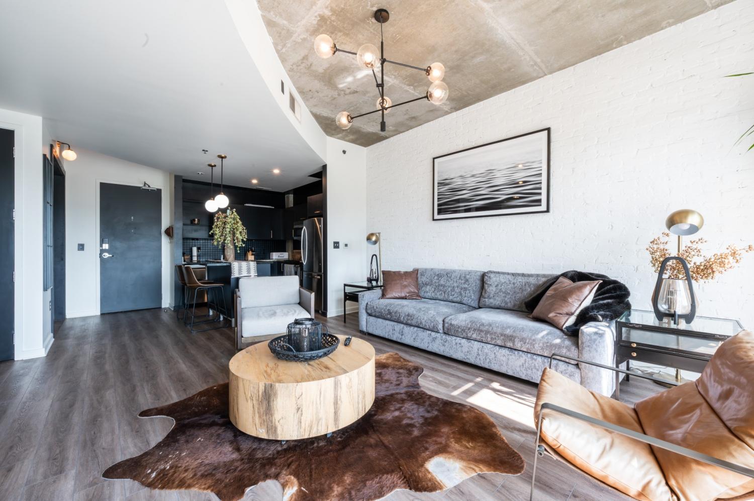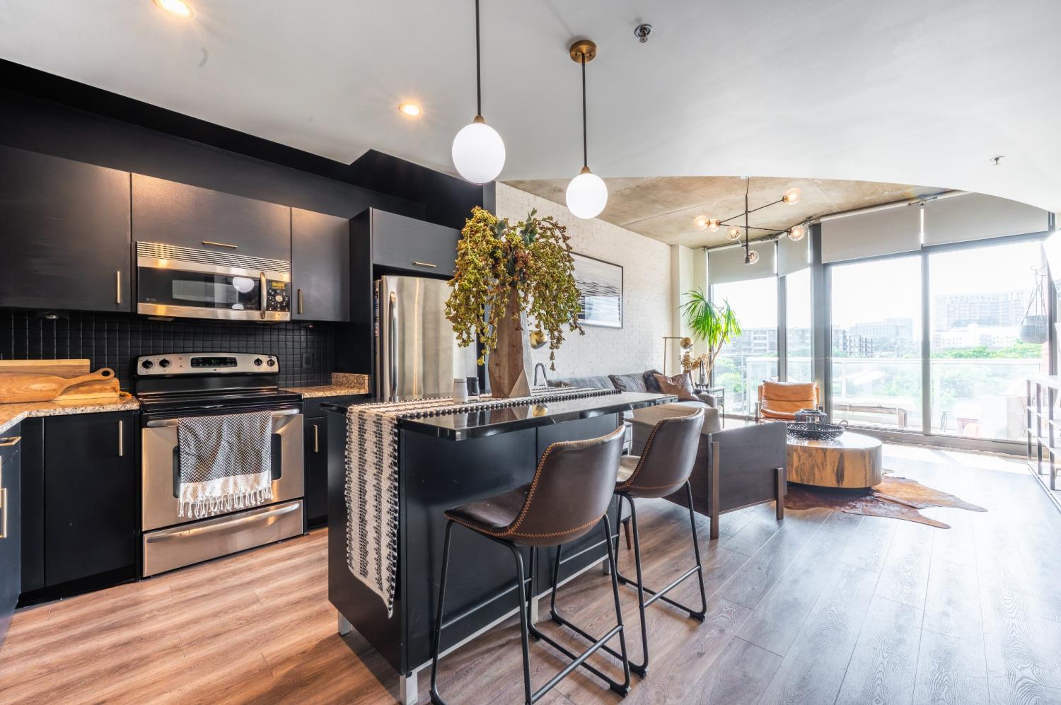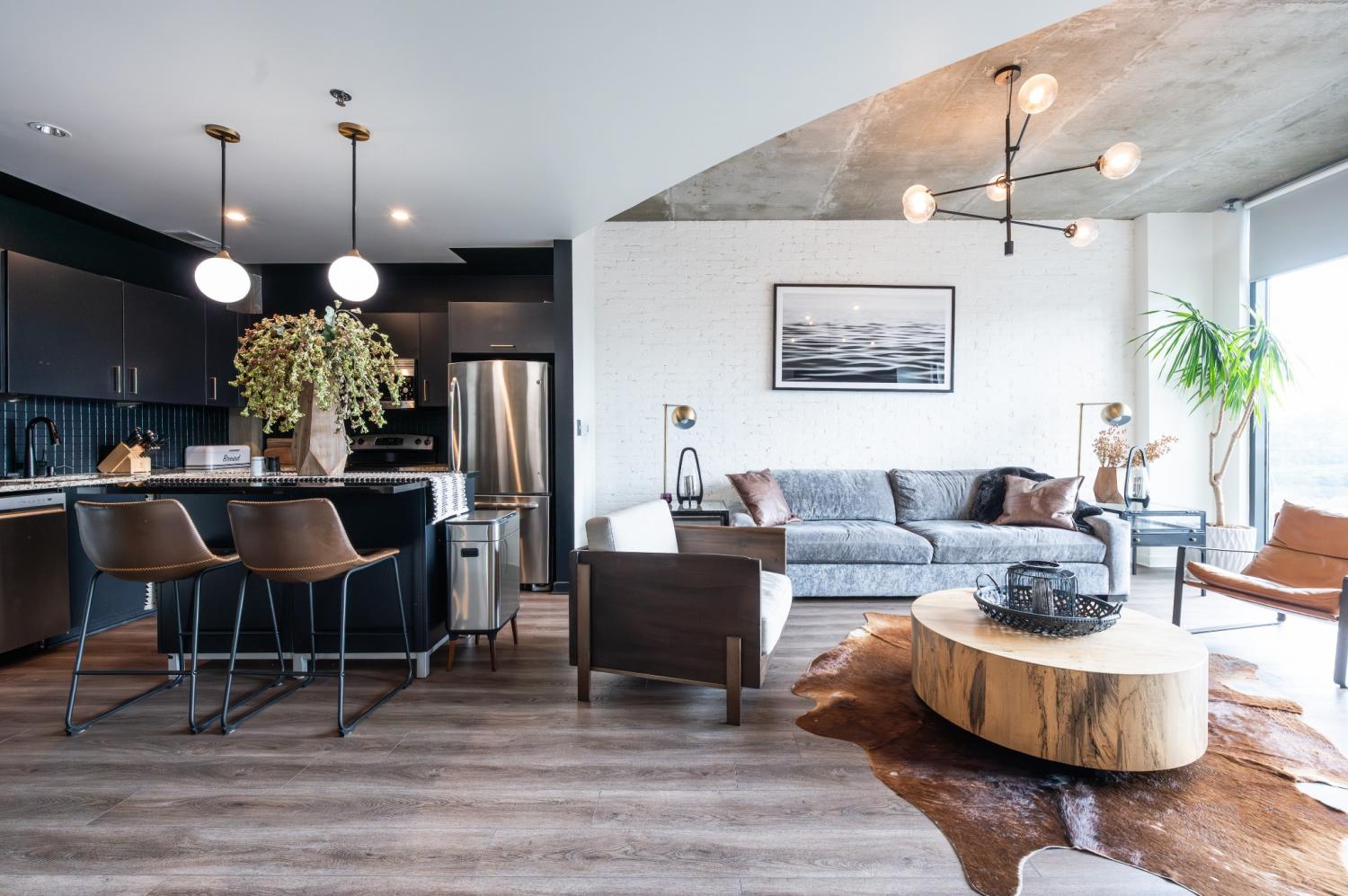 Experience elevated urban living in this impeccably upgraded residence, ideally located in the heart of Nashville’s iconic Gulch neighborhood. Perfect as a luxurious personal retreat or a high-performing investment, this unit boasts premium finishes and standout features throughout. Highlights include same-floor parking, rich hardwood flooring, a striking custom white plaster smear brick accent wall, fluted bedroom feature wall, and whole-home water filtration system with water softener. Enjoy the convenience of automatic shades, upgraded lighting and hardware, a sleek Tofu faucet, custom wine bar built-in with wine fridge, and a thoughtfully designed closet build-out. The kitchen and island have been tastefully modernized, and a new washer/dryer set is included. Take in sweeping Gulch views and enjoy unmatched walkability to Nashville’s finest dining, shopping, and nightlife—this is high-end city living at its best.