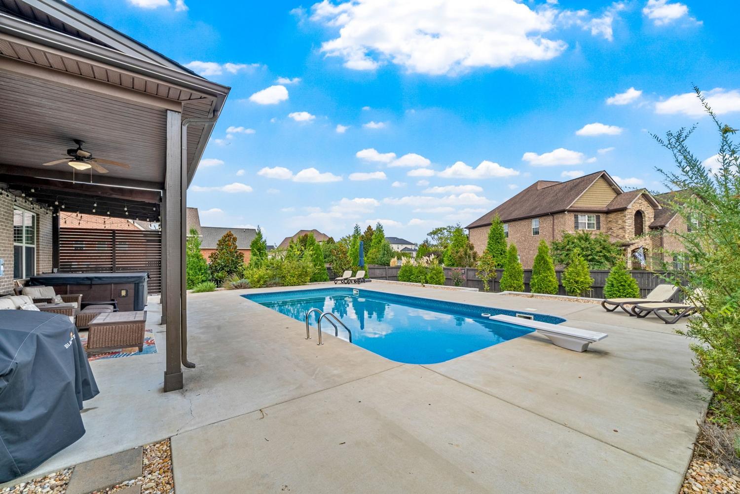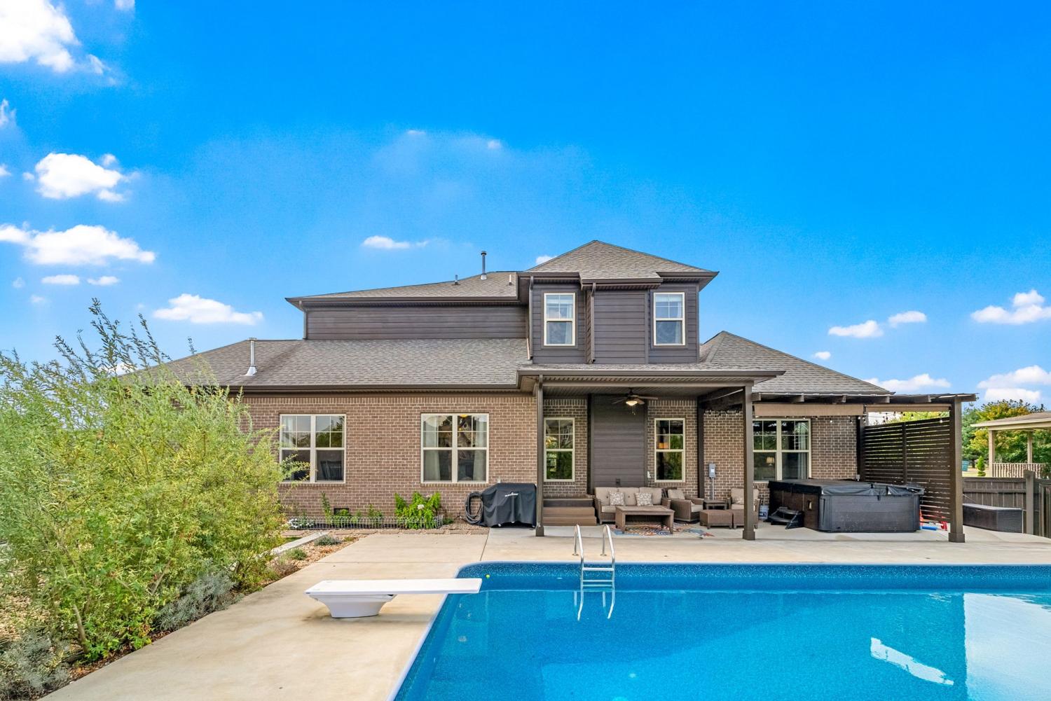 Experience luxury living in a family-friendly subdivision, nestled in one of the area’s most sought-after neighborhoods with sidewalks and underground utilities. This beautifully appointed 4-bedroom, 3.5-bath home is situated on a premium corner lot and offers an ideal blend of elegance and comfort. The primary suite is on the main level featuring a private ensuite with double vanity, walk in shower, and relaxing soaking tub. Upstairs you'll find three additional bedrooms, two full bathrooms, and a raised bonus room—perfect for a media space, home office, or playroom. The open kitchen includes both a casual breakfast room and a formal dining space, making entertaining effortless. A spacious 3-car garage with a carriage bay offers additional charm and functionality. Step into your backyard oasis complete with a covered patio, relaxing hot tub, and a beautifully landscaped pool—your personal paradise awaits. This home is the total package for luxury and lifestyle.