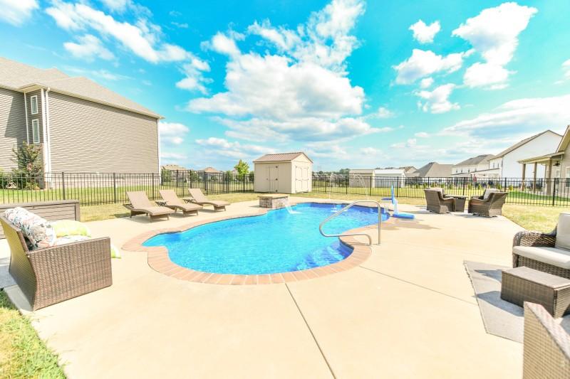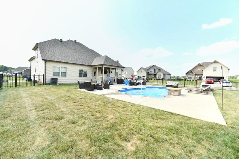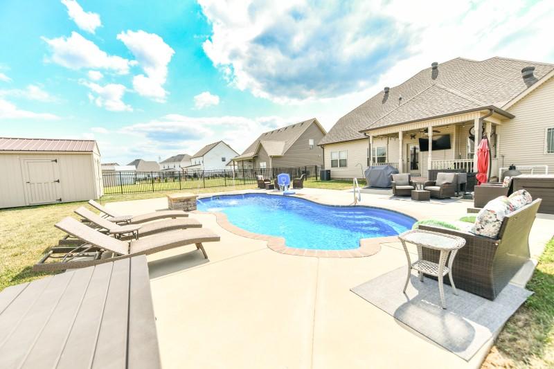 SELLER CONCESSIONS OFFERED! Welcome to your personal oasis in the highly sought-after Wellington Fields Subdivision, just minutes from Exit 8 and I-24 — and best of all, no city taxes! This beautifully maintained 4-bedroom, 3 full bath home is situated on a spacious corner lot and offers comfort, flexibility, and stylish living in one of Clarksville’s most desirable communities. Step inside to an open-concept living space featuring a cozy fireplace with a floating cedar mantel, a formal dining room or dedicated office, and a modern kitchen with soft-close cabinetry, stainless steel appliances—including a French door refrigerator—and plenty of prep space for the home chef. The layout is ideal for today’s lifestyle, with 2 bedrooms and 2 full baths on the main level, including a generous primary suite with a walk-in closet and private bath. Upstairs offers 2 more bedrooms, a full bath, and a large bonus room—perfect for guests, teens, or added living space. Enjoy your own private backyard retreat complete with a custom in-ground kidney-shaped pool, large storage shed, and a third driveway extension for added parking or recreational use. Wellington Fields is loved for its peaceful setting and community amenities, including a gazebo, playground, sidewalks, and streetlights. Zoned for the brand-new Kirkwood School Complex (Elementary, Middle & High School), this home offers long-term value and everyday convenience. Stylish, move-in ready, and loaded with upgrades—plus seller incentives available! Schedule your showing today!