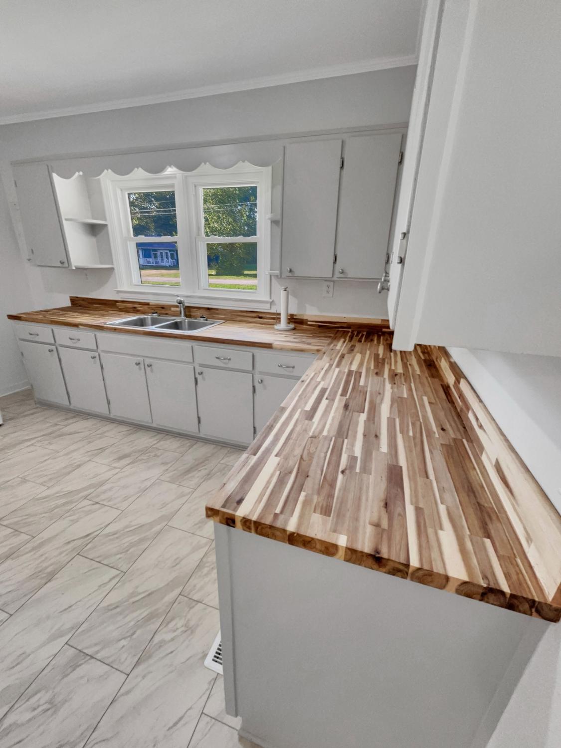 Come check out the charm that this 3 bedroom, 2-bathroom home has to offer! This home has been updated throughout! Both bathrooms have been completely renovated! You will be ready to use the kitchen with the brand-new butcher-block counters! Original hardwood floors still remain in some of the house. Other rooms have brand new flooring! It has a flat yard that is ready for entertainment. You get the best of both worlds with the location of this home! It is located slightly outside the city and is ready to be your new home! This home is all on one level!
