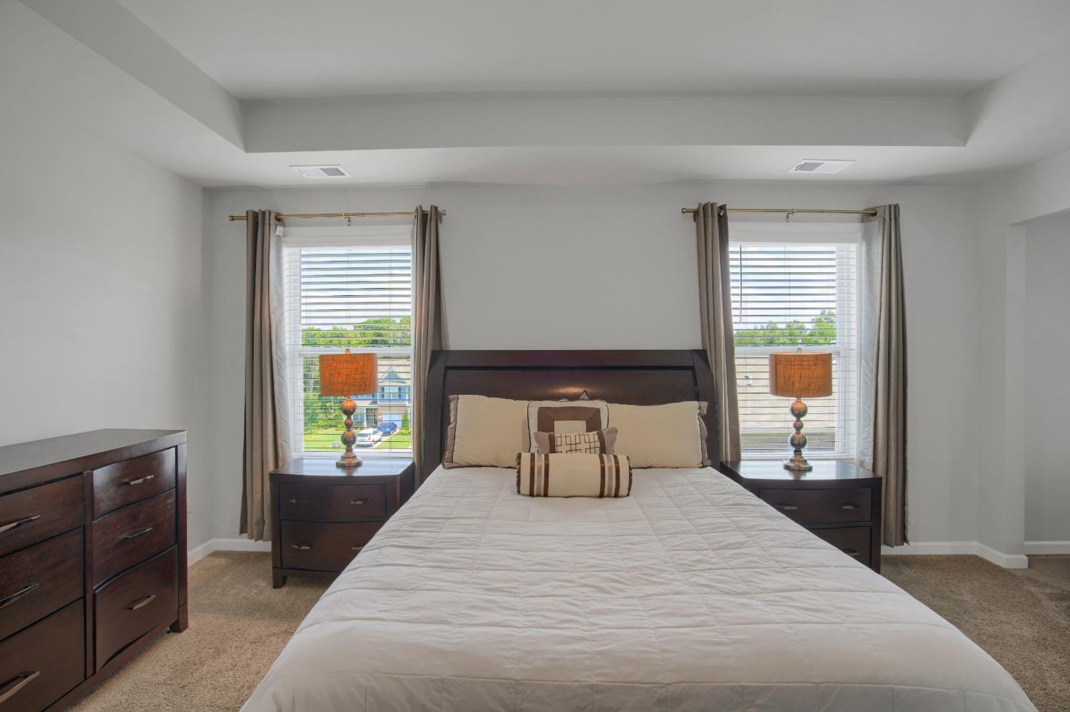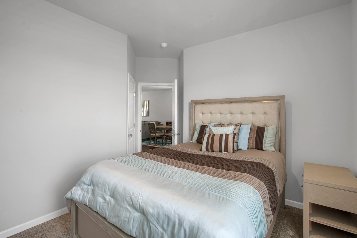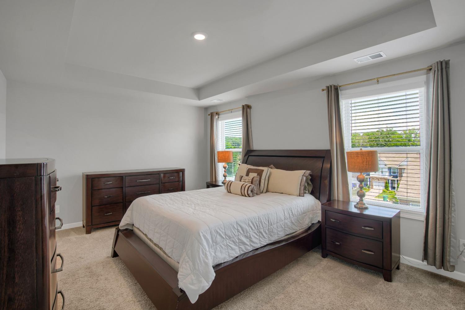 NEW Price! Beautifully maintained end-unit townhome built in 2020 still looks NEW! This spacious 4-bedroom, 3 full bath home offers modern living with smart home features including a programmable thermostat, smart lights, and smart locks. The main floor showcases engineered hardwood floors, a chef’s kitchen with granite countertops, tile backsplash, 5-burner gas stove, and refrigerator and bar stools that remain. The Master suite located upstairs has large enough that it has space for home office, flex area or currently being utilized as in-home theater room! Laundry conveniently located upstairs, pull down attic has extra storage. 4th BR on 1st floor ....makes perfect Mother-in-law suite, or spare room for overnight visitors. Enjoy the outdoors on the oversized 27'x8' private deck with privacy fence—perfect for entertaining. Additional highlights include Energy Star appliances and a convenient 1-car garage. HOA covers community pool, lawn maintenance, and trash pickup. Move-in ready and perfectly located!