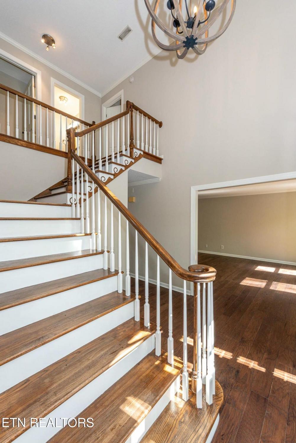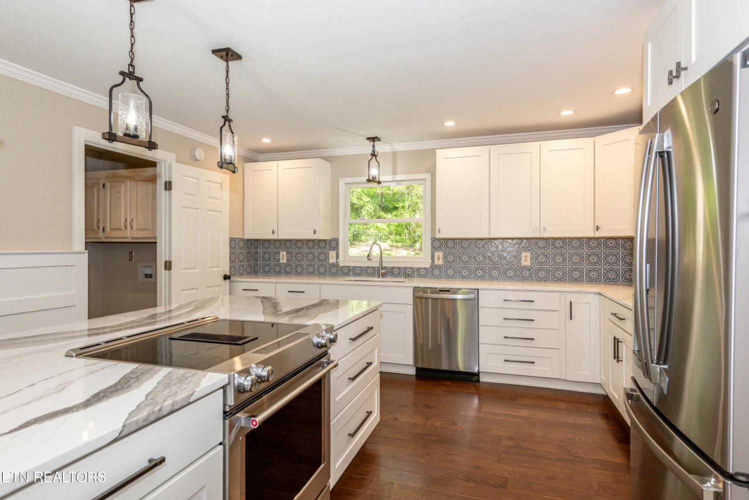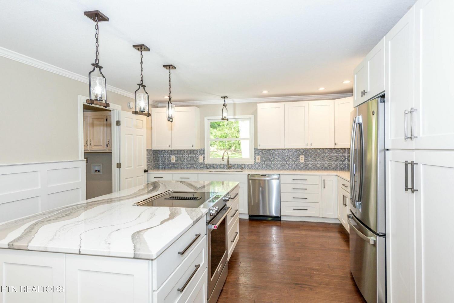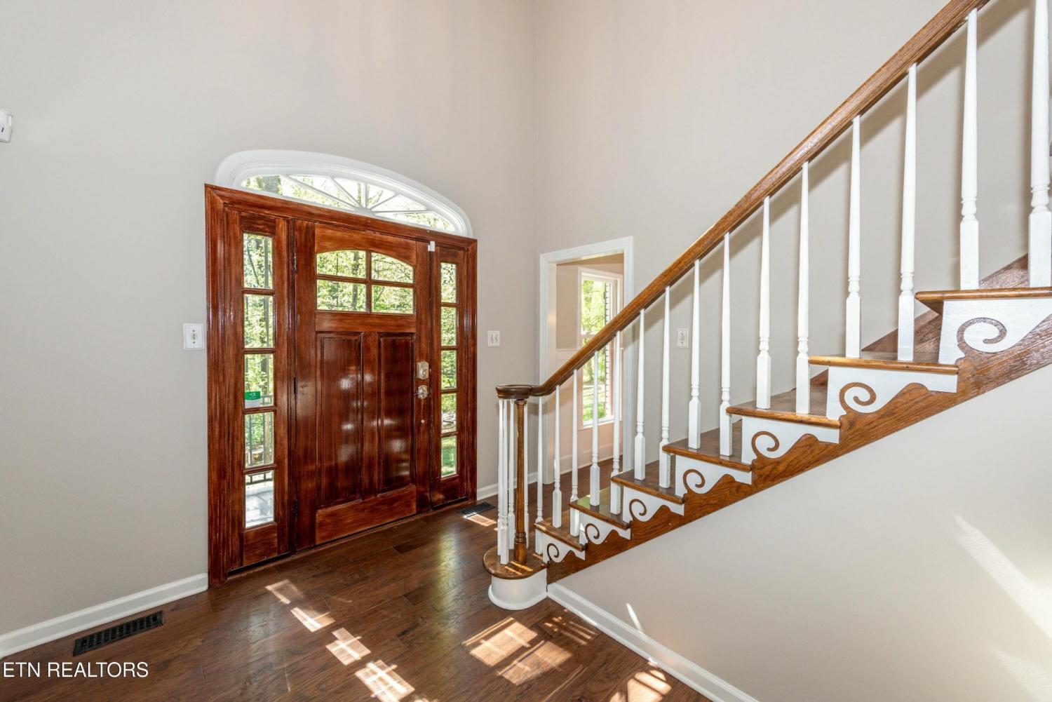 Wooded privacy on 2 acres in Maryville's sought after Westwood Subdivision. This 2 story basement brick home is awaiting new owners. Main level features engineered hardwood flooring throughout. Oversized living room features brick gas Fireplace and spaciousness for versatile use. Sunroom off of the living room gives all the natural light, cork flooring and its own mini split HVAC system. Gorgeous updated kitchen with white cabinetry, granite countertops, stainless steel appliances, and huge island with tons of storage on both sides and a breakfast bar. Laundry and half bath conveniently located just off the kitchen. Upstairs features three bedrooms including the Primary Suite complete with walk in closet and updated double vanity space. Primary Bath also features jetted tub and separate walk in shower. Basement level offers 2 rec rooms with luxury vinyl plank flooring with walk out convenience to lower covered patio. Basement level also offers 4th bedroom w/ large walk-in closet and full bath with nice tile walk-in shower. Most of the property is wooded for privacy and offers huge hardwoods making you feel like you're in the middle of the mountains. Convenient to the Maryville Greenway, local parks and walking distance to Foothills Elementary and Maryville Intermediate School
