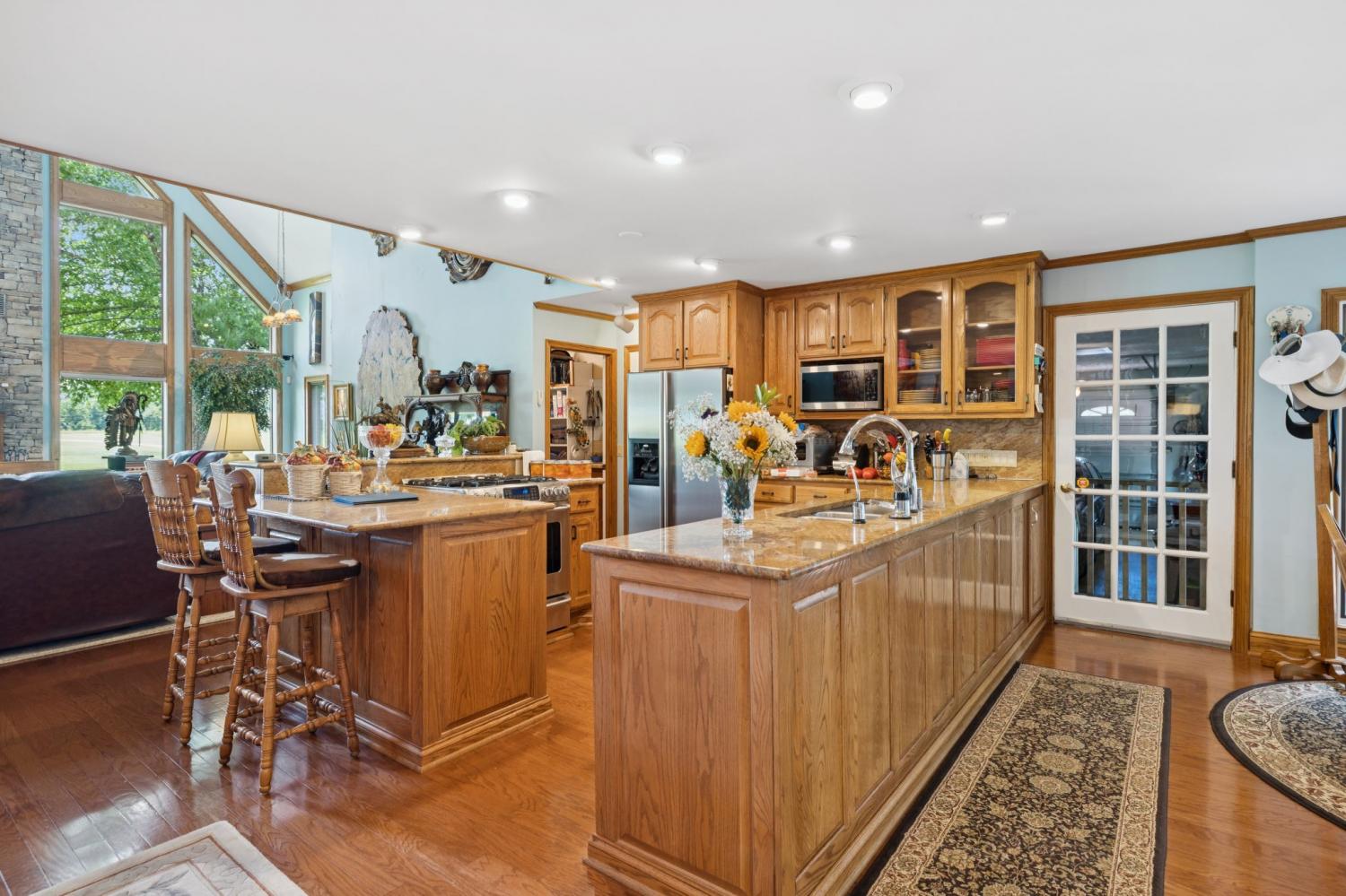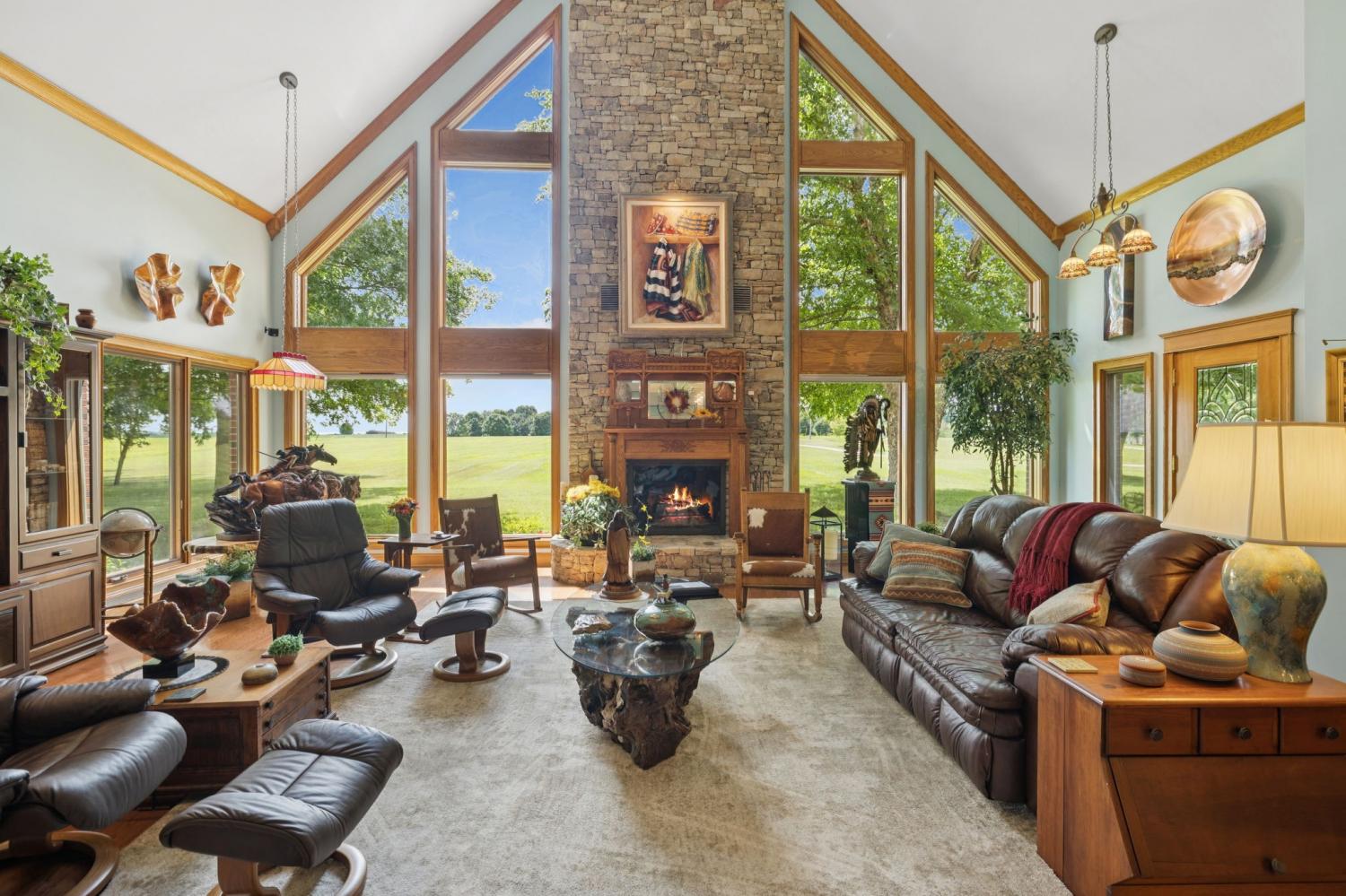 Welcome to a rare opportunity in the heart of Greenbrier, Tennessee including both 3225 and 3239 Pinson School Rd — a stunning 54+/- acre estate that combines luxurious living, thoughtful design, and functional farm amenities, all just 30 minutes north of Nashville. The main residence is a beautifully maintained 3,599 sq ft custom-built home from 1986, featuring timeless craftsmanship and modern updates. Step inside to find an open layout with hardwood floors throughout the main level, a soaring 28-foot stacked stone chimney, and panoramic views of the pasture through the front windows. Enjoy modern comforts like recessed lighting, Bose surround sound, and automatic roll shades for ease and ambiance. The kitchen is a chef’s dream with granite countertops, a gas range, and access to a screened-in porch designed for year-round enjoyment—complete with luxury vinyl plank flooring, a full bar (ice maker and fridge included), and a rain-protecting canopy. With two of the three HVAC units recently replaced, three gas heaters, and a whole-home gas generator, this home is well-equipped for comfort in every season. The oversized 2-car garage features 10-foot doors, built-in storage closets, attic access, a full-size fridge/freezer, and two wine coolers. The land itself is equally impressive. Fenced and cross-fenced, it features two serene ponds, a 40x24 pole barn, 40x60 barn shop, 15x60 equipment shed, and a converted 25x40 tobacco barn with porch—perfect for hay storage or gatherings overlooking rolling pastures. Also included are a 1,578 sq ft ranch-style home, a 40x30 shop, and a mobile home, offering multiple opportunities for guest housing, leasing income, or multi-generational living. Surrounded by woods and gently rolling hills, this property offers privacy, peace, and quintessential Tennessee beauty. Whether you're dreaming of a private estate, working farm, or family compound, this is a property that truly delivers. Buyer to verify all pertinent information!