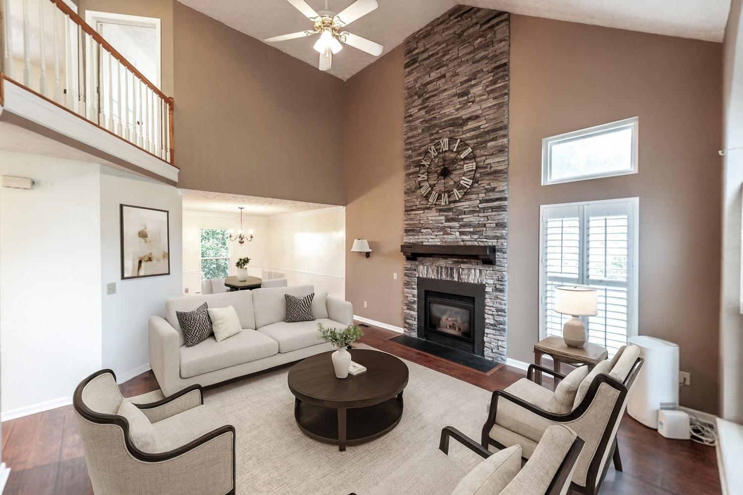 NO HOA! Located in the desirable Riverchase subdivision, this beautiful all-brick 4-bedroom, 2.5-bath home offers 2,550 sq ft of comfortable living space. Step inside to a two-story open living room with a stacked stone fireplace that sets the perfect tone for relaxing or entertaining. The spacious bonus room over the garage offers flexibility for a media room, office, or playroom. The well-designed kitchen and dining areas flow seamlessly for easy everyday living. Upstairs, you’ll find generously sized bedrooms and plenty of storage throughout. Enjoy the outdoors from the large covered back deck overlooking a private backyard, complete with a storage building for your tools and hobbies. A two-car garage provides even more storage and convenience. With no HOA, you’ll have the freedom to make this home truly yours. Conveniently located just minutes from shopping, dining, schools, and major roadways, this property combines the best of suburban living with quick access to all that Hendersonville offers. Let's make this home yours today, give me a call for your private showing. Concessions are being offered with a reasonable offer, could possibly buy the rate down. We have some lenders that can help with the rate buy down. The kitchen booth is not mounted and can be removed.