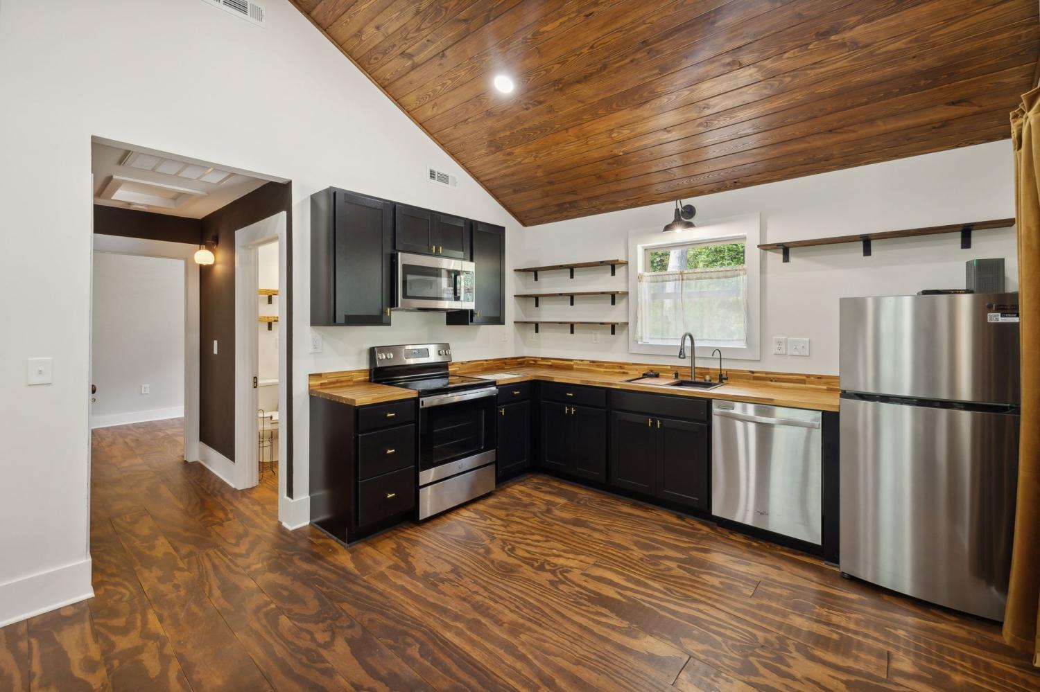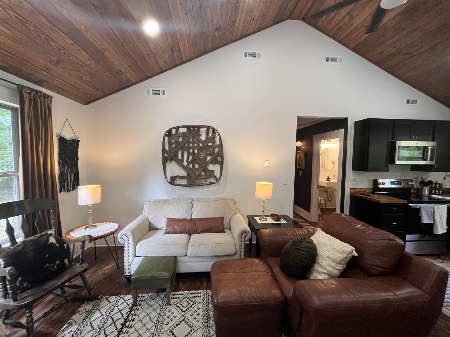 Adorable Custom Build Cabin nestled on 5+ wooded acres with a covered front porch to enjoy nature. Two spacious bedrooms. Full Bathroom w/ shower/combo & single vanity with Japanese kiln firewood for towel wall in bathroom. An open floor concept with handmade planked wood floors with a multifunctional sink the kitchen with filtered drinking water, new SS appliances, soft close kitchen drawers with a good size pantry with solid wood doors ,a smart thermostat and an on-demand tankless water heater also Hookups for a stackable washer & dryer. Keyless entry, Ceiling fans in all rooms, Several state parks close by, offer hiking trails (Savage Gulf, South Cumberland State Park), and waterfalls (Greeter and Laurel Falls), with picnic facilities and camping.25 mins to Caverns Music Venue,20 mins to Monteagle and 45 mins from Chattanooga, 1.5hr to Nashville. Private entrance w/ lots of trees and privacy very close to town for shopping and eating. Great for a short term rental!