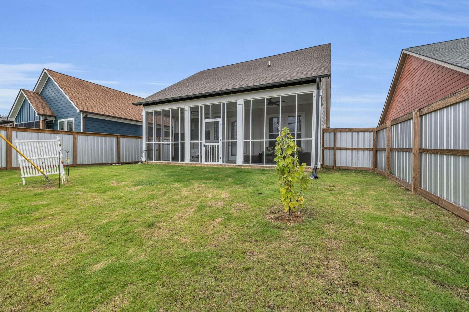 The chef's kitchen is a true showpiece, boasting custom cabinetry to the ceiling with soft-close, dovetail drawers and doors, an oversized leathered granite island, WiFi-capable stainless steel appliances, a built-in microwave, LED under-cabinet lighting, a custom tile backsplash to the ceiling, and an upgraded kitchen sink with garbage disposal. The large walk-in pantry provides ample storage. Throughout the home, you'll enjoy custom luxury vinyl plank flooring, crown molding, transom windows, window blinds, LED lighting, and remote-controlled ceiling fans in every room. The primary suite offers a custom tile shower and a walk-in closet with built-ins, while the oversized laundry room includes additional custom cabinetry for convenience. Other standout features include a Ring Doorbell, custom oversized gutters and downspouts, huge screened porch, custom 2'' blinds, fenced backyard and a high-efficiency upgraded YORK HVAC system. This home definitely has better upgrades and features than new construction homes in the development. This is your chance to own a fully upgraded, move-in ready home in one of the most desirable new communities in the North Georgia / Chattanooga area. Don't miss out—schedule your private showing today!
