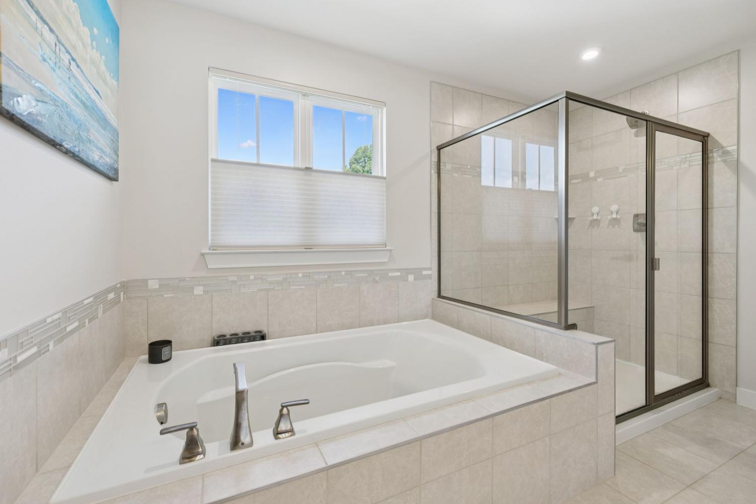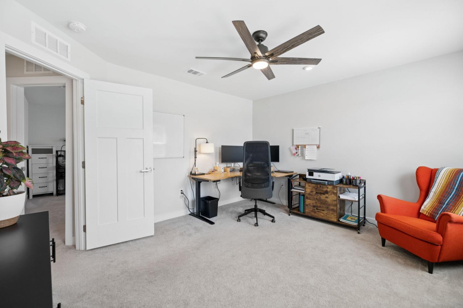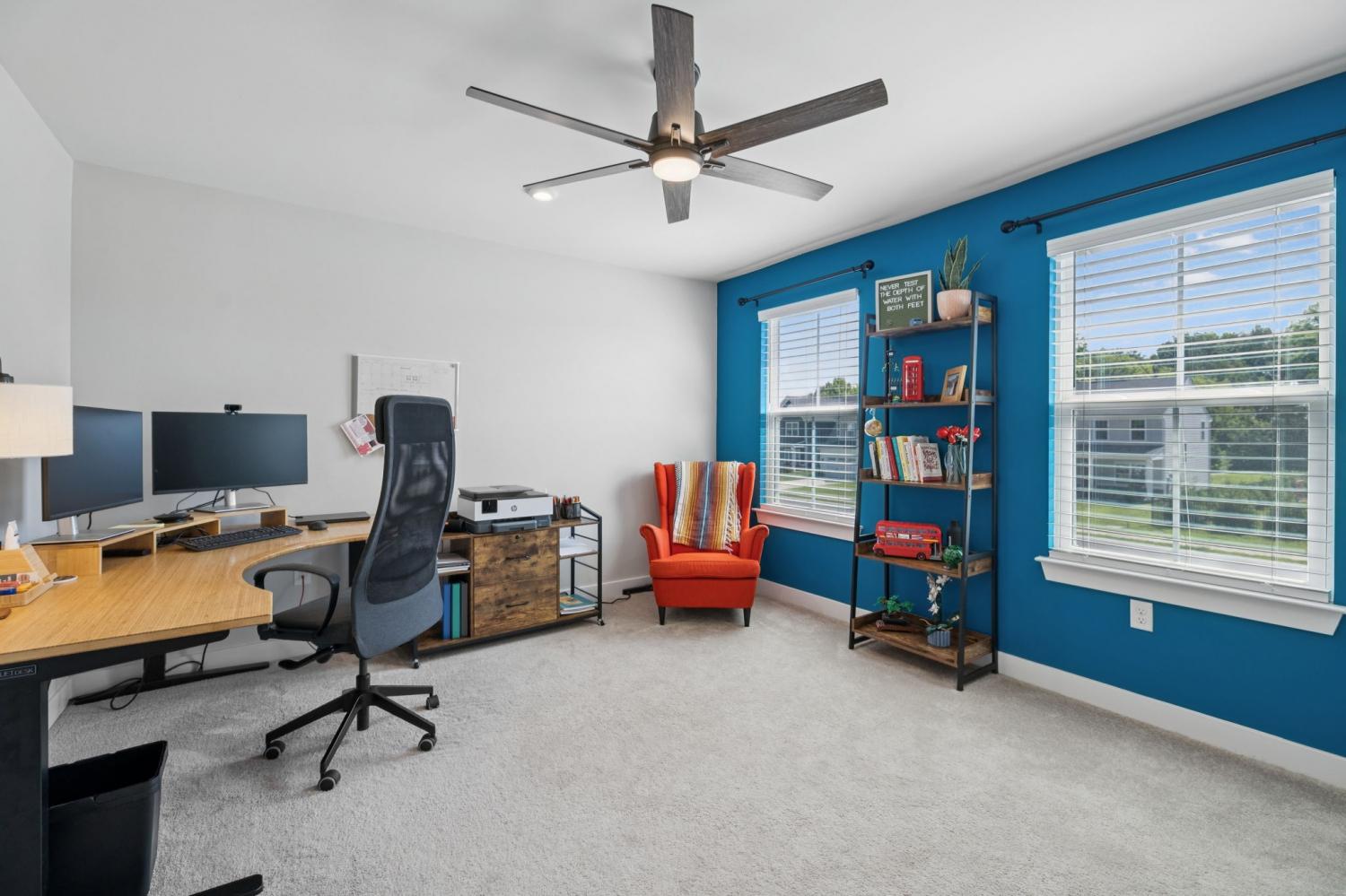 Enjoy the amazing amount of space and storage in this 4 bedroom, 3.5 bathroom, 3 car garage home. This beauty has all the upgrades; quartz counter tops in the kitchen with double ovens, large owner's suite with two walk-in closets and an ensuite with a soaking tub and separate upgraded shower, whole house water treatment system, additional office and flex living area, a spacious loft area on the second floor, covered back porch with remote screen, fenced back yard, third bay garage, extra wide concrete drive, stone accents at the front elevation and full front porch.