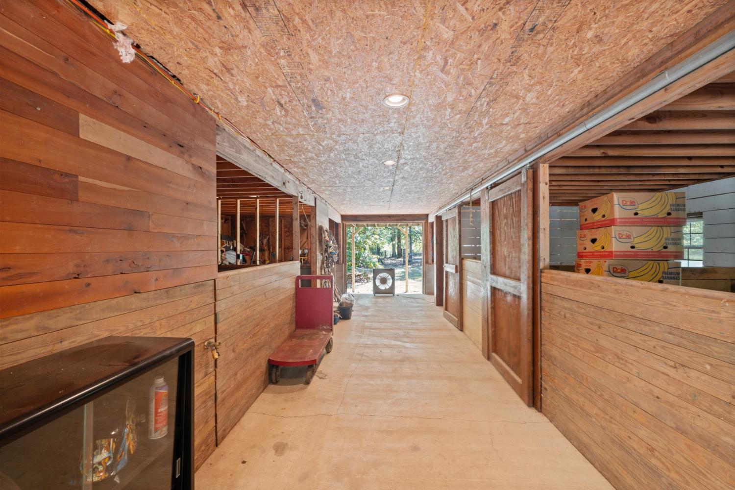 Escape to the serene beauty of this stunning 16.33-acre property in Nunnelly, TN, where tranquility meets opportunity. This expansive property is fully fenced and cross-fenced, offering several lush pastures, abundant with deer and other wildlife, perfect for grazing, gazing, or recreation. With two barns boasting a total of 5-6 stalls, it’s an ideal setup for equestrian enthusiasts. Nature lovers will appreciate the two ponds on the property, perfect for a relaxing afternoon by the water. Adding to the private charm, this property has a unique history as a bar, complete with an existing beer license, opening the door to a myriad of possibilities. Whether you envision operating the bar, transforming it into a horse farm or boarding facility, or creating a cozy, private vacation rental or event center, the potential is limitless. The bar layout includes two half baths, a kitchen, and a large open area that’s ripe for customization. The HVAC is brand new, with newer roofing and gutters with guards. Outside is a nice, covered porch area. Behind/attached to the bar, you’ll find a spacious bedroom with a full bath, along with a convenient laundry room w/ washer/dryer. The main barn features a well-designed 4-stall horse barn; the center floor and two areas of the barn are concrete, designed with functionality in mind. The barn includes designated areas for tack and washing, along with three stalls equipped with rubber mats, and a fourth stall ready for completion. Also, on the ground floor of the main barn, you'll discover a one-bedroom suite with a full bath. The upper floor of the barn features an unfinished level, which can be tailored to your preferences. Each upper floor end of the barn features decks that invite you to enjoy the panoramic views of your serene surroundings. This property is more than just land; it’s a canvas for your dreams. Don’t miss the chance to make this tranquil retreat your own!