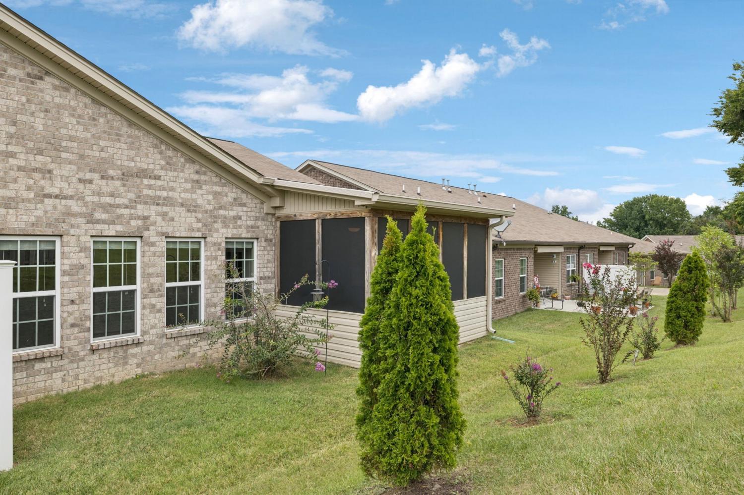 Welcome to easy living in the highly desirable The Cottages at Providence, a 55+ community just minutes from everything! This beautifully maintained all brick home offers 2 bedrooms and 2 full bathrooms, hardwood floors throughout, granite countertops, an electric cooktop, and a convenient pantry in the kitchen. Enjoy high ceilings, an open floor plan that includes a spacious sunroom filled with natural light and French doors. Directly off the sunroom is a screened porch for relaxing outdoors. The primary suite includes a large closet. Window coverings on all the windows provide comfort and style throughout. Additional features include a two-car garage, storm door, ceiling fans and plenty of storage. Community amenities include a resort style pool, playground area and walking trails. Located just 4 minutes to Providence Shopping Center and 5 minutes to I-40, this home offers the perfect blend of convenience and low maintenance living!