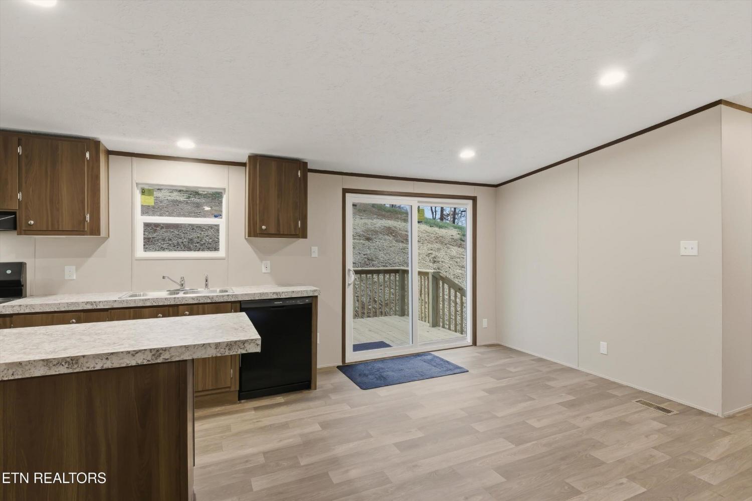 Discover your chance to own a brand new TRU Thrill model home on Short Street in LaFollette, TN, offering 1,568 sq ft of modern living with an open floor plan. The exterior features gray vinyl siding with dark shutters, giving this home timeless curb appeal. Large front windows fill the living area with natural light, creating a bright and inviting space. This home offers 3 bedrooms and 2 bathrooms, including a primary suite with an ensuite bathroom. The kitchen showcases a spacious island, plenty of storage and a dedicated dining area with French doors that lead outside. A utility room adds convenience with laundry and extra storage space. This home also features a front deck, a back deck, and an asphalt driveway! Call today for more information!