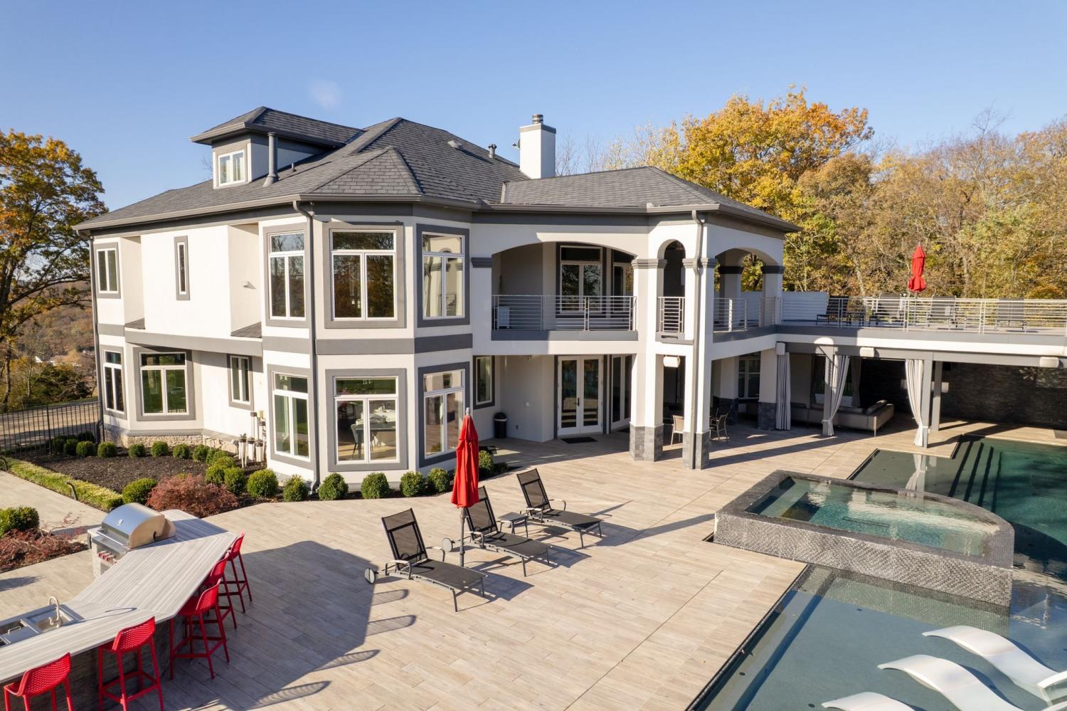 Welcome to your dream estate, a true entertainer's paradise nestled atop two coveted acres in the prestigious Oak Hill. Offering breathtaking views, this ultra-private haven delivers unparalleled indoor and outdoor living experiences, all while ensuring complete privacy. Significant renovations in 2023 have revitalized this home, introducing a modern kitchen, stunning walnut floors, and advanced home automation systems. Control smart lighting, audiovisual systems, and more with ease, either independently via controls in each room or via your smart device for seamless convenience. The backyard is anchored by a spectacular gunite pool and spa, featuring an infinity edge, waterfall, fire bowls, and a swim-up bar, creating a luxurious oasis. Adjacent is the incredible 2 story pool house, equipped with a full kitchen featuring Wolf/Sub Zero appliances. The first floor includes a bartender/server's well with a corner wall that opens directly to the swim-up bar, while the second story boasts a versatile game room or gym with its own powder room. Relax and unwind in a state-of-the-art 14-seat theater, curtain-lined for an immersive experience, complete with a full kitchen and bath. The primary suite serves as a serene retreat, offering direct access to a spacious balcony overlooking the pool, a cozy gas fireplace, separate closets with a dedicated washer/dryer, a steam shower, soaking tub, Cambria marble counters, and heated floors. With whole-home generators and extensive security features, this estate ensures ultimate peace of mind. Situated on a tranquil cul-de-sac and convient to downtown Nashville or Williamson County, this exquisite property must be experienced in person to fully appreciate its grandeur and offerings.