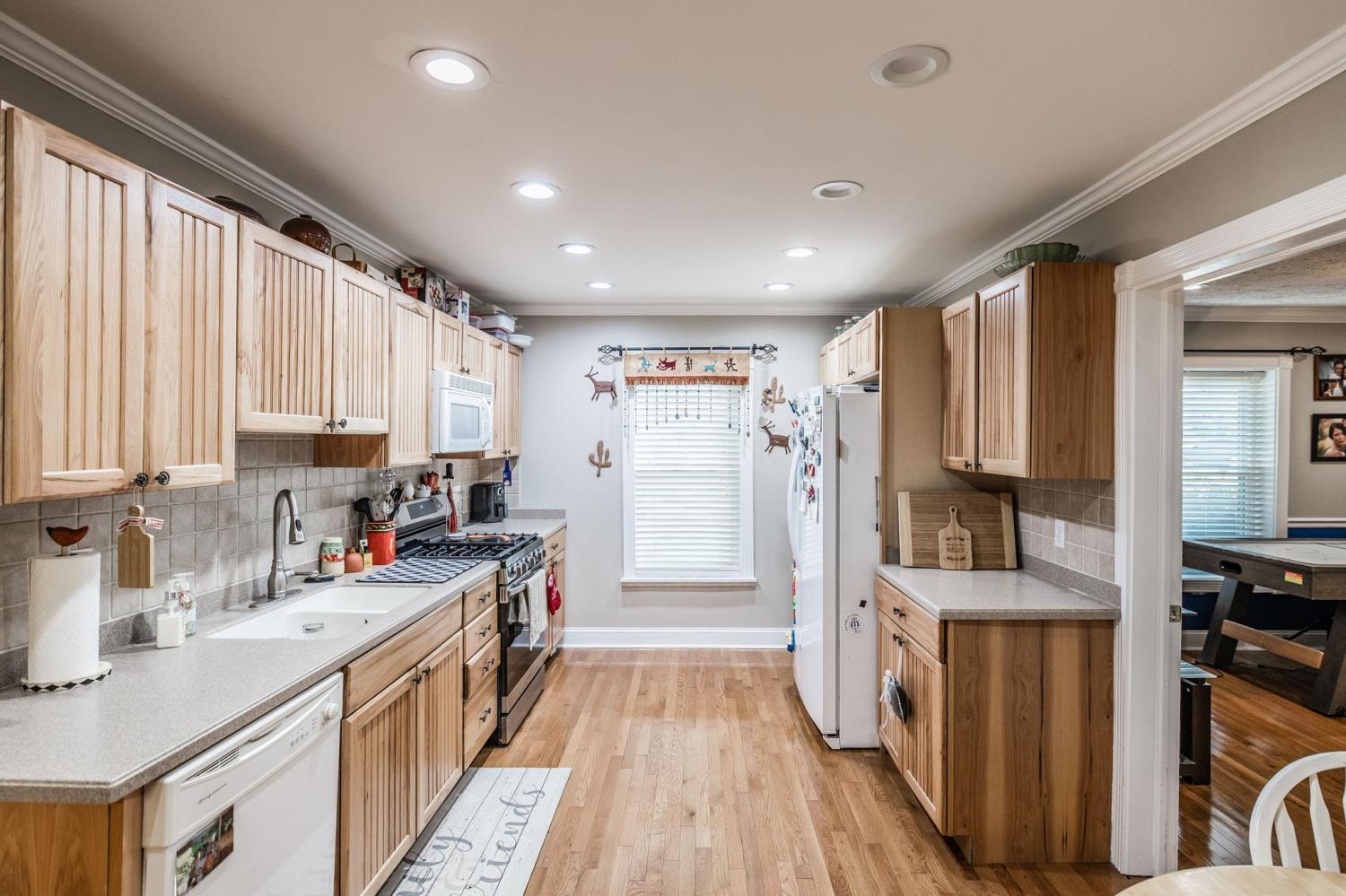 Nestled on nearly 2 serene acres, this beautifully updated home offers the tranquility of a county setting yet conveniently located not far off I65 . The expansive property features a large garage/workshop—perfect for car enthusiasts, hobbyists, or storing all your outdoor equipment and toys. The original home, built in 1927, was thoughtfully expanded in 1988 and completely renovated by the current owner, who took it down to the studs and updated both the electrical and plumbing systems. Step inside to discover a blend of classic charm and modern finishes, with hardwood and tile flooring throughout. The main-level primary suite is a private retreat, boasting a luxurious jetted shower, double vanities, and a spacious walk-in closet. Upstairs, two additional bedrooms share a full bath and both have walk-in closets. The heart of the home is the inviting kitchen—an ideal spot for family gatherings—featuring Corian countertops, hardwood floors, updated cabinetry with soft-close drawers, and a generous breakfast bar. A flexible room, with a closet, adapts to your needs, whether as a home office, guest space, or playroom. With its versatile layout, generous storage, and extensive upgrades, this property combines the charm of yesteryear with today’s comfort and functionality—all set in a peaceful, spacious location just minutes from the interstate. Don’t miss your chance to make this one-of-a-kind home yours!