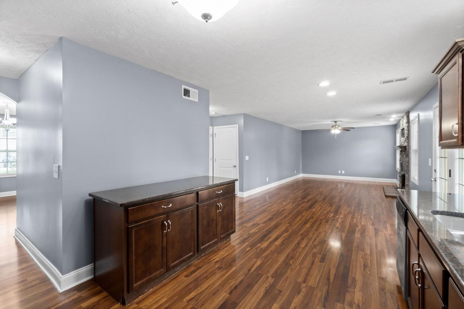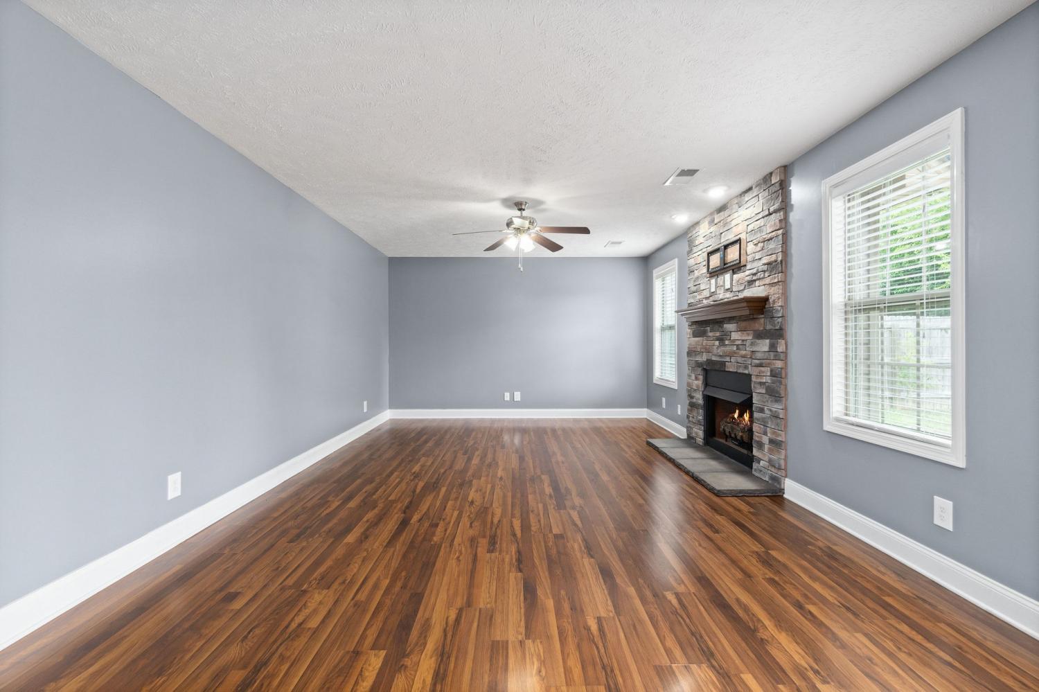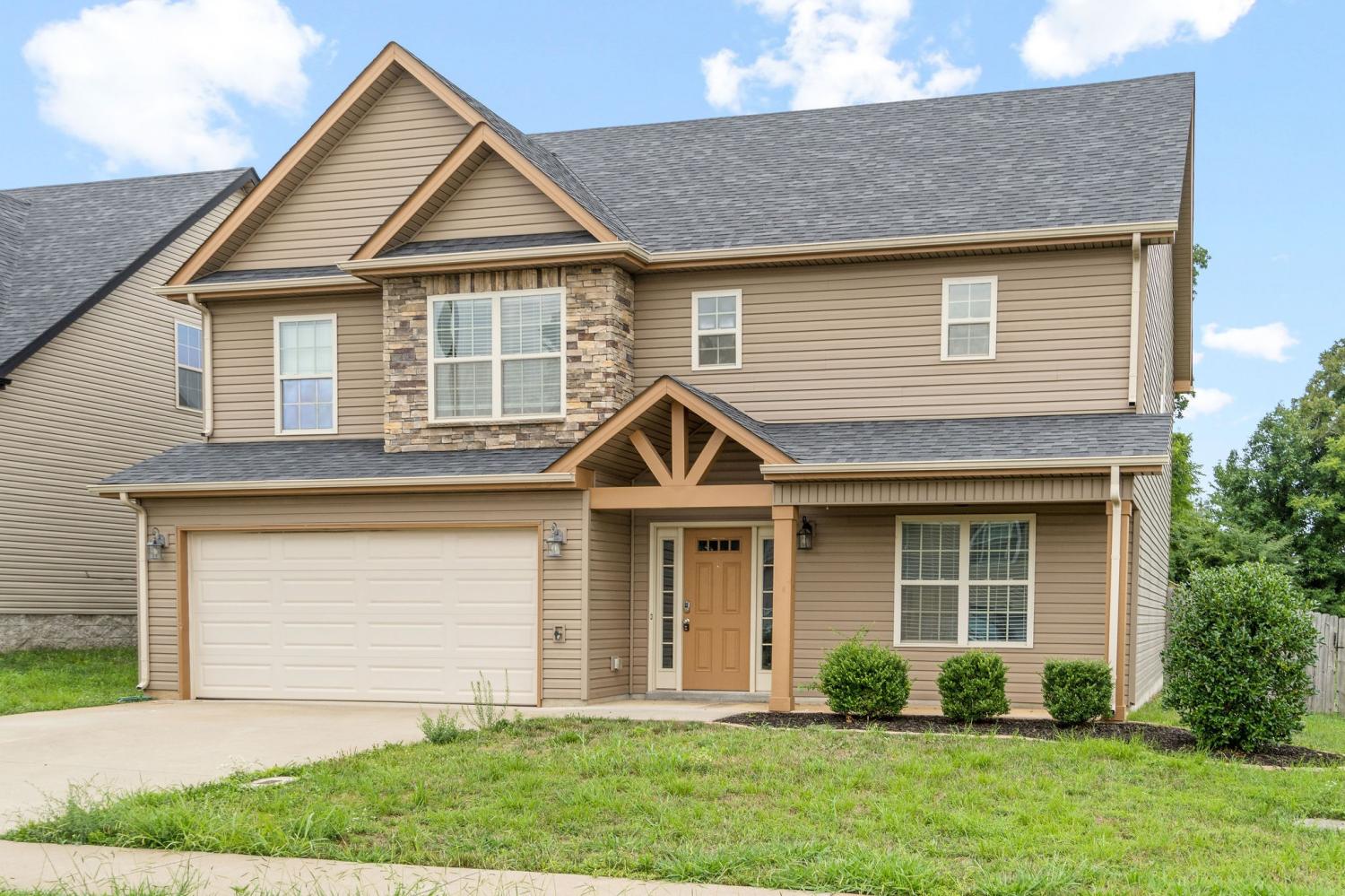Spectacular four bedroom home in Eagles Bluff! Conveniently located just minutes from restaurants, shopping, i24 and more, this home has been beautifully maintained and features laminate flooring throughout the main living space, large formal dining, spacious eat in kitchen with granite counters and stainless steel appliances, huge living room with stacked stone fireplace, oversized primary suite with full bath, generously sized guest rooms, two car garage, covered patio and great fenced yard! Pet rent applicable.