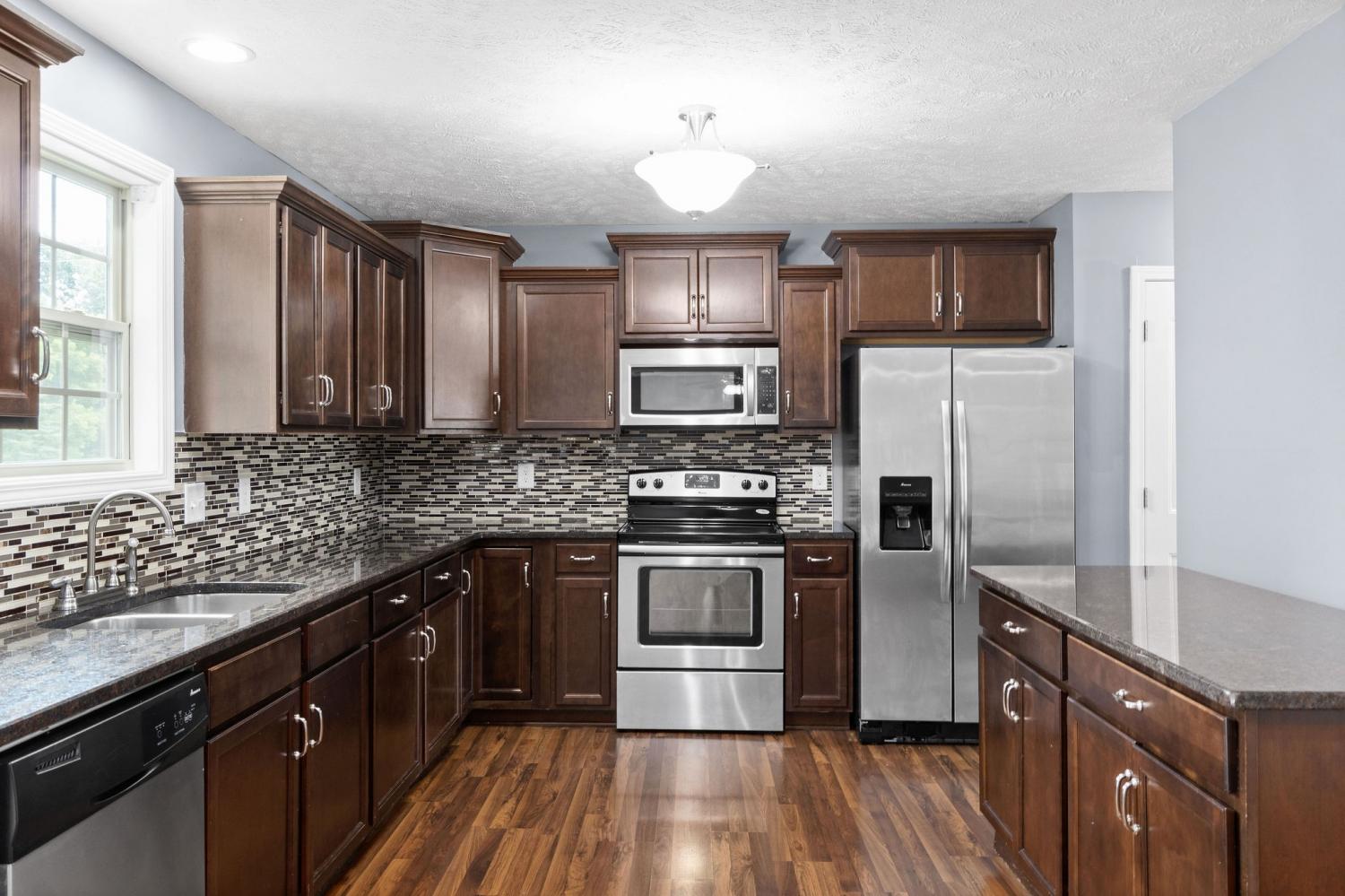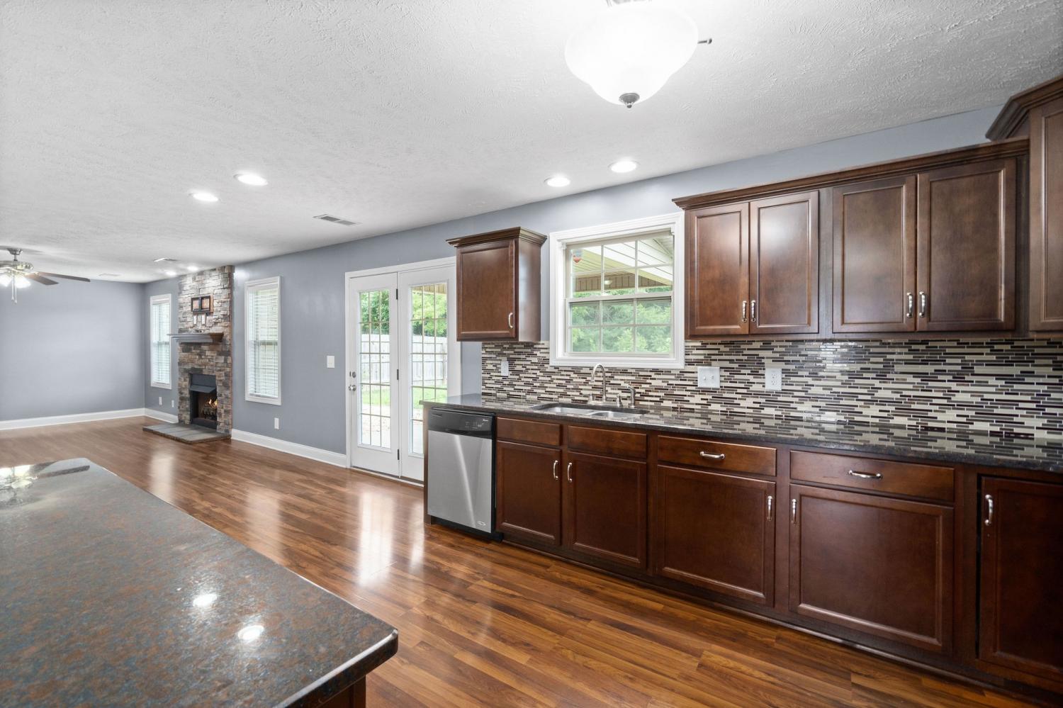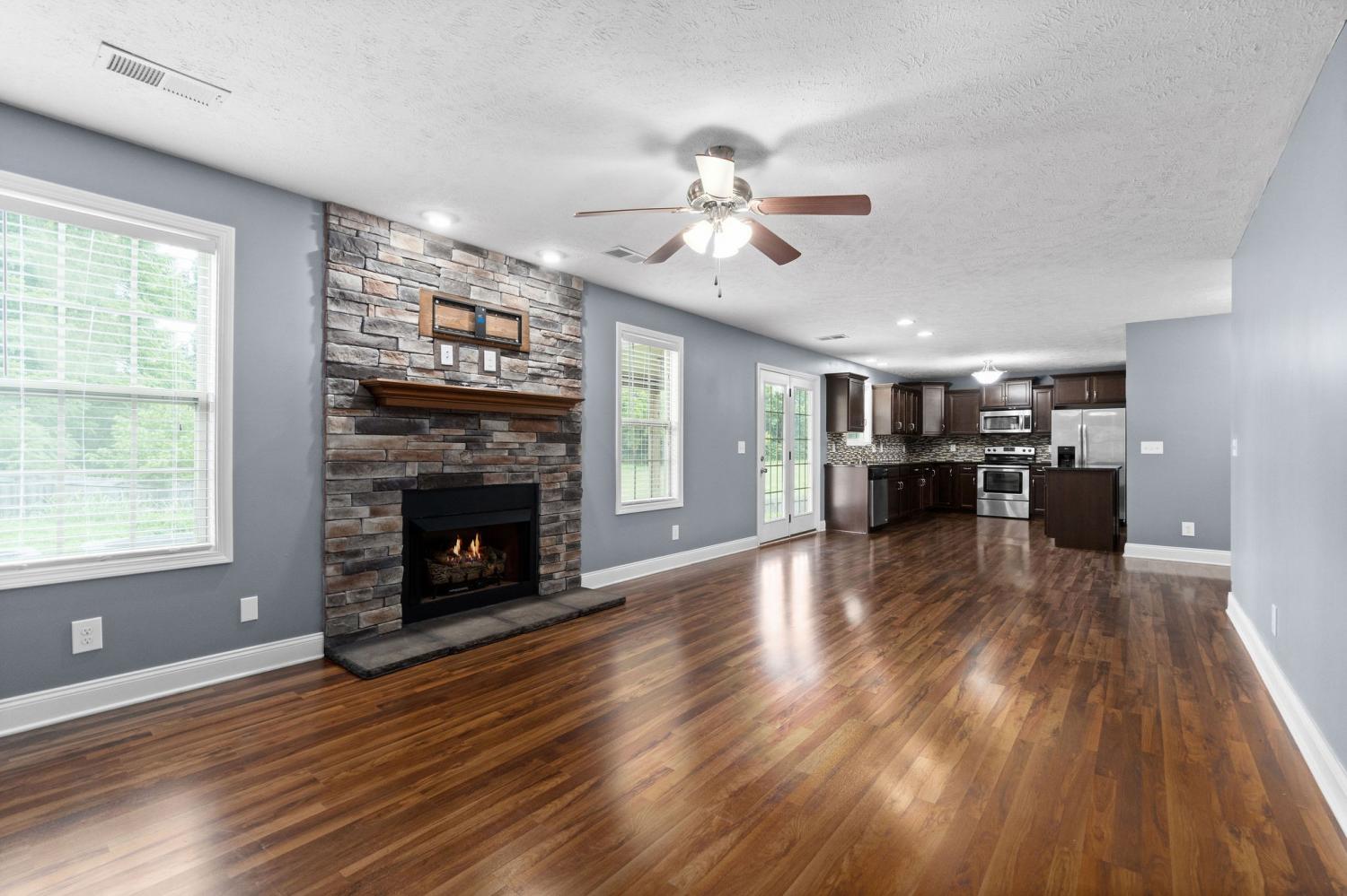 Spectacular four bedroom home in Eagles Bluff! Conveniently located just minutes from restaurants, shopping, i24 and more, this home has been beautifully maintained and features laminate flooring throughout the main living space, large formal dining, spacious eat in kitchen with granite counters and stainless steel appliances, huge living room with stacked stone fireplace, oversized primary suite with full bath, generously sized guest rooms, two car garage, covered patio and great fenced yard! Pet rent applicable.