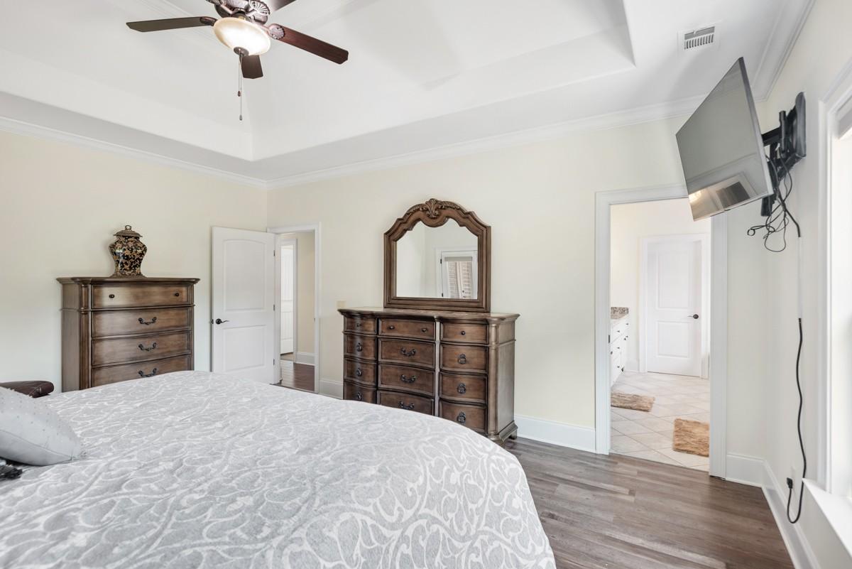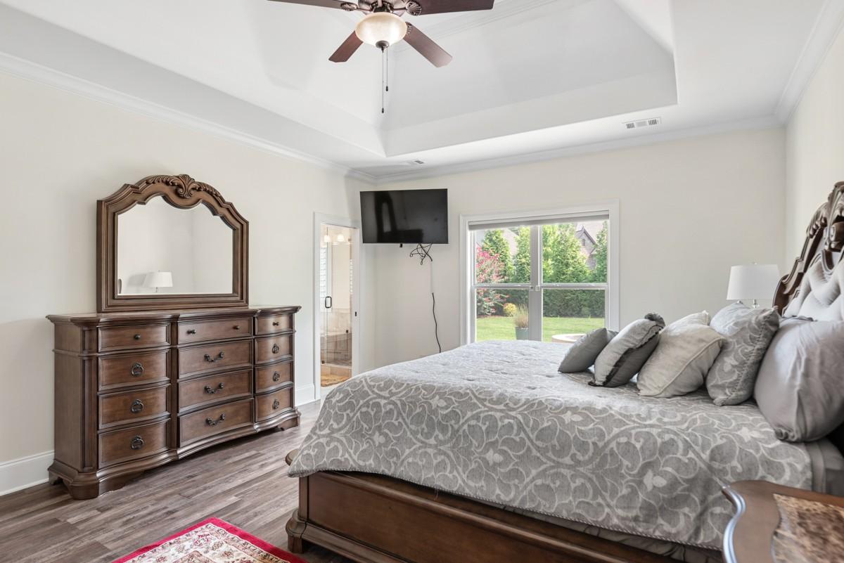 Exquisite Custom Home in Gated Gracie Lake at Fairvue Plantation Nestled in the prestigious, gated community of Gracie Lake at Fairvue Plantation, this beautifully maintained custom-built home offers an exceptional blend of elegance, comfort, and lifestyle. Boasting professional landscaping, a private fenced backyard, and serene lake and golf course views, this property is truly a rare gem. Step inside to discover quality craftsmanship throughout, featuring plantation shutters, hardwood floors, fresh professional paint (walls, doors & trim), and a spacious open floor plan with all bedrooms conveniently located on the main level. The chef’s kitchen is equipped with granite countertops, gas cooktop, island, ample drawer storage, and a walk-in pantry, making it as functional as it is stylish. The inviting living area centers around a cozy fireplace, while the screened-in porch—accessible from both the living room and the owner’s suite—offers a perfect space to relax and enjoy the views. The large bonus room upstairs includes an additional unfinished room, ideal for a future office, gym, or guest suite. An oversized garage and smart irrigation system add to the home’s convenience and efficiency. Residents have the option to join Fairvue and Foxland Country Clubs, each offering separate pools, fitness centers, and upscale amenities. This move-in ready home is a rare opportunity in one of the area's most sought-after communities.
