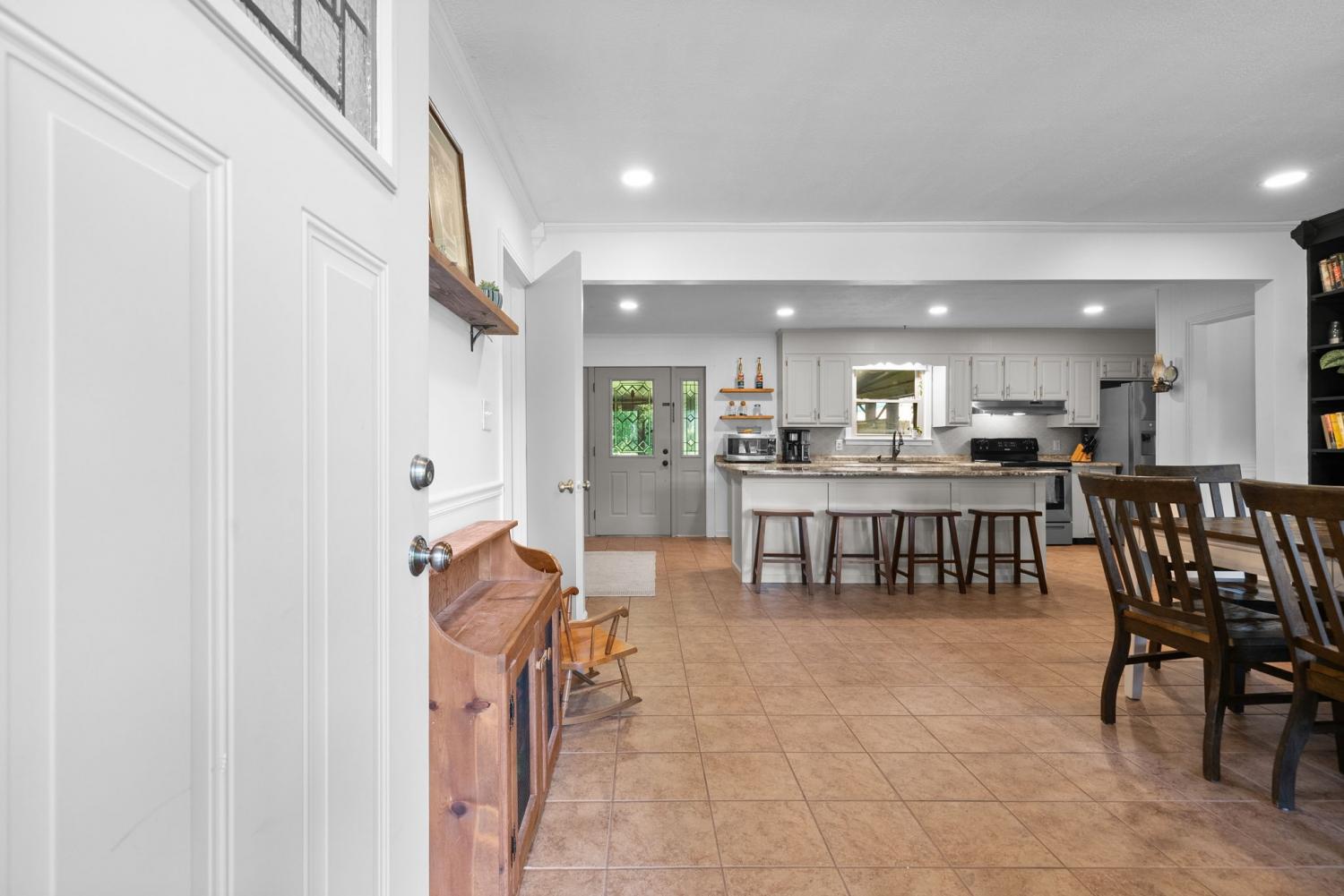 VA assumable loan at 2.625%! Beautiful remodeled all-brick ranch situated on 5.3 acres, featuring a 35x55 fully insulated detached garage/workshop and two story barn, both equipped with electricity. This stunning property is a dream come true, equipped with its own private pond. Inside, you'll find stunning hardwood floors, a mix of original charm and recent updates, including paint, modern light fixtures, and a brand new primary en-suite with full tile shower, soaker tub, dual shower heads, double vanities, and spacious his and hers closets. The kitchen features beautifully painted cabinets and tons of cabinetry. Ample storage and built ins throughout. You do not want to miss this opportunity to own your own slice of paradise. Schedule your showing today!