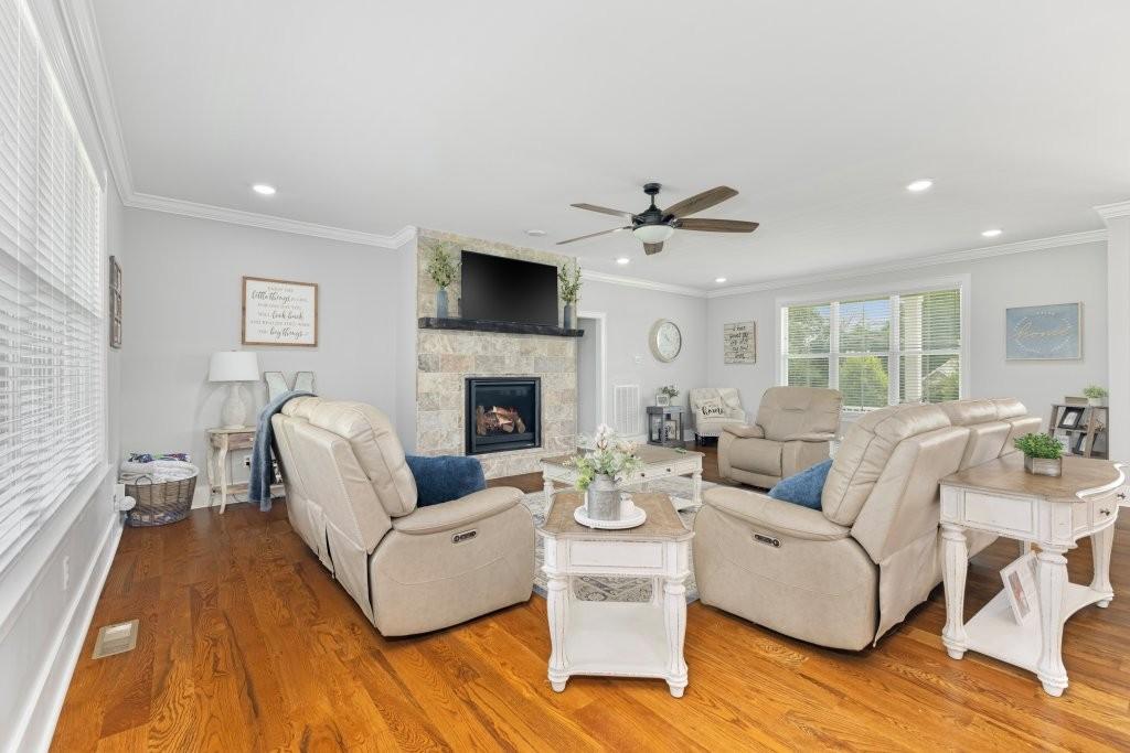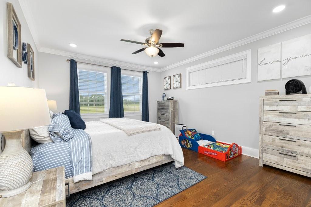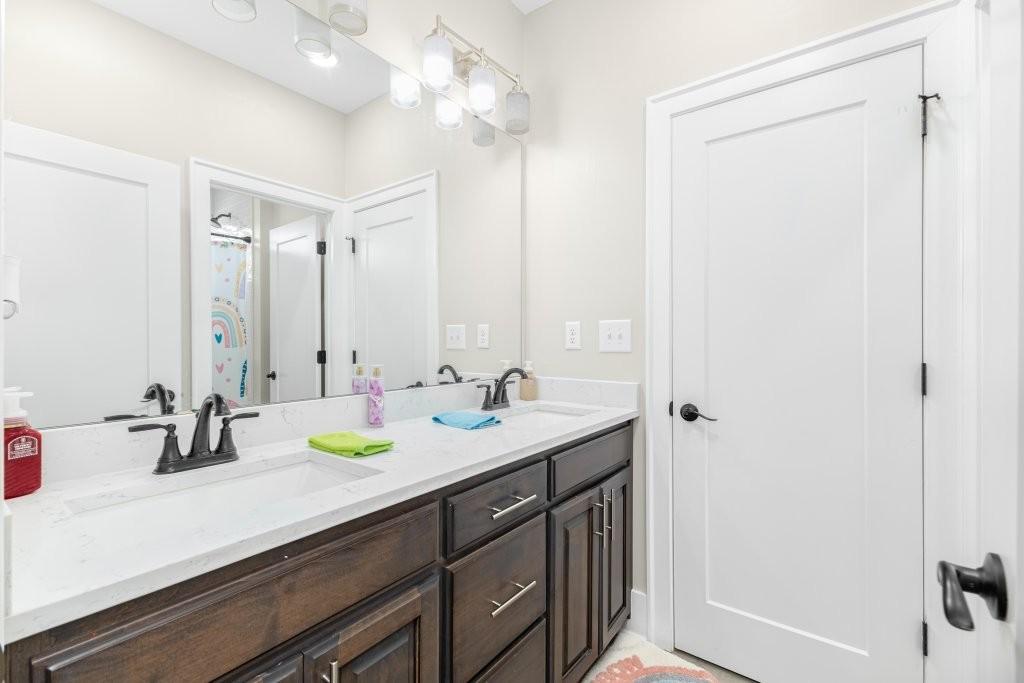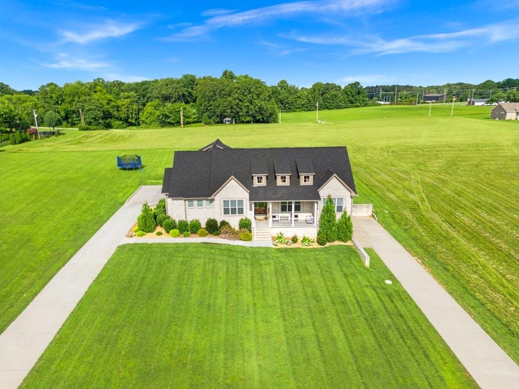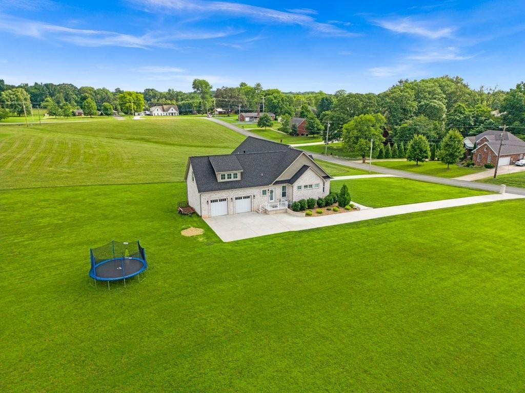 Absolutely Stunning Family Home! Built in 2021, this beautiful brick boasts gorgeous dormers from every direction and showcases an extra tall wood entry door. This home has 4 Bedrooms, 4 1/2 Baths, and is located in a highly desirable area sitting on nice .82 Acre lot. Special touches include custom cabinets, tile showers and surrounds, custom molding, wide planked hardwood floors, leathered granite, tiled backsplash, gas range, stainless appliances, a butler's pantry, upscale lighting and plumbing fixtures, tankless water heater, and a floor to ceiling tiled gas fireplace just in time for fall nights. A combined open living area, (which is the center of attention upon entry!), and the split bedroom floor plan are great for family time and then quiet time. A roomy laundry and mud room with built in bench leads to the oversized two car attached garage. The full basement has a full bathroom, a garage, and high overhead space. Property includes 2 concrete driveways, a spacious yard, and an exceptional location!