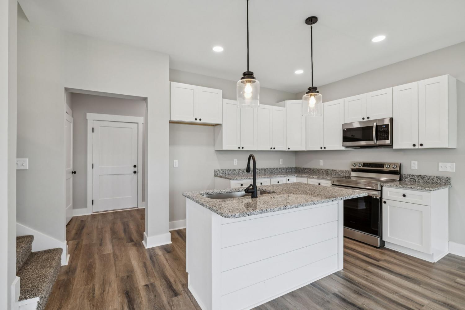 Step inside to a light-filled main level featuring an open layout, perfect for both everyday living and entertaining. The kitchen flows seamlessly into the dining and living spaces, with a half bath nearby for guests. Upstairs, you'll find three spacious bedrooms and two full baths, including a serene primary suite with its own private bathroom with a custom tile shower. Thoughtfully designed with modern finishes and quality craftsmanship-- you'll love calling this one home!