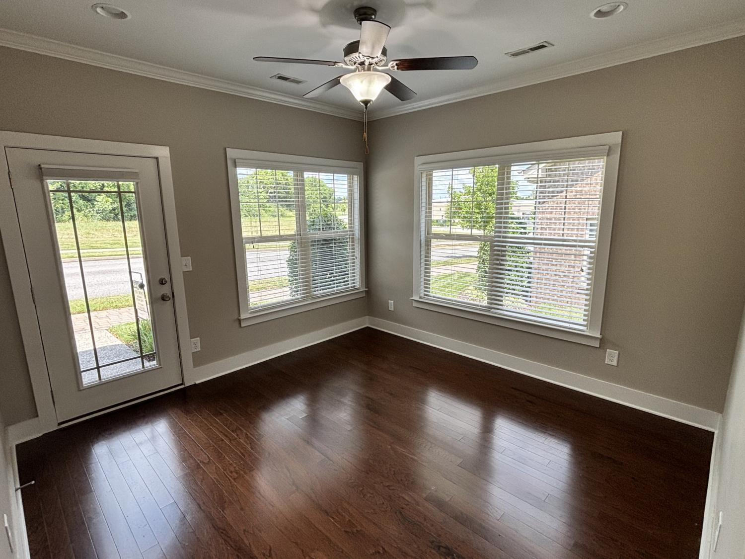 Fresh paint and new carpet make this home move in ready for you! Enjoy all the original model home upgrades, in this lovely, end unit cottage in the Retreat at Fairvue. Terrific chef's kitchen with large pantry, upgraded countertops and backsplash, and under the cabinet lighting. Elegant crown molding, wood window moldings, and engineered wood floors make this home a real beauty. The end unit provides you with 6 extra windows! The separate study, den, or sunroom + 2 bedrooms, are all located on one floor. 2 car garage with newly coated garage floor, and gated patio. Large storage closet perfect for holiday decor or other lesser used items. HOA fee covers building insurance, Direct TV, internet, and lawn maintenance, providing you with a great "lock and leave" lifestyle for those who love to travel. Banking, Walgreens, and Publix are easy walking distance, along with a number of small shops and a fitness club.