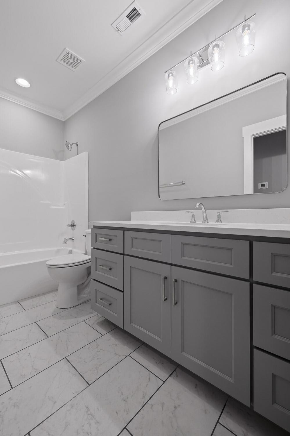 Welcome to the Townhomes at Barnsley Park. Open main level with great room, dining, kitchen, and dining. Kitchen with custom cabinets, granite counters, and stainless appliance package. Second level you will find the master bedroom that has adjoining bath with separate vanities, tiled shower and soaking tub, and walk in closet, and private balcony. Two additional spacious bedrooms, large bathroom, and laundry. Every unit has 2 car garages. Exterior has a combination of brick, stone and concrete composite siding. Top quality interior finishes, trim work and crown molding. Lawn Care included in HOA fee for townhouses. This property comes with a One year builders warranty and a two year warranty on HVAC units, appliances and water heater.