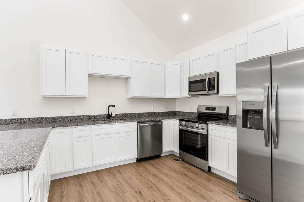Brand-new 3BR/2BA home in a peaceful country setting with only county taxes! This 1,200 sq ft home features an open-concept layout with vaulted ceilings, recessed lighting, and a seamless kitchen, dining, and living area. The kitchen includes granite countertops, stainless steel appliances, and a modern, functional design. Each bedroom offers walk-in closets for ample storage. Enjoy your morning coffee on the covered front porch or entertain guests on the spacious back deck with beautiful backyard views. Built with comfort, efficiency, and style in mind, this low-maintenance home is perfect for first-time buyers, downsizers, or anyone looking for a fresh start in a quiet location. Move-in ready and priced to sell!