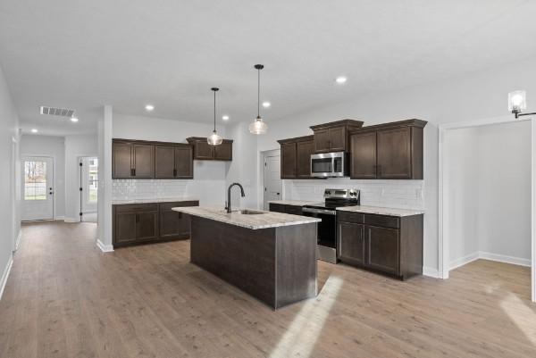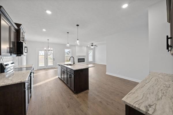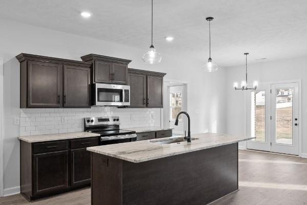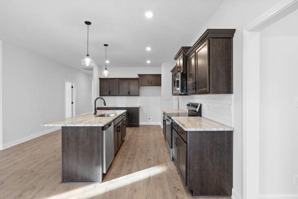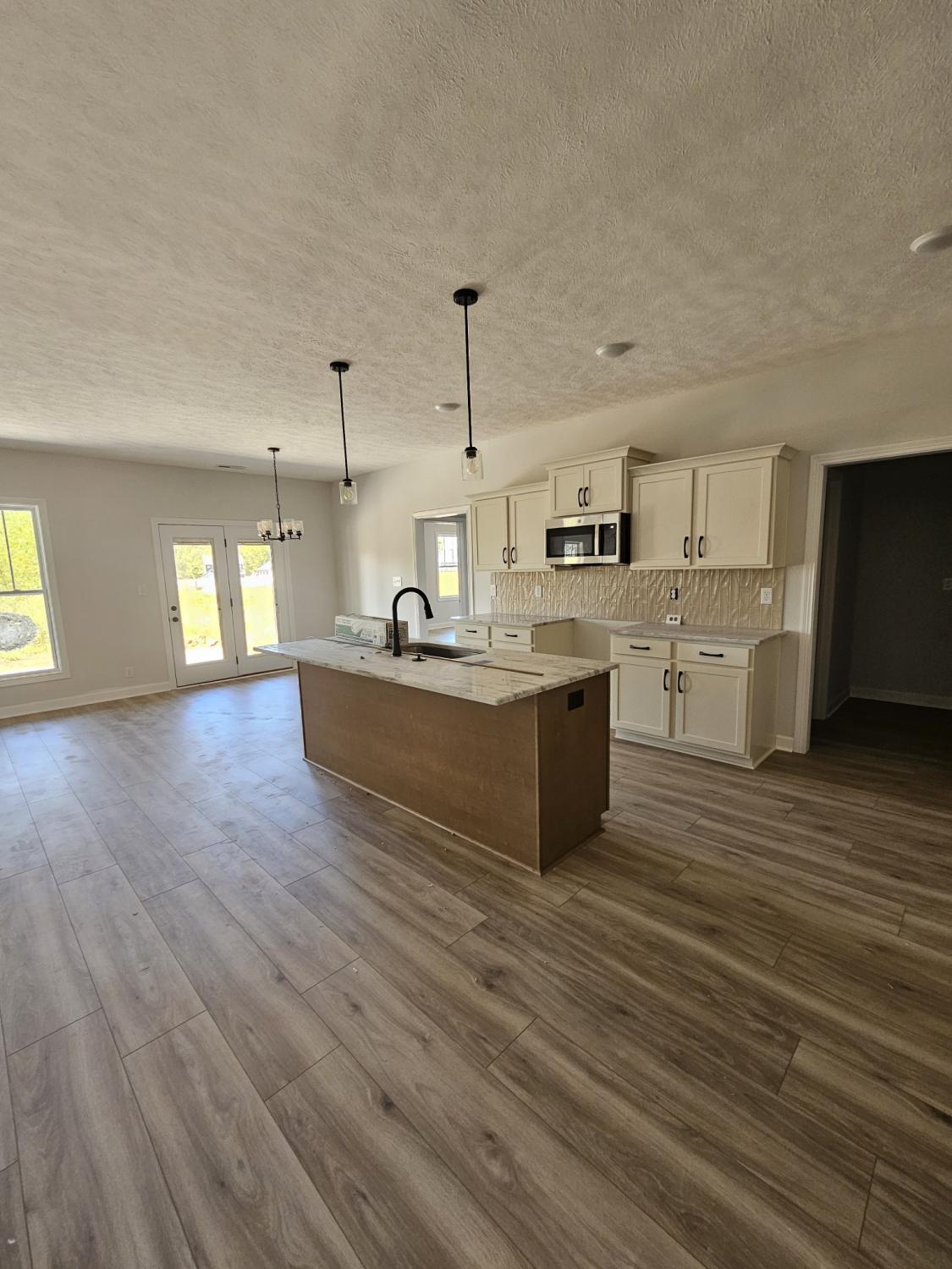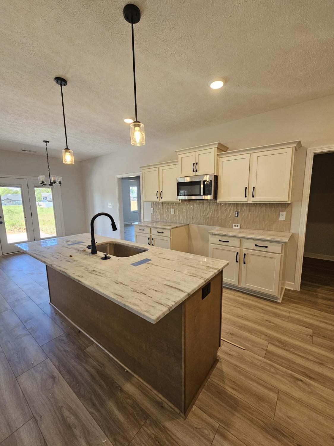 Four bedrooms all on the main floor make this stunning ranch-style home as functional as it is beautiful! Step through the front door and you’ll immediately feel the airy openness of the expansive open-concept floor plan. The heart of the home is the large, inviting kitchen featuring a generous island that’s perfect for entertaining or casual meals. Overlooking the spacious great room with its cozy shiplap fireplace, this layout ensures you’ll always be part of the conversation. Your kitchen is a chef’s dream, boasting stainless steel appliances, high-quality cabinetry, and gorgeous granite countertops that elevate the entire space. The seamless flow between the living room, dining area, and kitchen creates a warm and welcoming atmosphere ideal for gatherings both large and small. Retreat to your private primary suite where relaxation awaits. The ensuite bath offers a beautifully tiled shower, a luxurious soaking tub, and dual sinks—designed to be your own personal spa-like escape. Three additional bedrooms on the main floor provide flexibility for guests, a home office, or hobbies. Step outside to a large covered back patio—the perfect spot to enjoy morning coffee, unwind after a long day, or host weekend barbecues. The fenced yard offers plenty of space for play, pets, and gardening. Located close to everything you need, this home offers easy access to 101st and Fort Campbell, shopping, dining, and parks. A harmonious blend of style, comfort, and convenience—this home truly checks all the boxes!