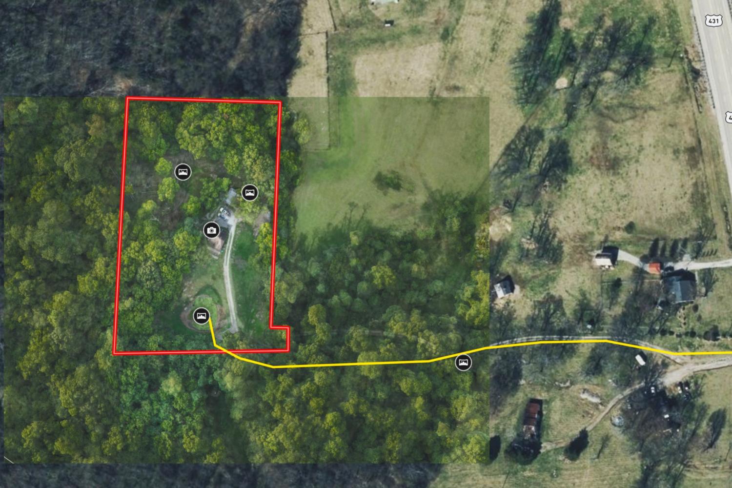 From Lewisburg Take Hwy 431 towards Belfast, go past Belfast Market and approx 1 mile past store on the right is a gravel driveway. Follow your GPS directions to the property. There are no signs on the driveway, but you will see one on the property corner