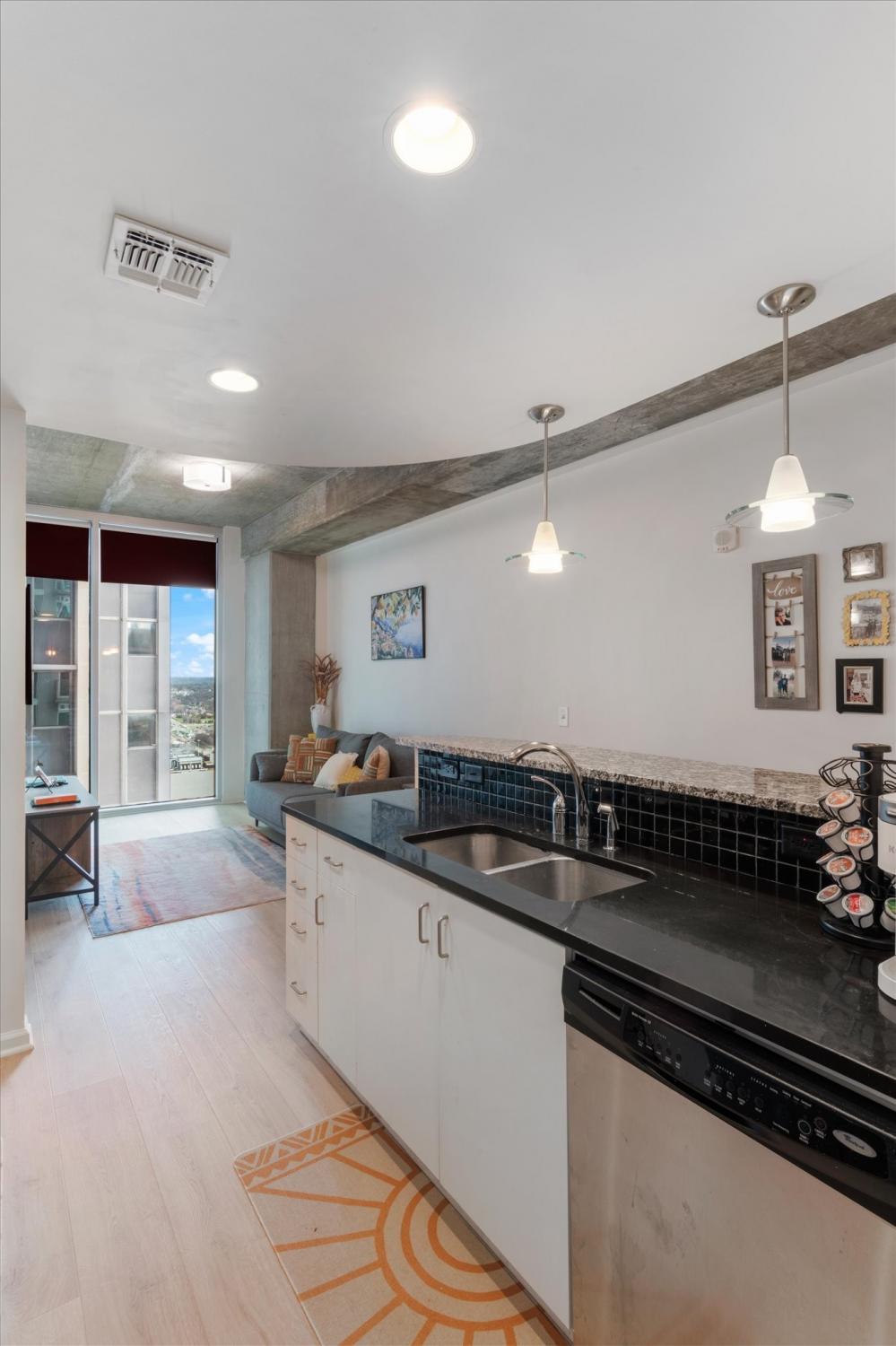 Are you looking for the perfect weekend spot? Maybe a 2nd home in Music City with a 24/7 concierge? Located right in the middle of downtown Nashville, High above the hustle and bustle, this condo comes FULLY FURNISHED and ready for a new owner. Check out the rooftop pool, well-appointed fitness center, and secured/gated parking. This unit comes with a deeded and reserved parking space. Long-term rentals allowed (waitlist).