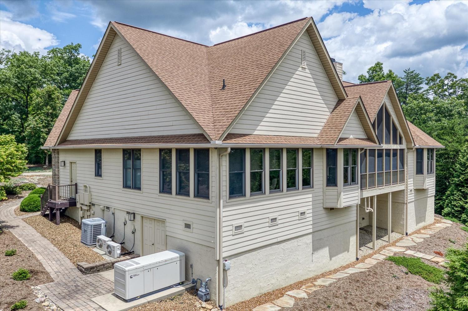 This elegant retreat in The Bluffs was built to celebrate the view—and your life within it. Set on 1.55 private acres, this custom-built retreat offers stunning views, striking architecture, and single-level living with style and substance. The thoughtfully designed layout features 4 bedrooms, 2 full baths, and 2 half baths, with both casual and formal living spaces that flow effortlessly for entertaining or everyday comfort. From the moment you walk in, you're greeted by soaring ceilings and a wall of windows that invite the outdoors in, while the show-stopping floor-to-ceiling granite fireplace anchors the main living space with timeless style. The gourmet kitchen features an oversized granite island, walk-in pantry, and seamless access to the dining area, sunroom, and screened balcony. Enjoy morning coffee from the screened balcony, work from the private office, and retreat to a serene primary suite complete with dual walk-in closets and a spa-style bathroom. There's even a large bonus room with its own half bath upstairs for hobbies, guests, or media space. With a 2.5-car garage, oversized laundry, two dedicated office spaces, and high-end finishes throughout, this home was designed for both function and wow factor. Perfectly positioned among mature trees with a sense of peace and privacy—this is elevated living in one of Fairfield Glade's most sought-after settings. Buyer to verify all information before making an informed offer.