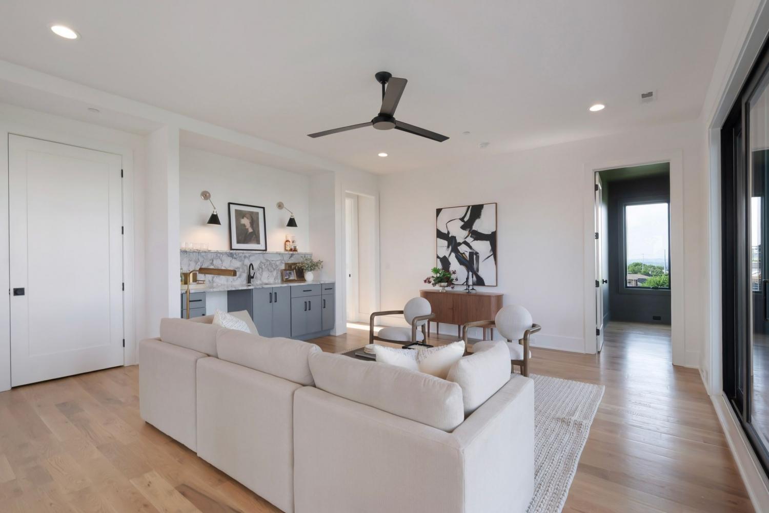 $225,000 price drop for a quick sale! Discover the perfect blend of craftsmanship and modern convenience in this one-of-a-kind new construction, thoughtfully designed for elevated living and effortless entertaining. Spanning multiple levels of expertly curated spaces, this home offers timeless design elements paired with top-tier structural and technological enhancements. Step inside through an Iron Lion steel entry door and experience an open-concept layout anchored by a stunning kitchen outfitted with custom oak cabinetry, a 48” 6-burner range with built-in griddle, and GE Monogram panel column refrigerator and freezer. A spacious butler’s run adds functionality with a paneled undercounter fridge and ice maker, while a massive island makes hosting seamless. Upstairs, the top-floor entertaining level showcases panoramic views from a rooftop deck with tree flooring and steel railing, thoughtfully reinforced to accommodate a future hot tub. This level also includes a full wet bar, a media/flex room, an additional half bath, and a private fourth bedroom suite—an ideal configuration for overnight guests or multifunctional needs. With dual primary closets, a storm-rated concrete shelter, and elevator-ready closets on every floor, every inch has been planned with comfort, safety, and long-term flexibility in mind. Enjoy full spray foam insulation, tankless hot water, a dedicated AV closet with Cat6 wiring throughout, and three separate HVAC systems for zoned climate control. Outside, the fully fenced backyard is pool-ready (seller has a pool plan and a pool builder if you want) and prepped for a future outdoor kitchen with plumbing, gas, and electric already in place. Landscape lighting, an irrigation system, and an oversized driveway with a 3-car garage plus additional 3-car parking pad in the rear of the home off the back yard. This is more than just a home—it’s a showcase of intentional design, ready to support life at every level.